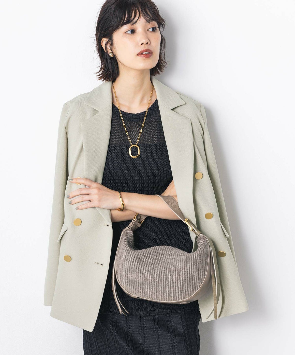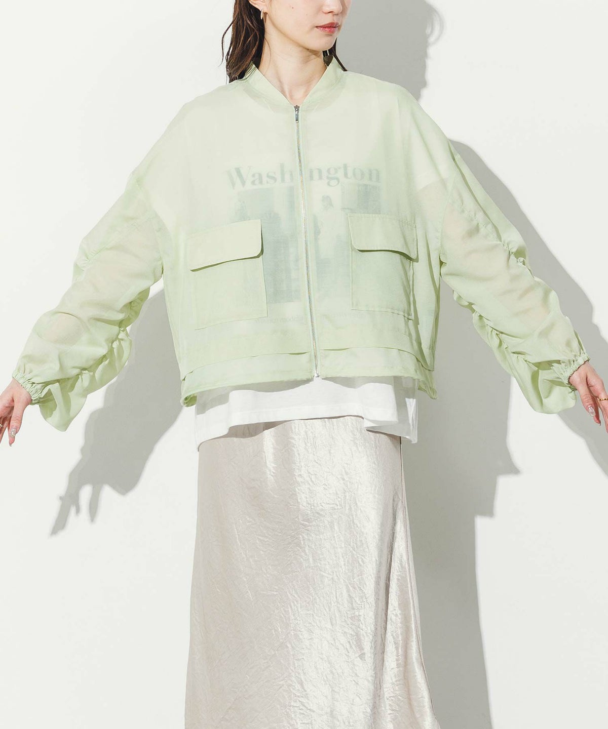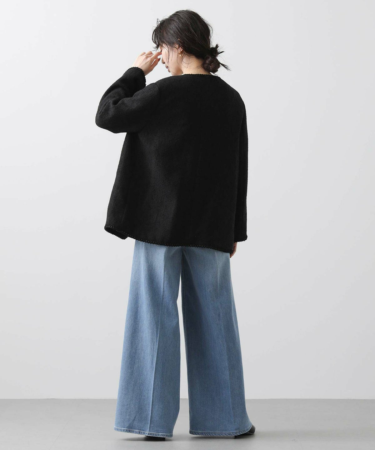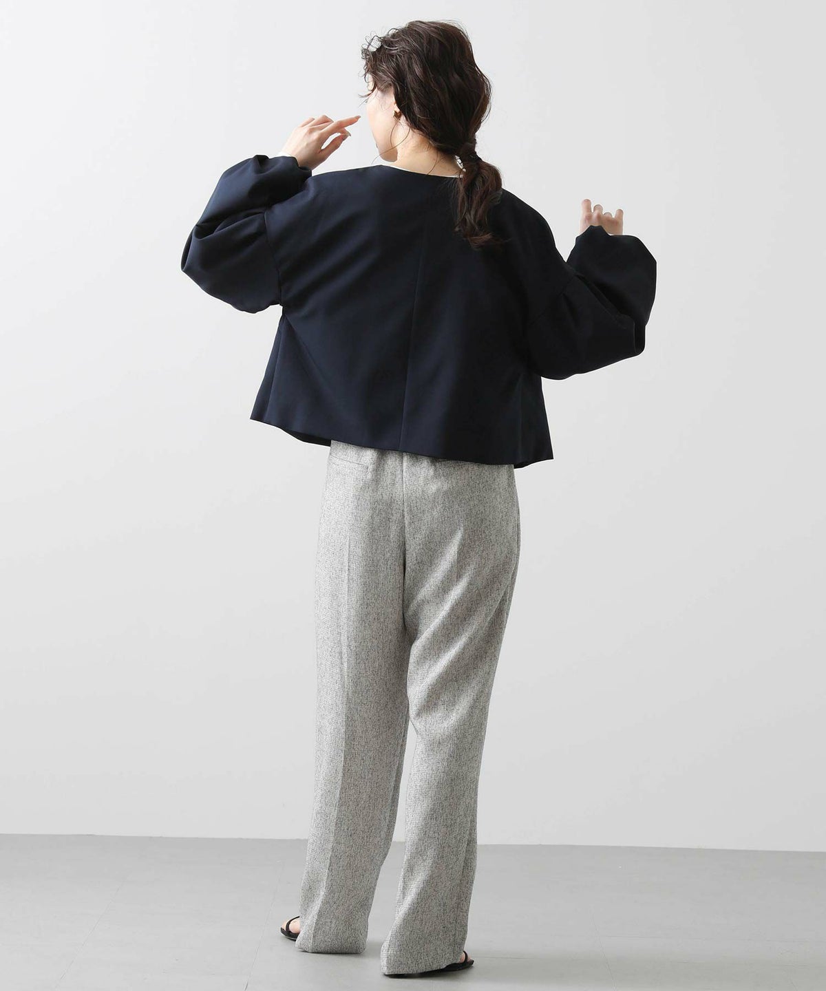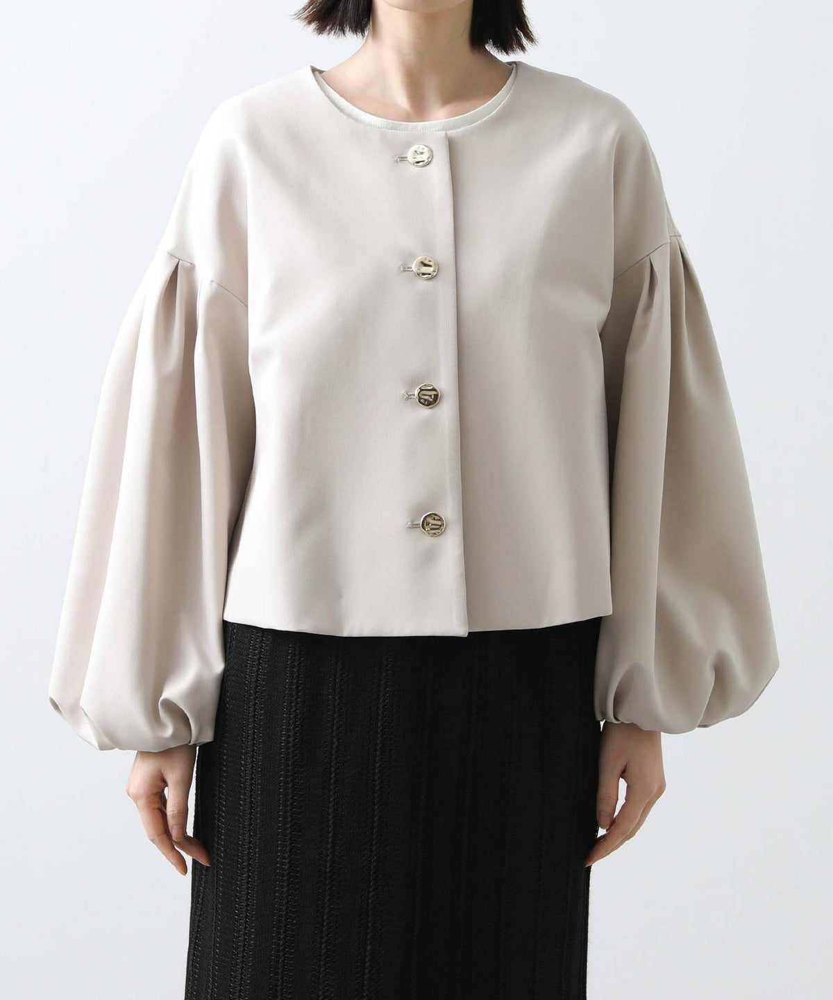 f.Wクロスクルーパフスリーブジャケット