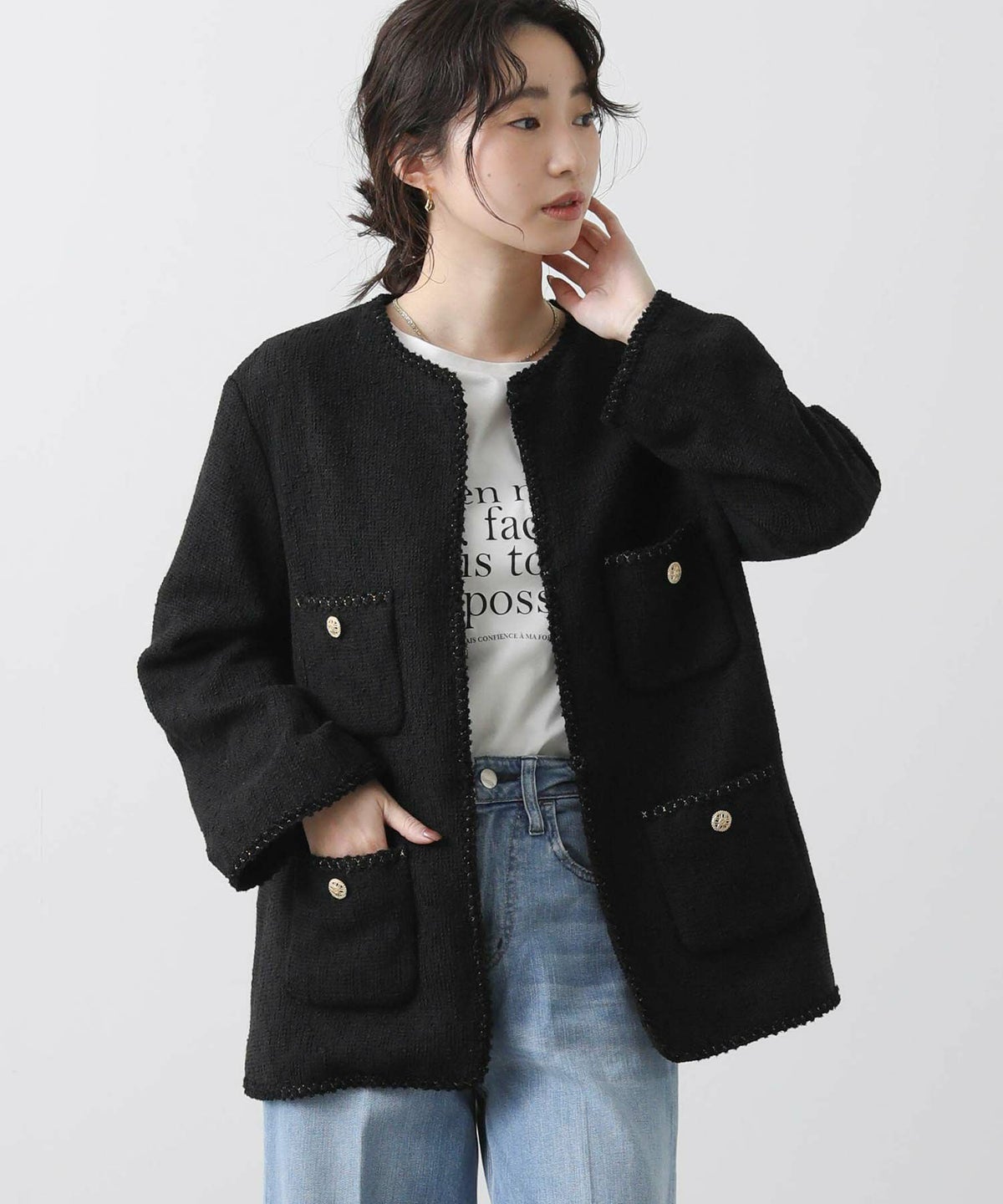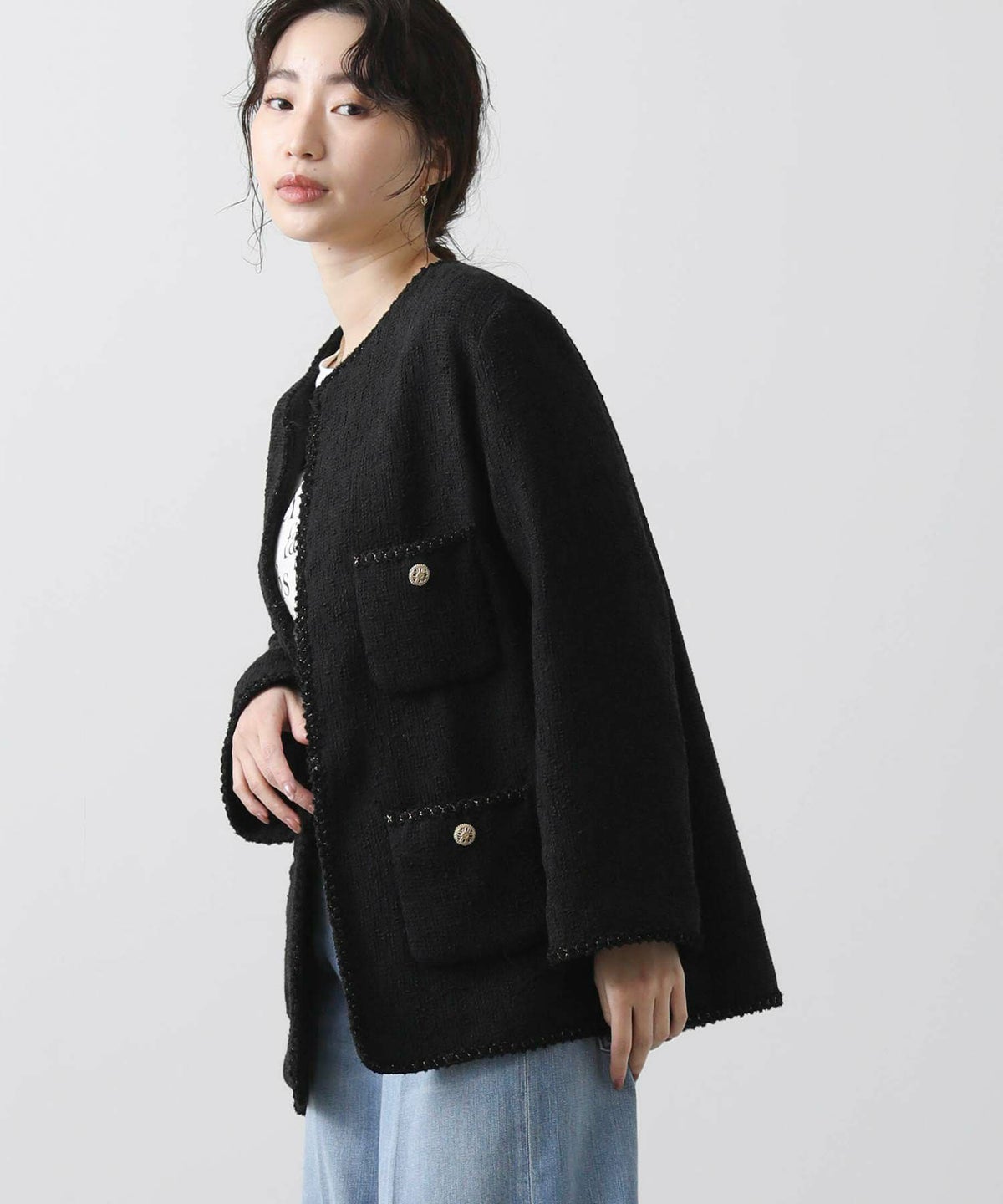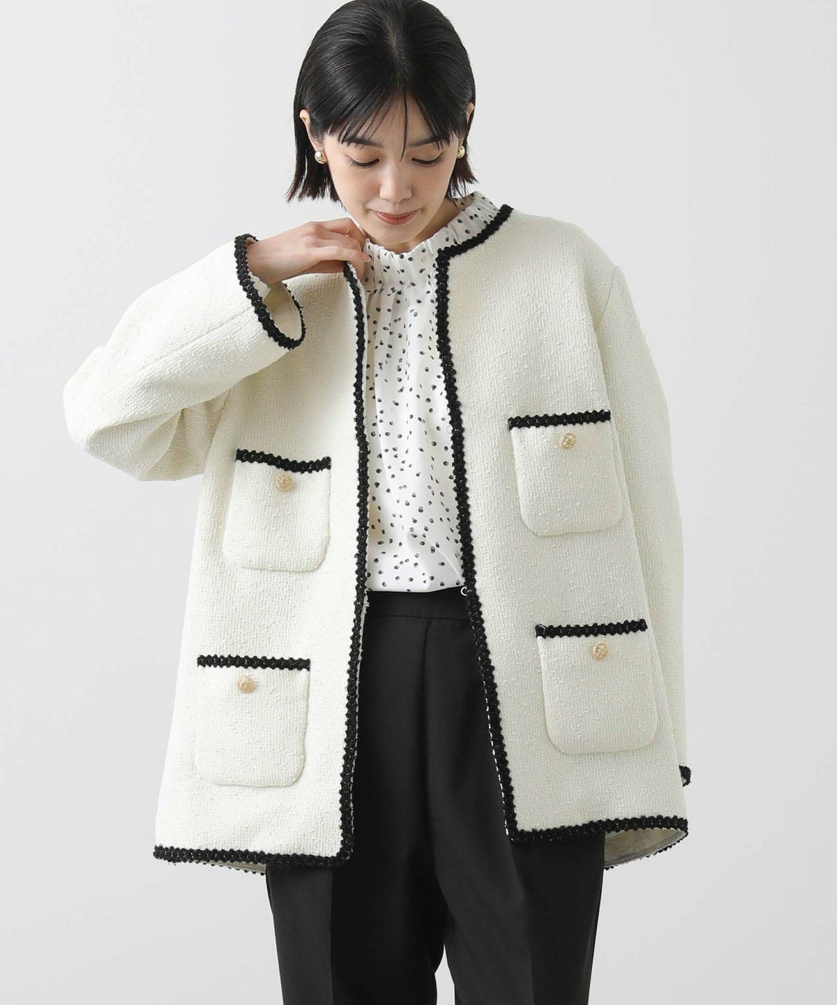 ツイードノーカラージャケット