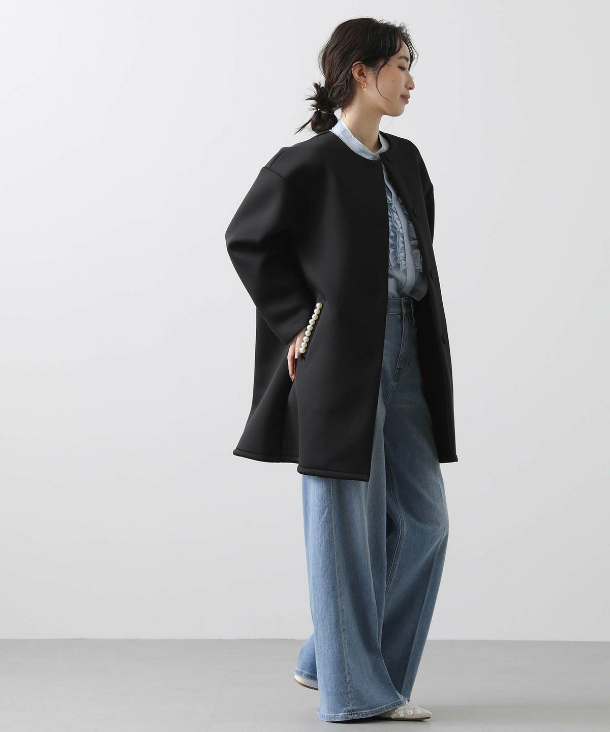 f.ジョーゼットノーカラージャケット