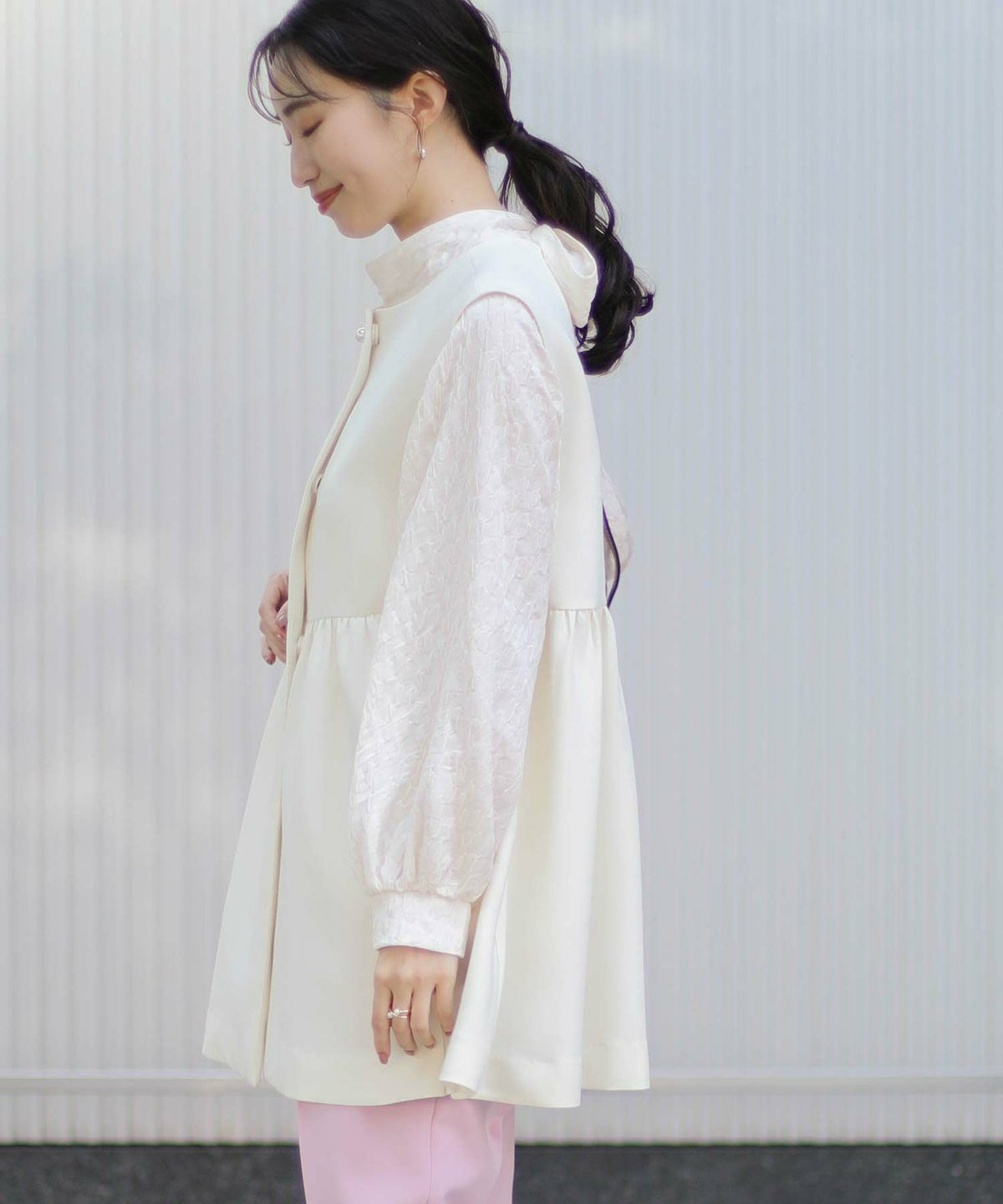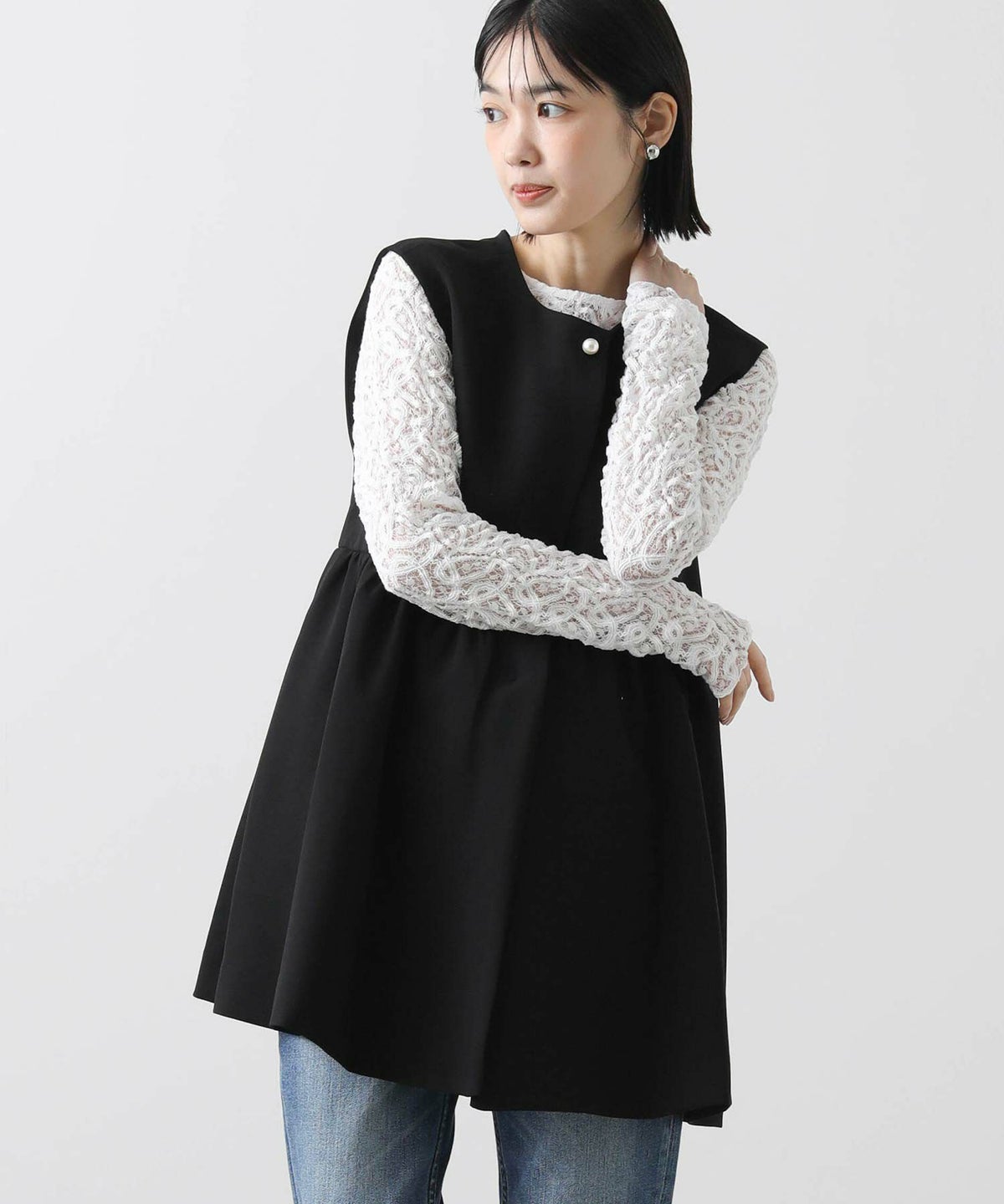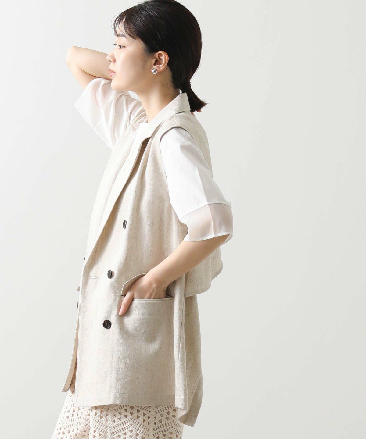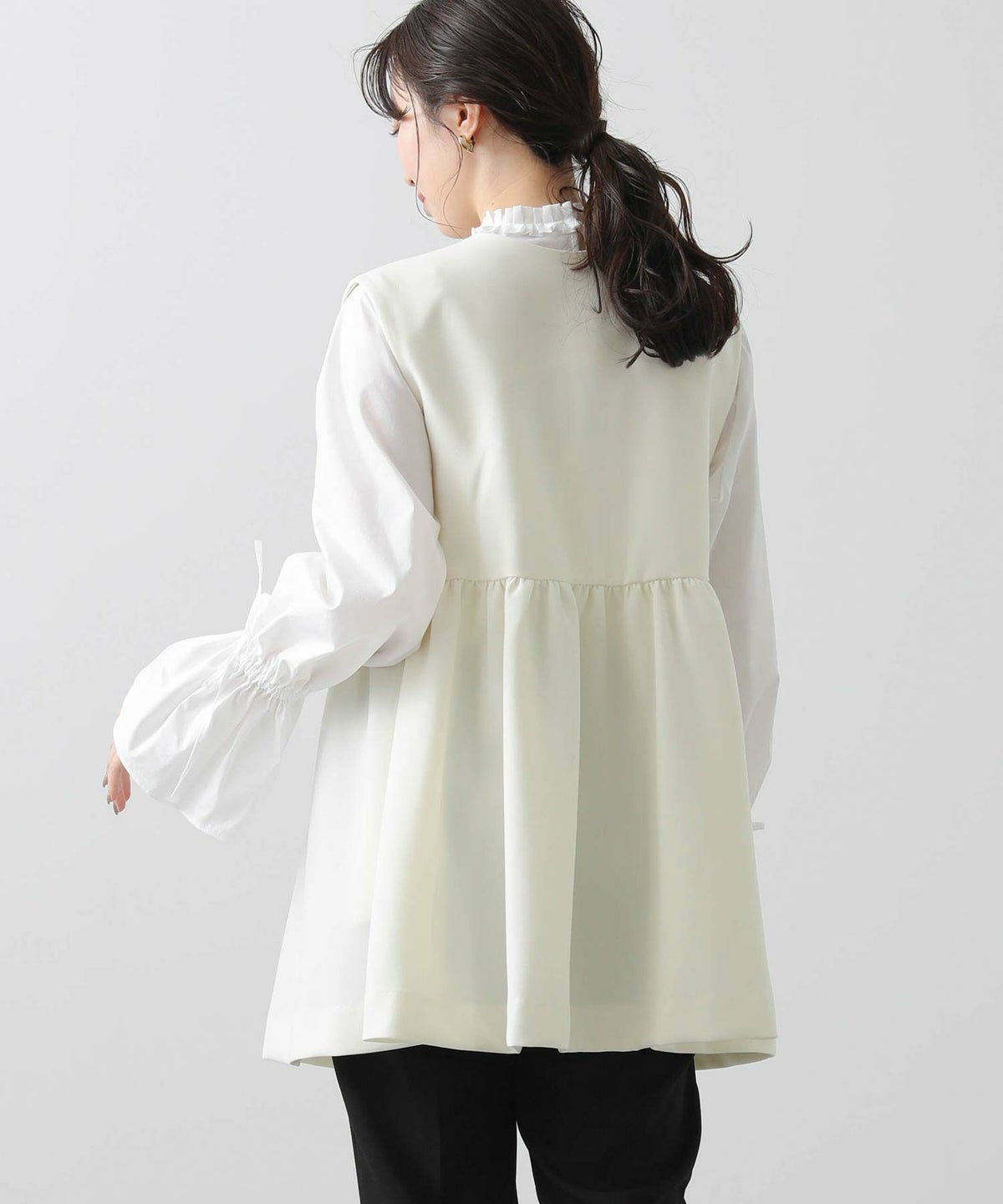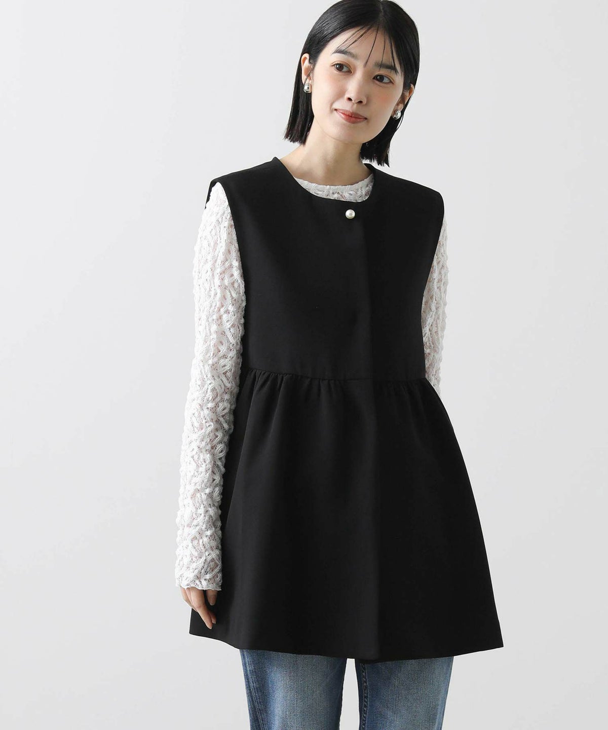 f.パール釦ペプラムベスト
