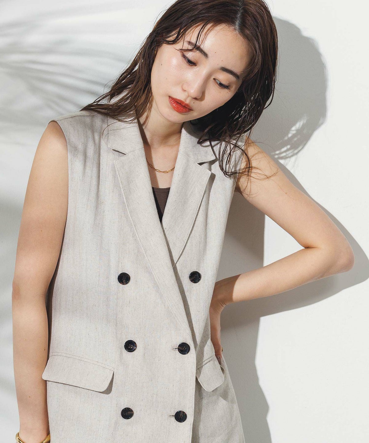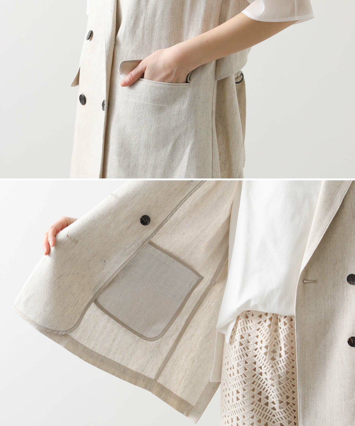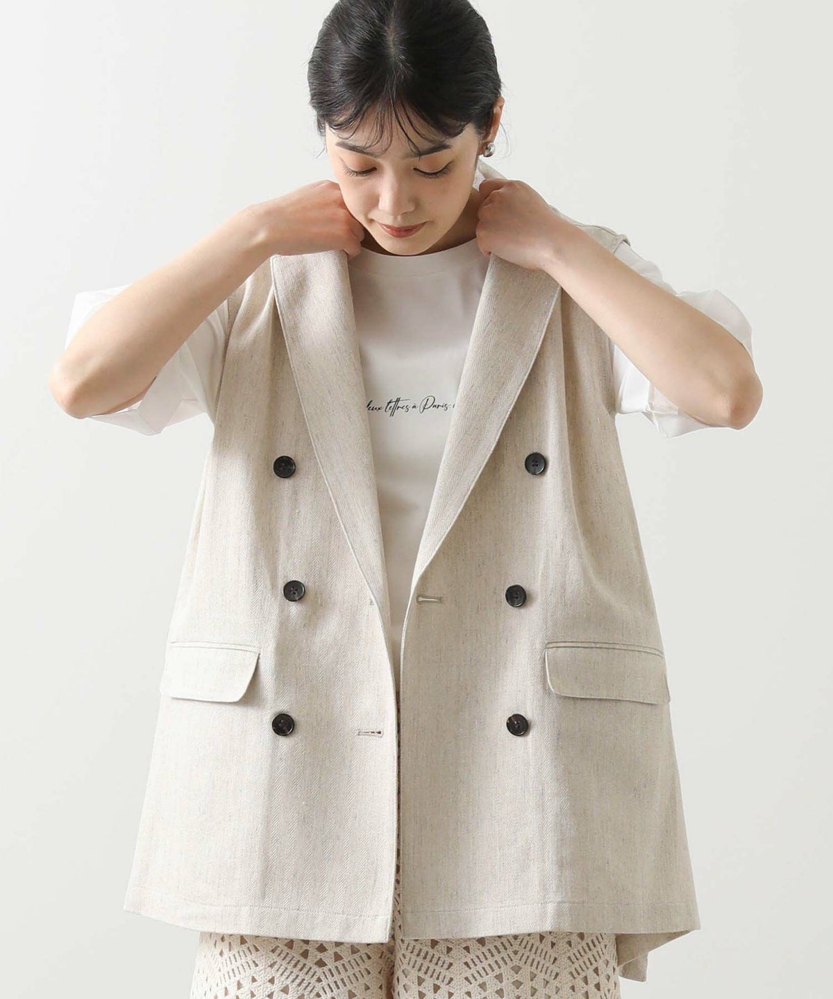 LU麻ヘリンボンベスト
