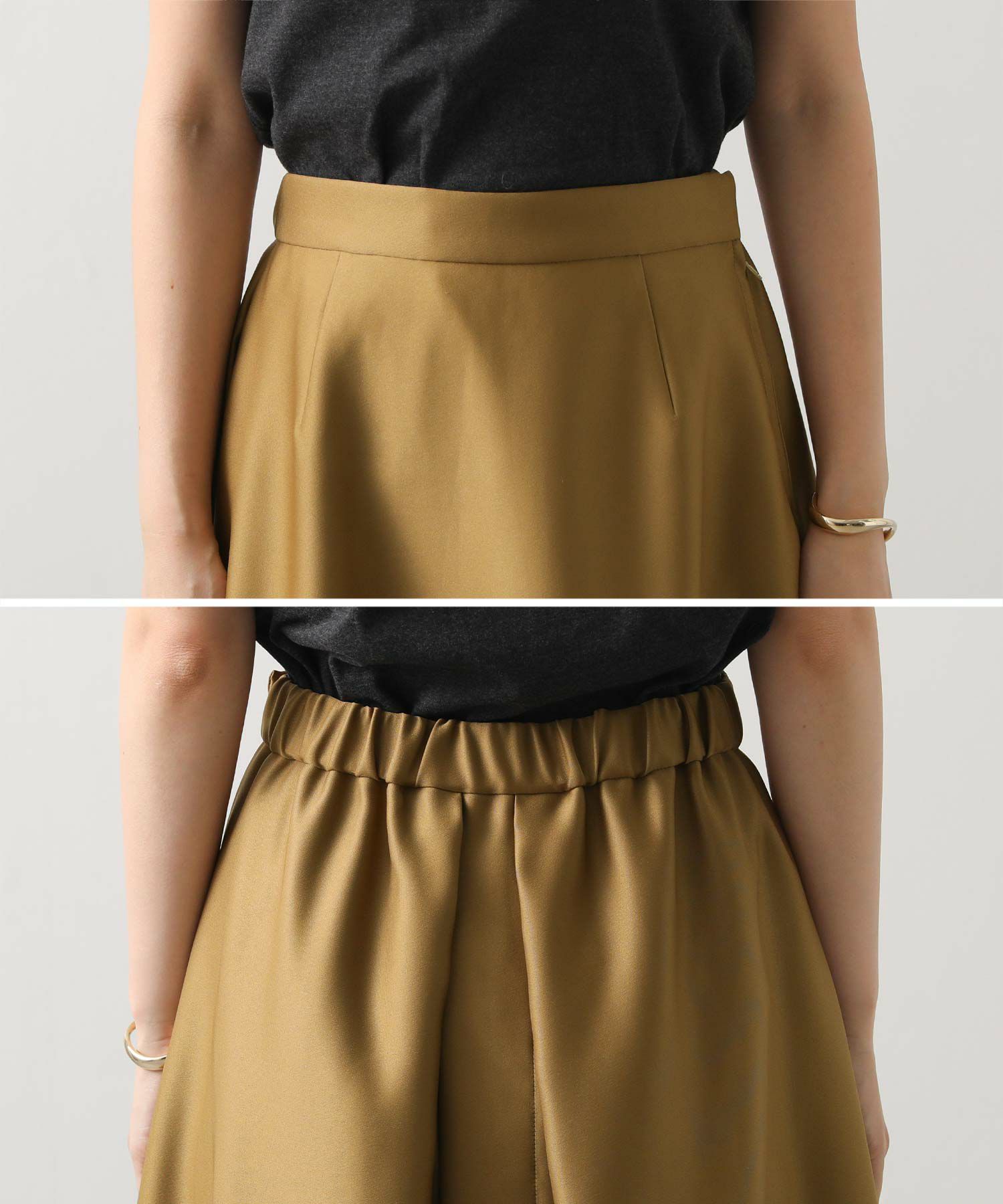 中肉のハリ感のあるサテン素材を使用しており、上品な光沢素材が女性らしさを引き立てます。