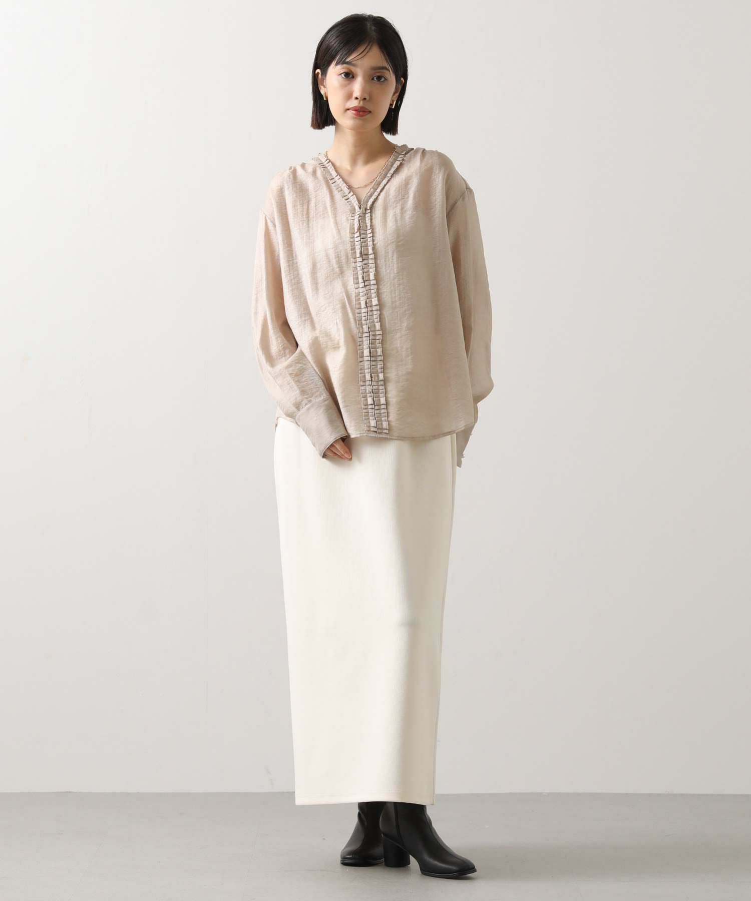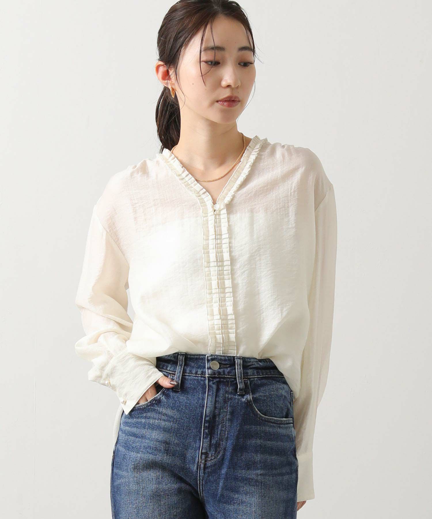 タックフリルが、上品で大人な印象のフリルブラウス。