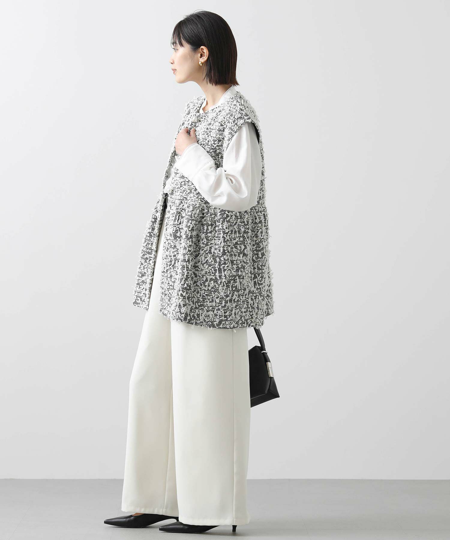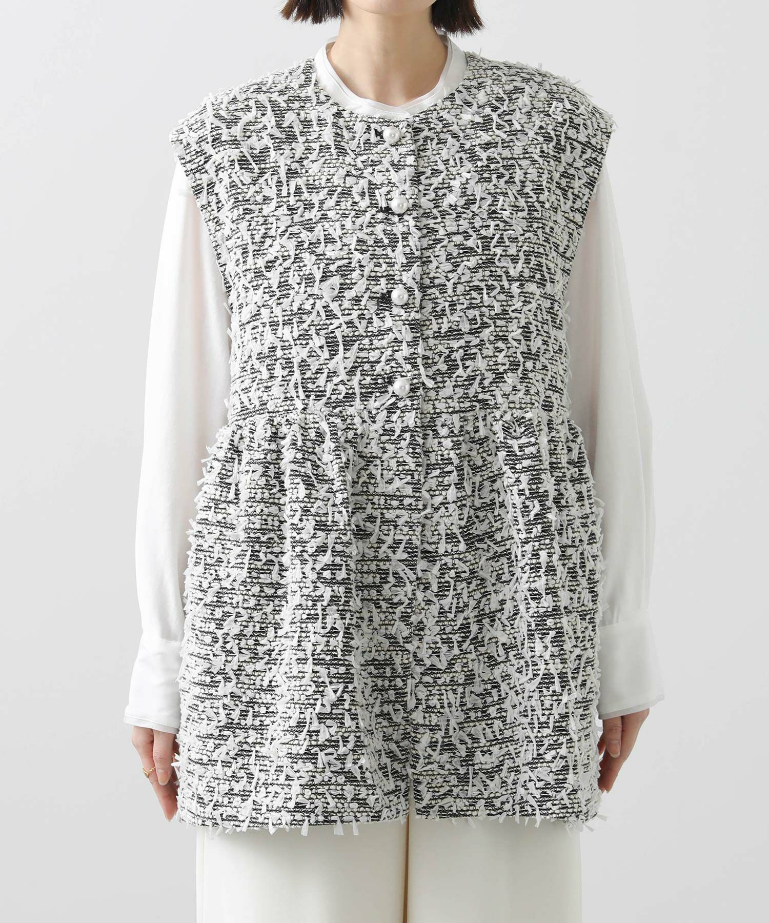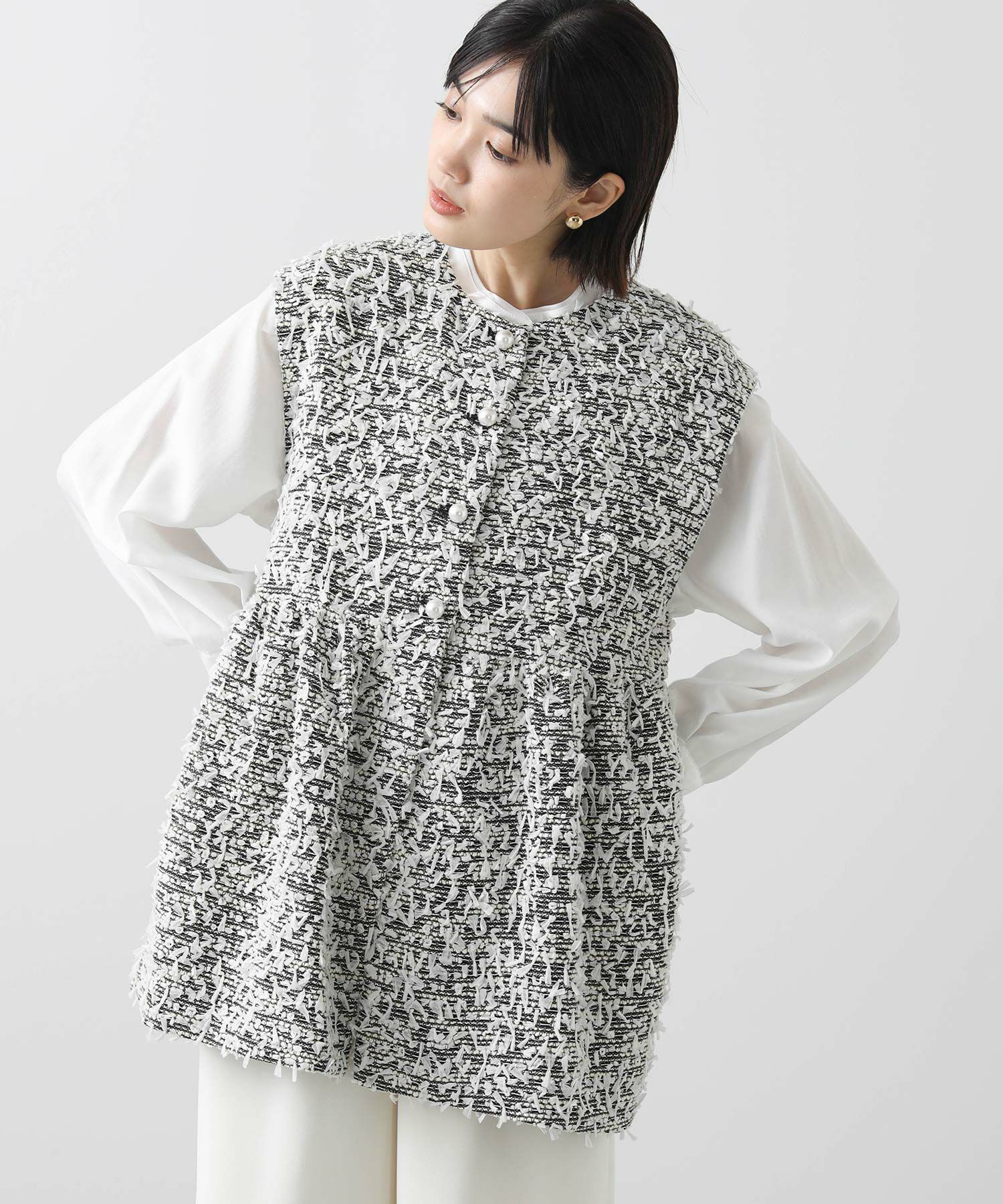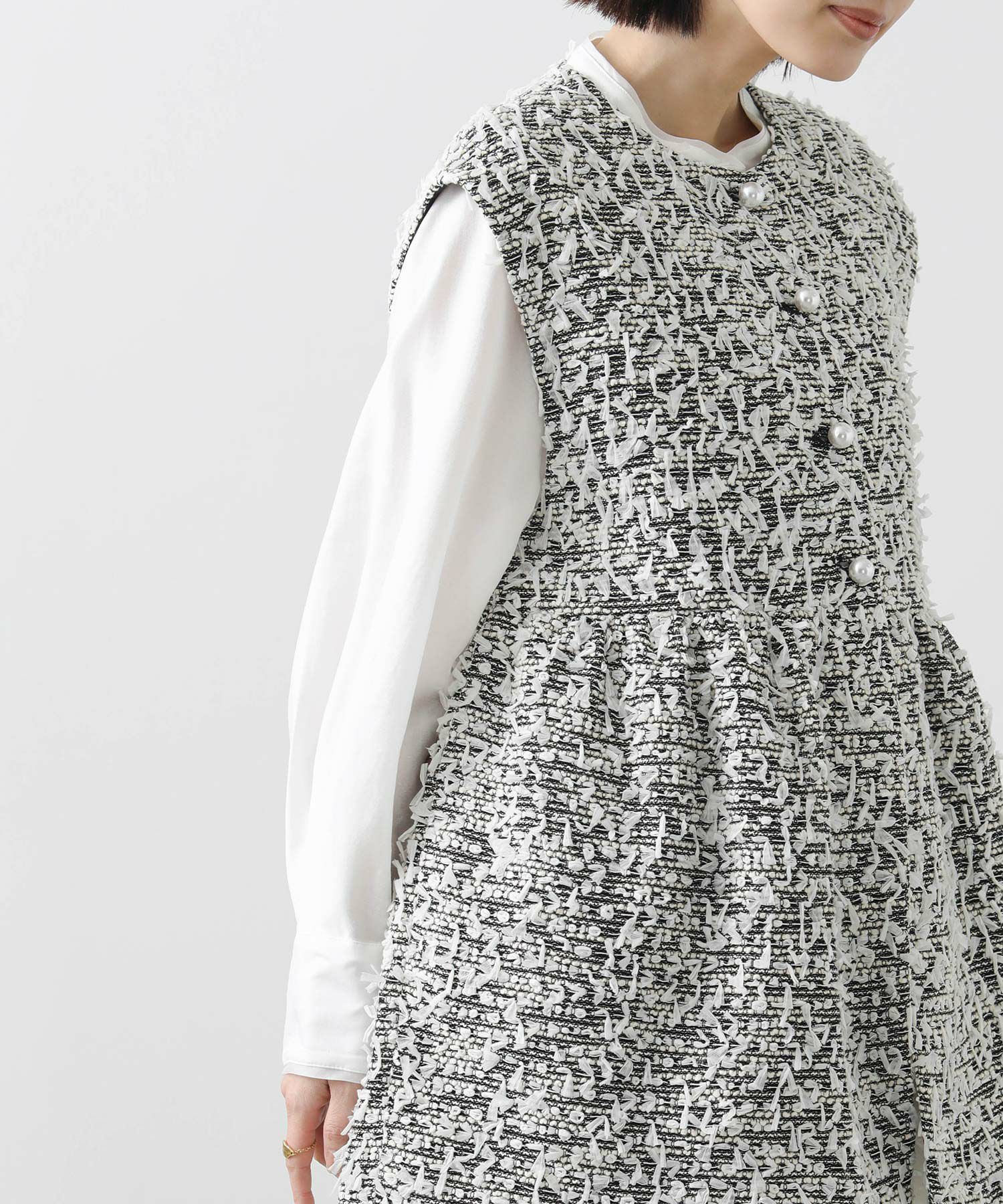 今季のLUSTEEK一押し!トレンドのリボンテープ使いがかわいいツイードベスト。オケージョンからカジュアルまで様々なシーンで着まわせて、1枚羽織るだけでパッと華やかな印象に仕上がります。