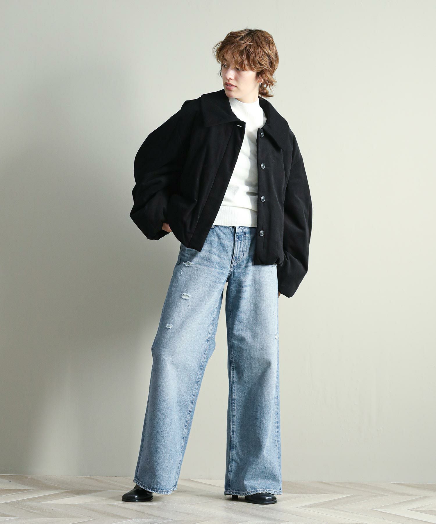 ※着用画像は撮影状況、光の当たり具合で色みが違って見える場合がございます。実際の色みについては、画像一覧の最後に掲載している詳細画像をご参照ください。