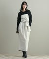 ナローシルエットのスカートは、ウエスト部分のタックが立体感をプラス。ウエストまわりもカバーしつつゴム仕様なので履き心地もストレスフリー。