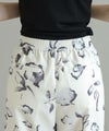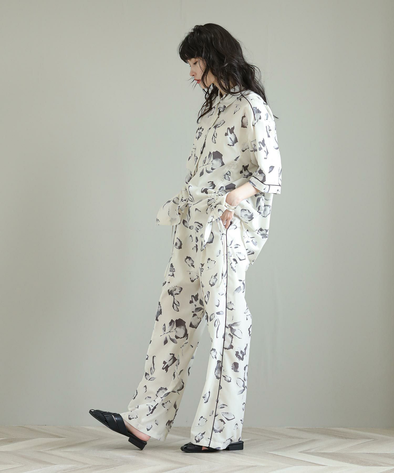 シックな色合いの滲んだフラワーモチーフのパンツ。