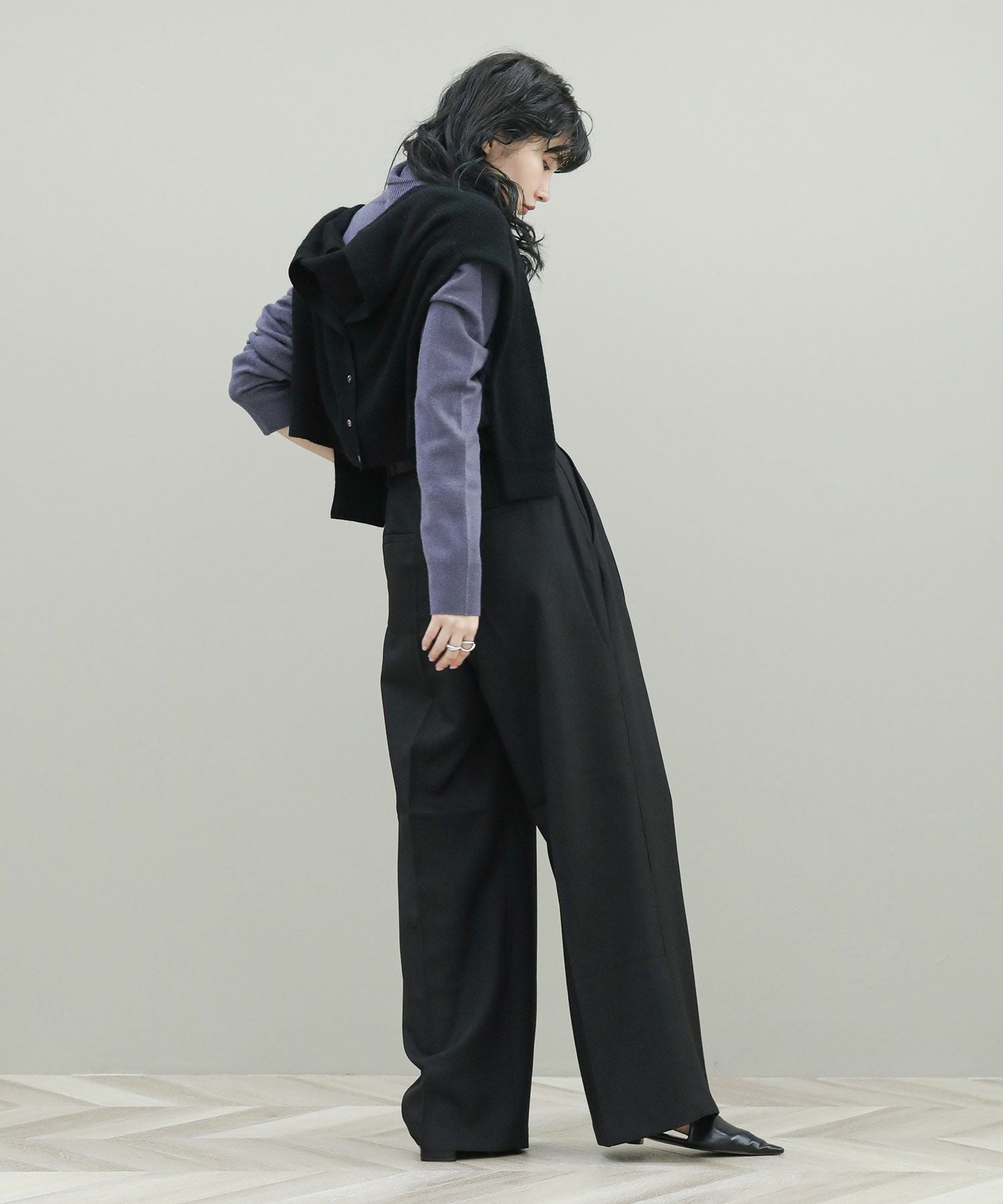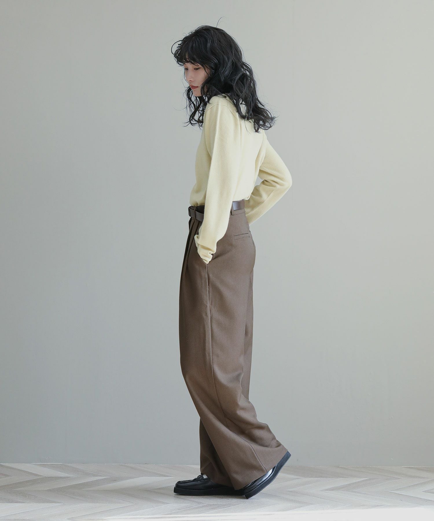 滑らかな肌触りのウールカシミヤ糸で編み上げたタートルニット。