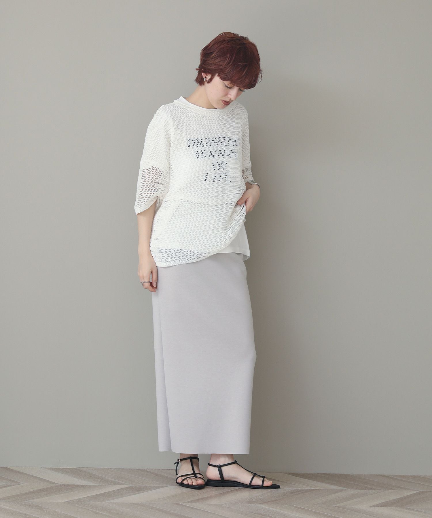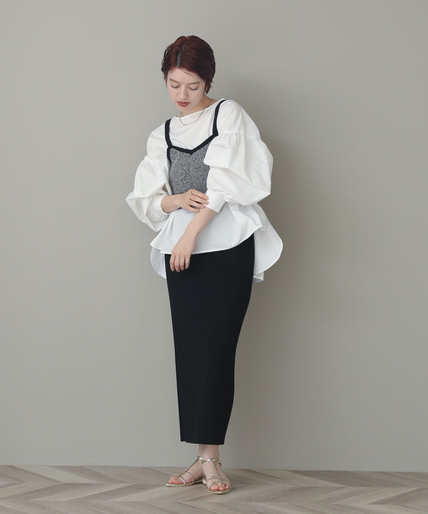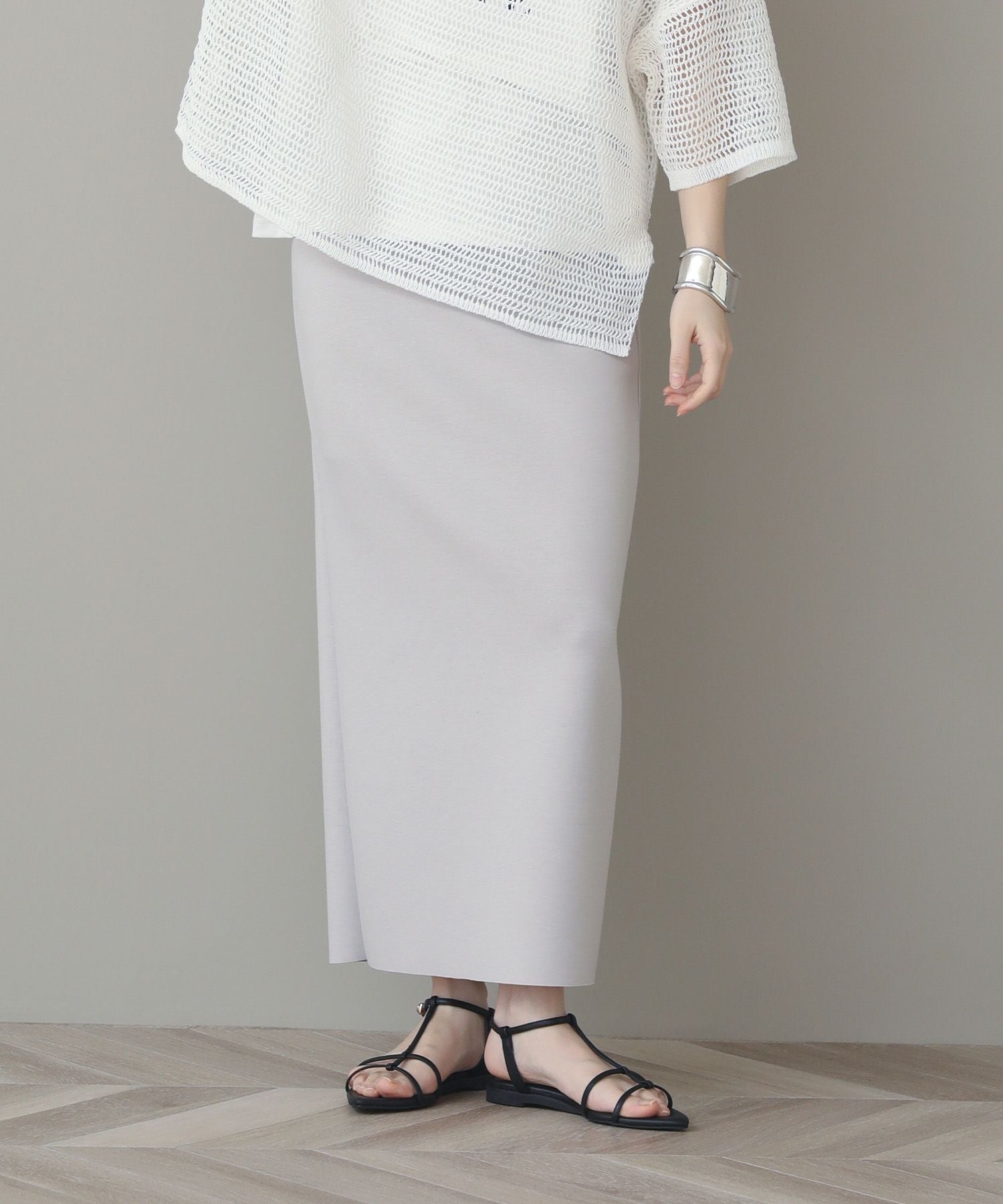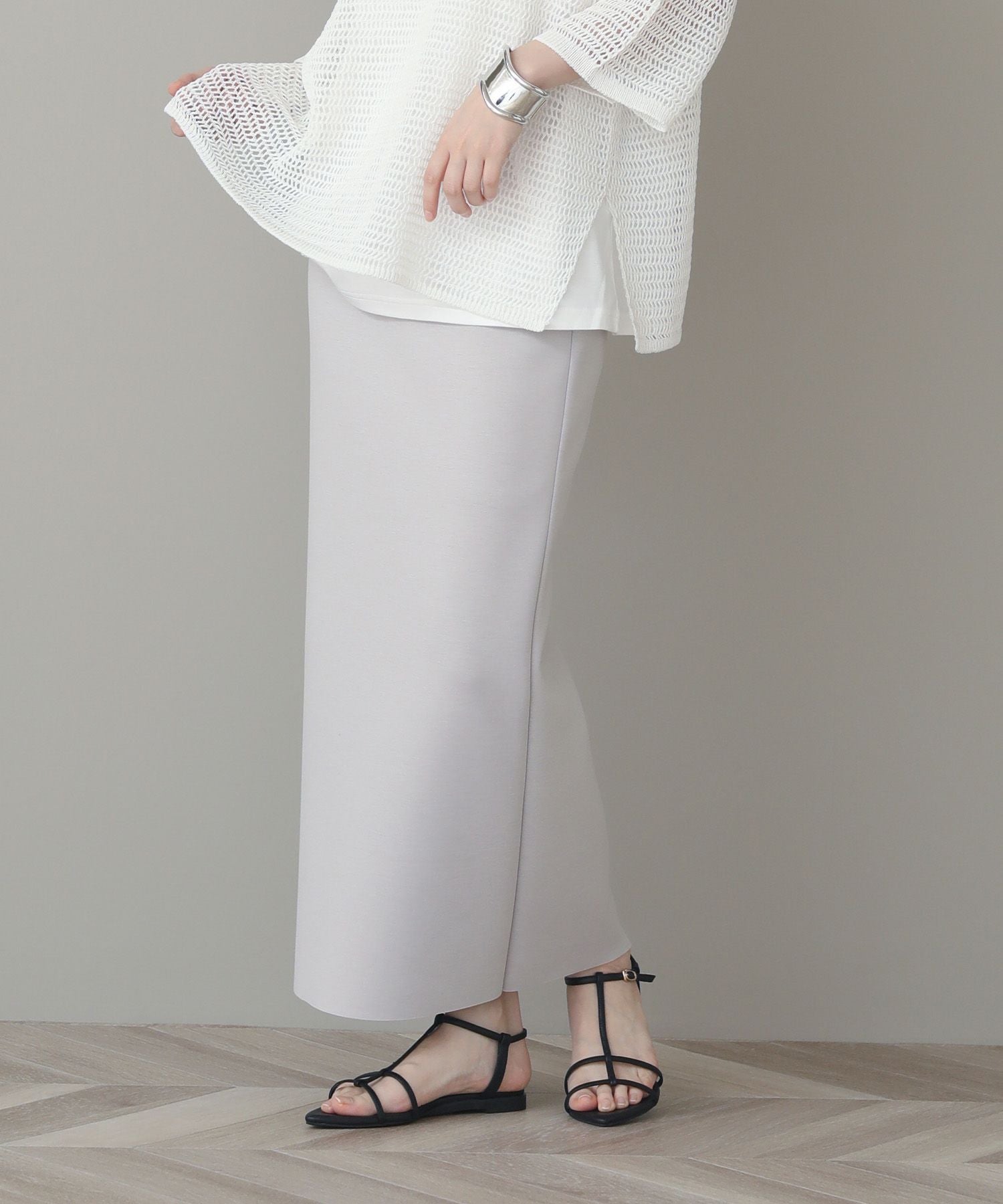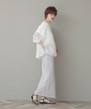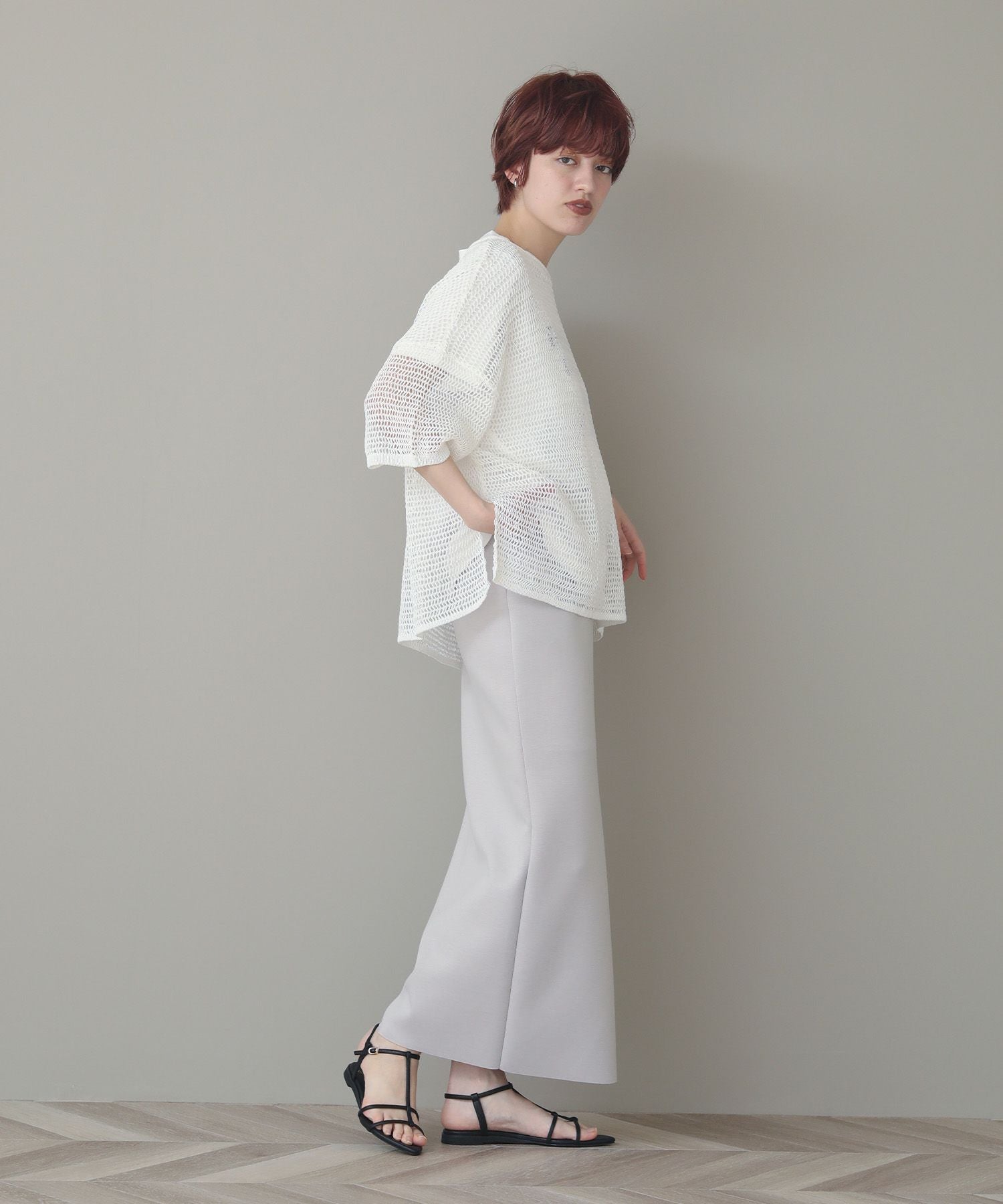 ぷっくりとしたポンチ生地が優しく女性らしい印象です。足首が見える丈感で足元を軽やかにバランスを取ってくれます。しっかりとキックバックのある生地で長時間の着用も快適◎