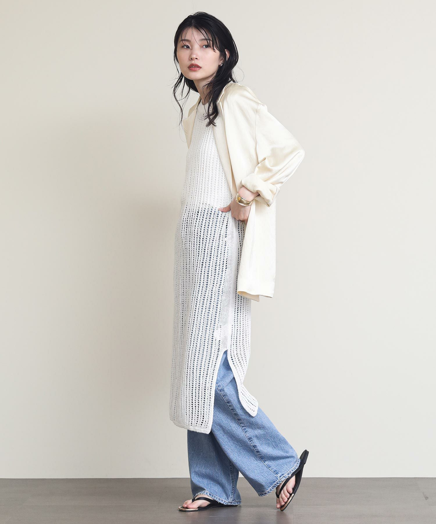※着用画像は撮影状況、光の当たり具合で色みが違って見える場合がございます。実際の色みについては、画像一覧の最後に掲載している詳細画像をご参照ください。