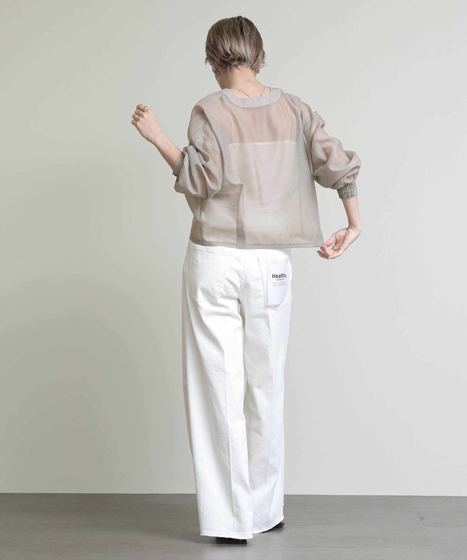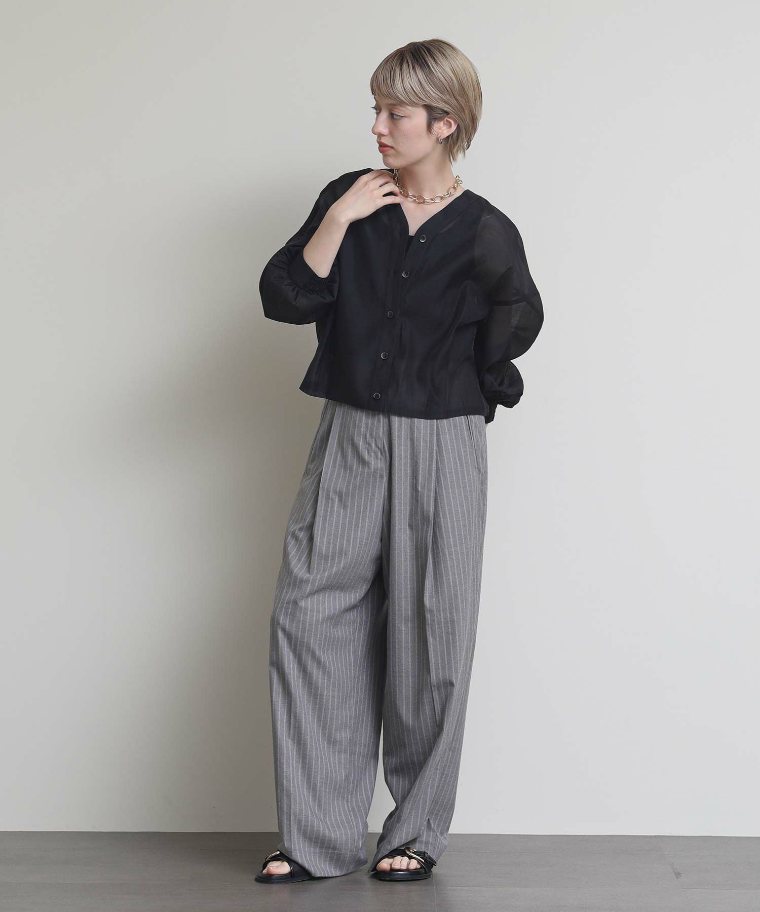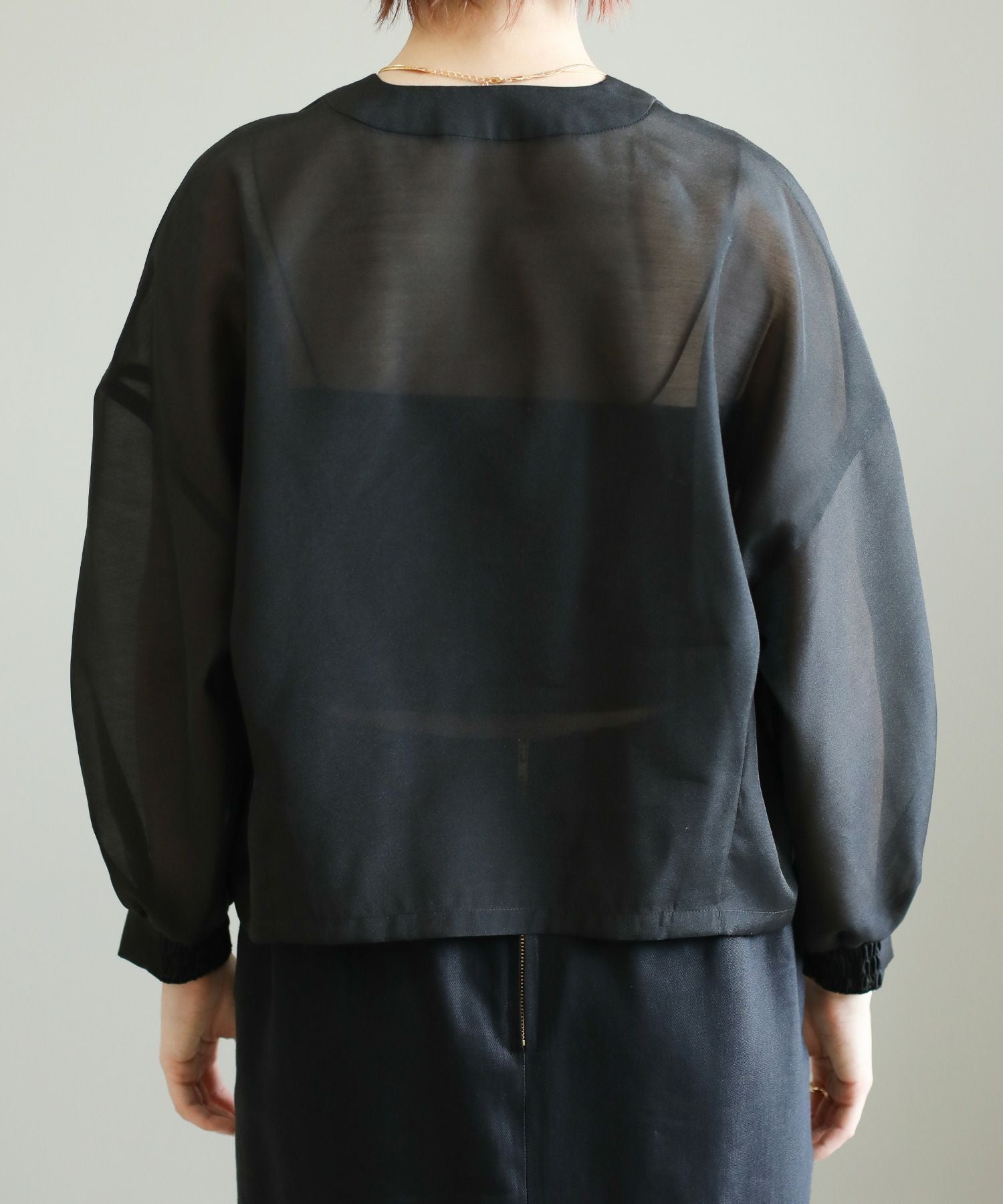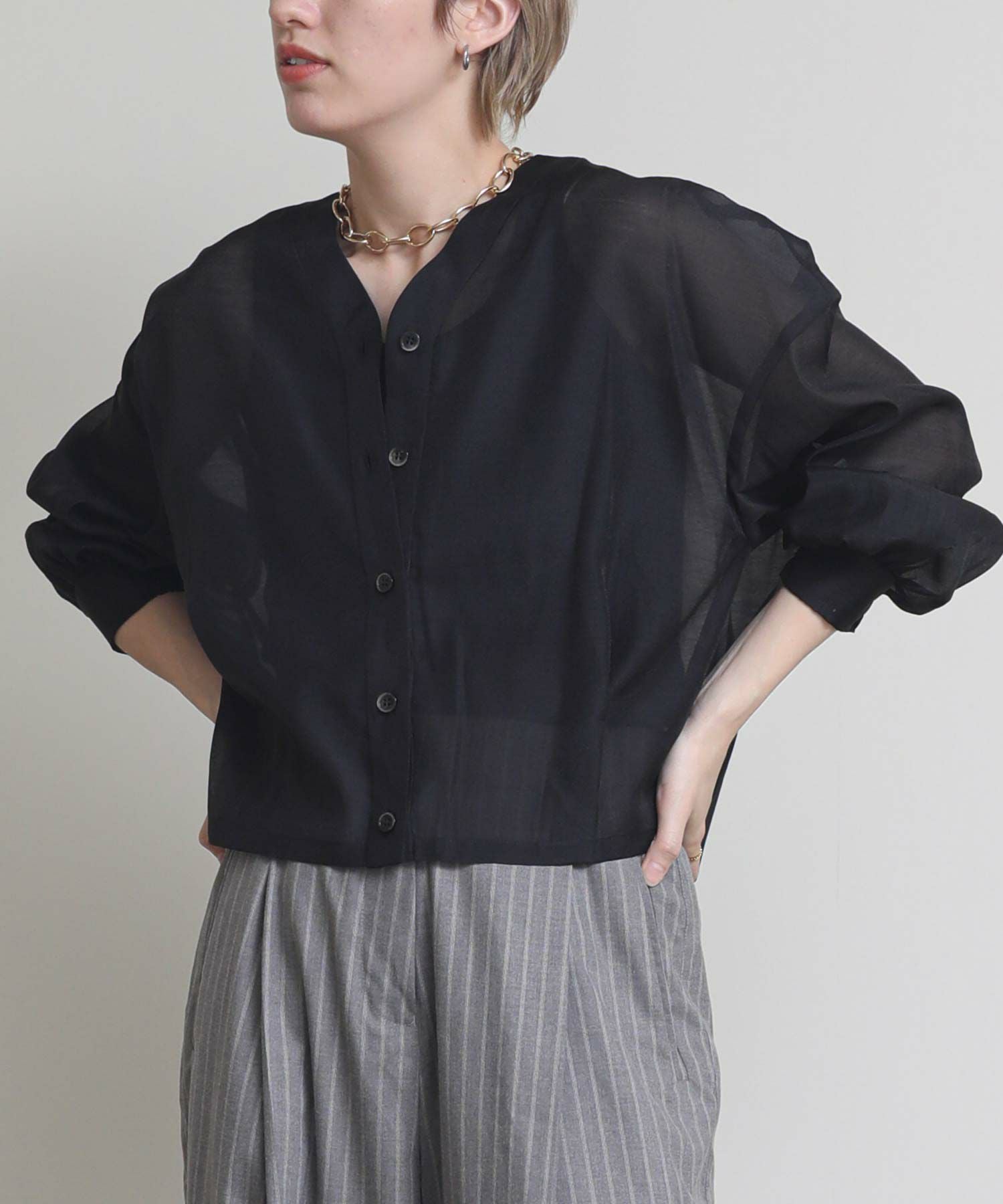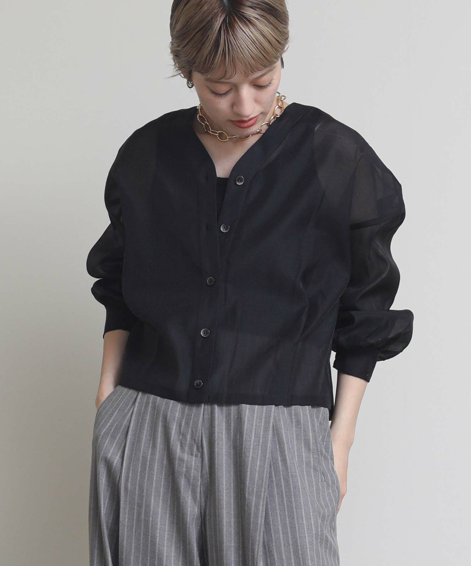 繊細なオーガンジー生地で優しいシアー感を楽しめるブラウス。