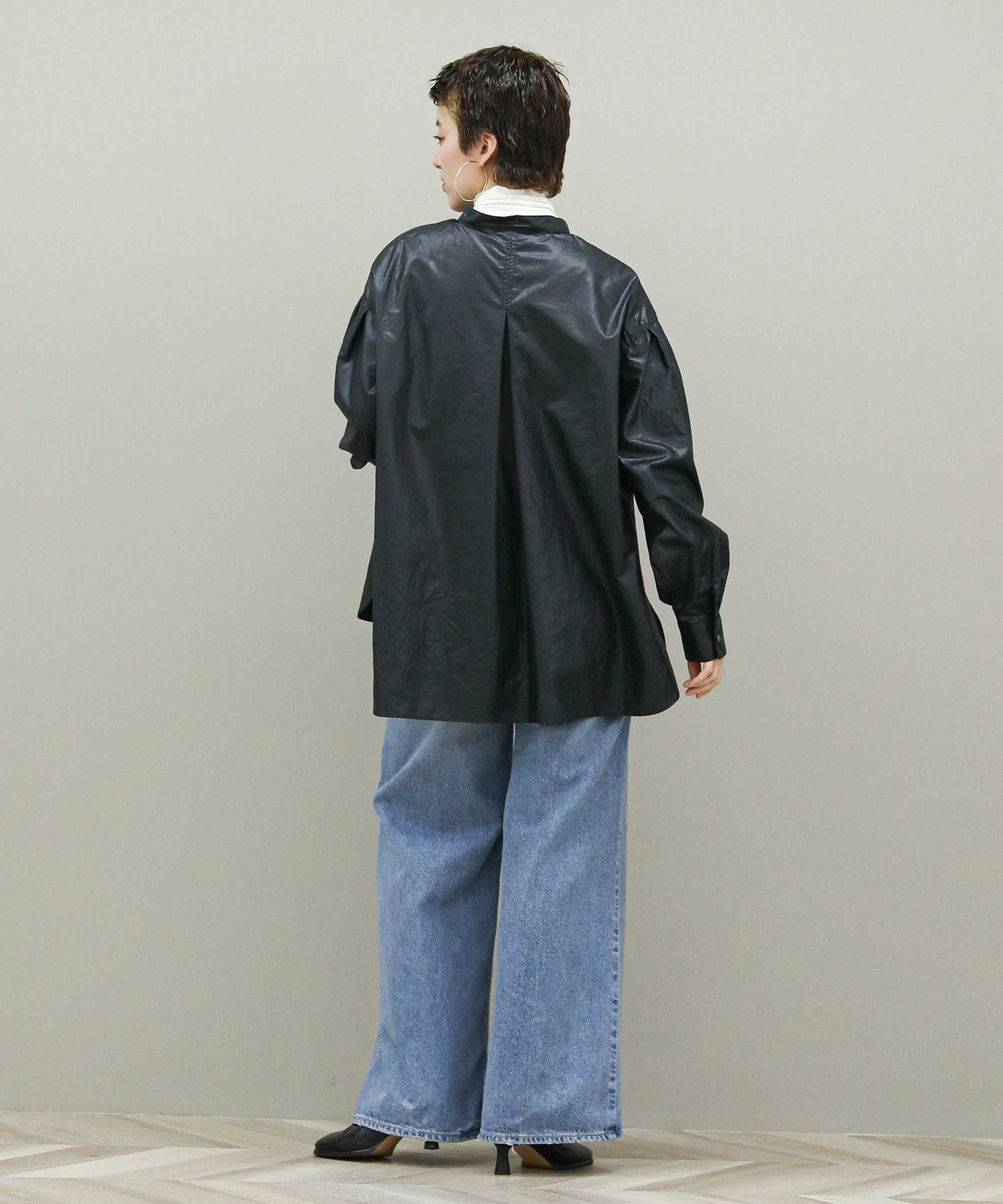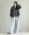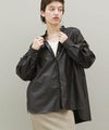 袖にボリュームをもたせることでハードになりがちなレザーアイテムを女性らしく仕上げました。スキッパーデザインを活かしてインナーにタートルやロンT仕込むのもおすすめ。腰回りをカバーしてくれる着丈なのでタイトスカートと好相性。スラックスやワイドパンツとはタックインしてきるとバランスも取りやすいです。
