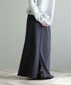 気になる部分はカバーしながらも華奢見えと足長効果のあるスカートです。ふんわりと膨らみにあるダンボール生地が暖かいのに軽く、快適な着心地です。ストレッチ性も高いくシワにならないので旅行にもおすすめです。あえて着丈を長く設定し、かっこいいバランスにしていますが、ウエストを折り返して丈を調整しても柔らかい生地なのでもたつきません。