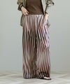 ストライプ柄がすっきりとした縦のラインを強調してくれます。柔らかくしなやかな素材感で脚のラインを自然に拾わないのも嬉しいポイント。上品な光沢感が際立ち女性らしい雰囲気を引き立ててくれます。着心地も良く、華やかなシーンにもデイリーにも使いやすい万能な生地感です。