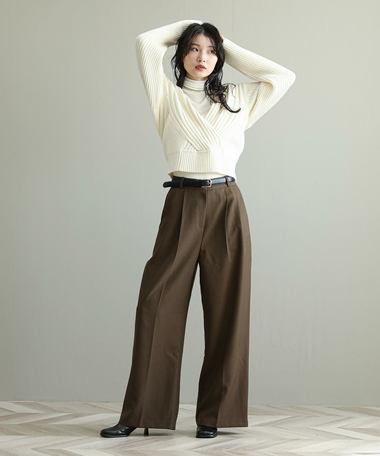 立体的なリブが表情をつくり、ベーシックなボトムと合わせてもサマになります。デコルテを綺麗に見せてくれるので、あえて首の開いたインナーを着ても◎タートルネックやシャツを重ねるとモードな雰囲気にも。着丈は少し短めに設定しているのでワイドボトムでもバランス良く着られます。