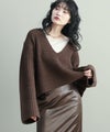 深いVネックデザインがポイントのプルオーバーニット。