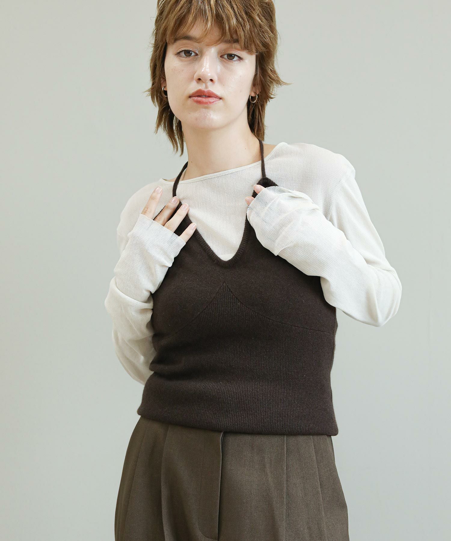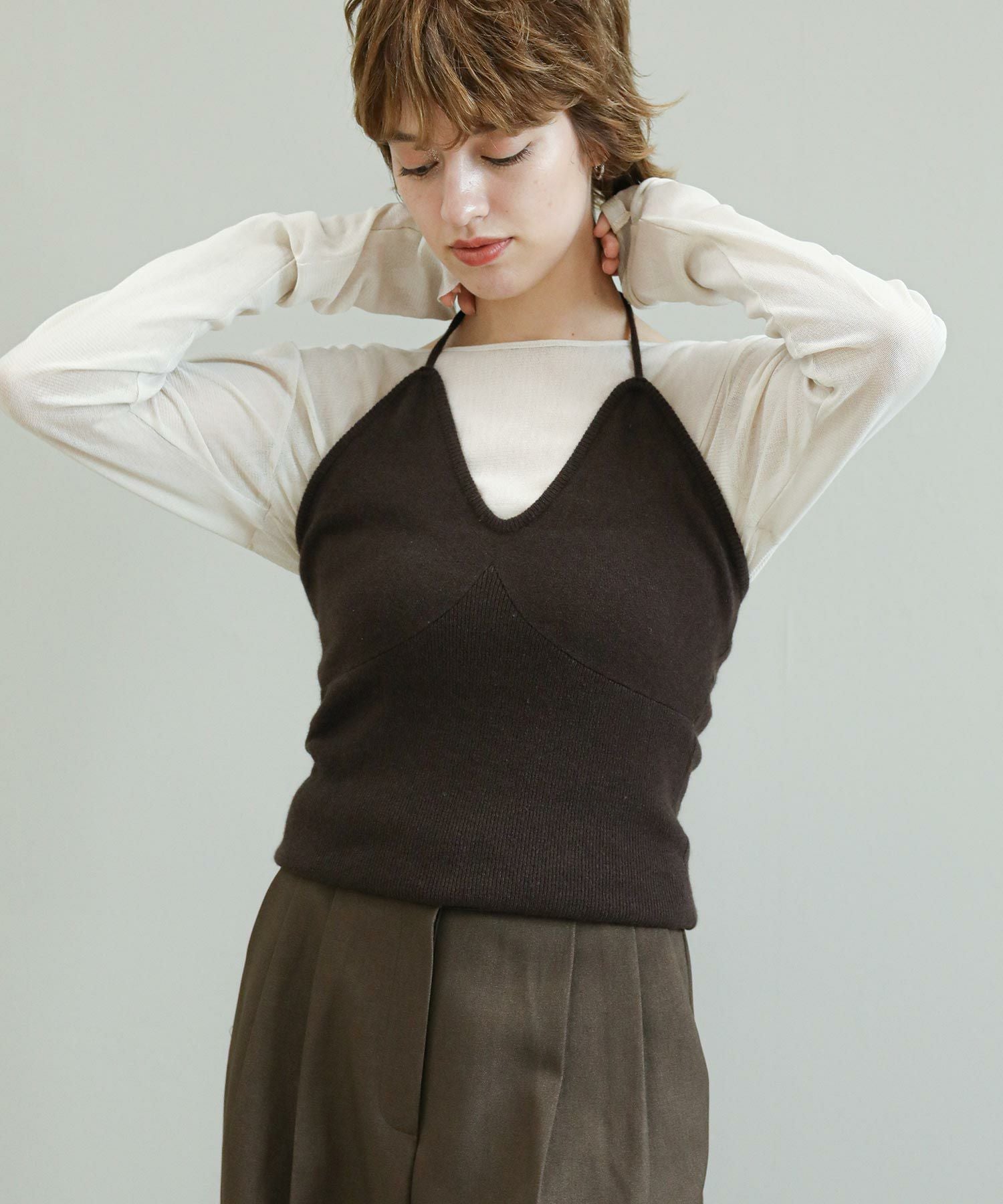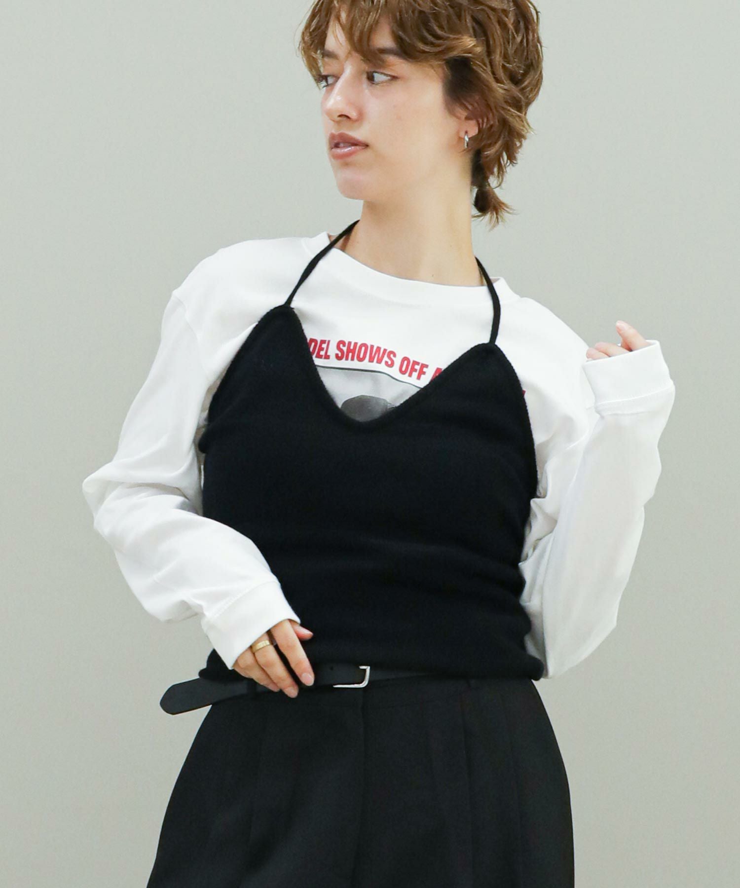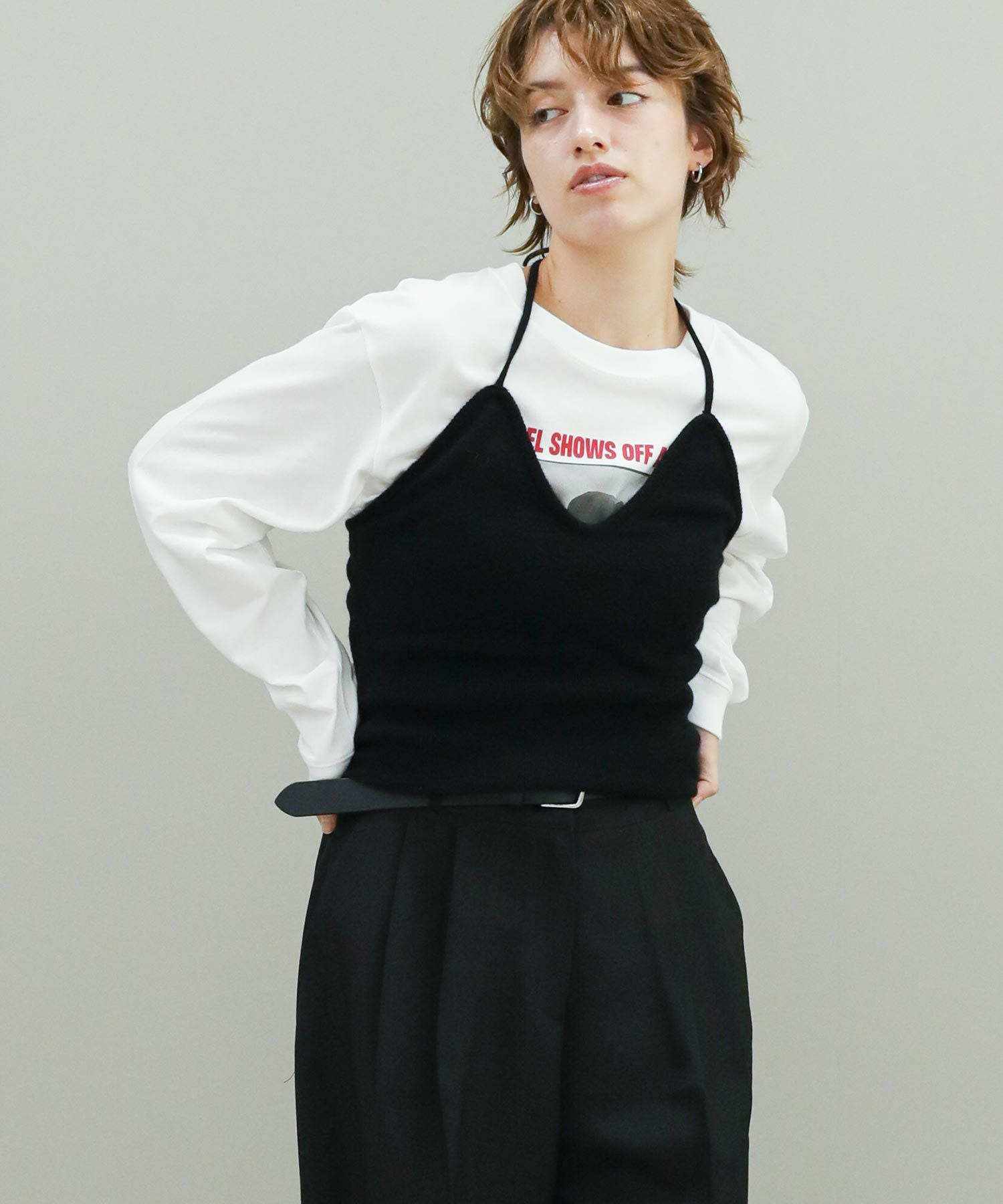 Tシャツやシャツに重ねるのはもちろん、ジャケットやシャツのインナーにするのも今のムードにピッタリです。華奢な紐も女性らしさをプラス。いつものスタイルにプラスするとコーデも幅が広がります。