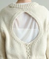 背中の開きとレースアップのリボンがポイントに。シンプルなボトムと合わせてもサマになります。袖のケーブルのさりげないアクセントに。タートネックやシャツはもちろん、シアーのインナーをレイヤードするのもおしゃれ感アップ◎