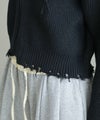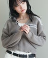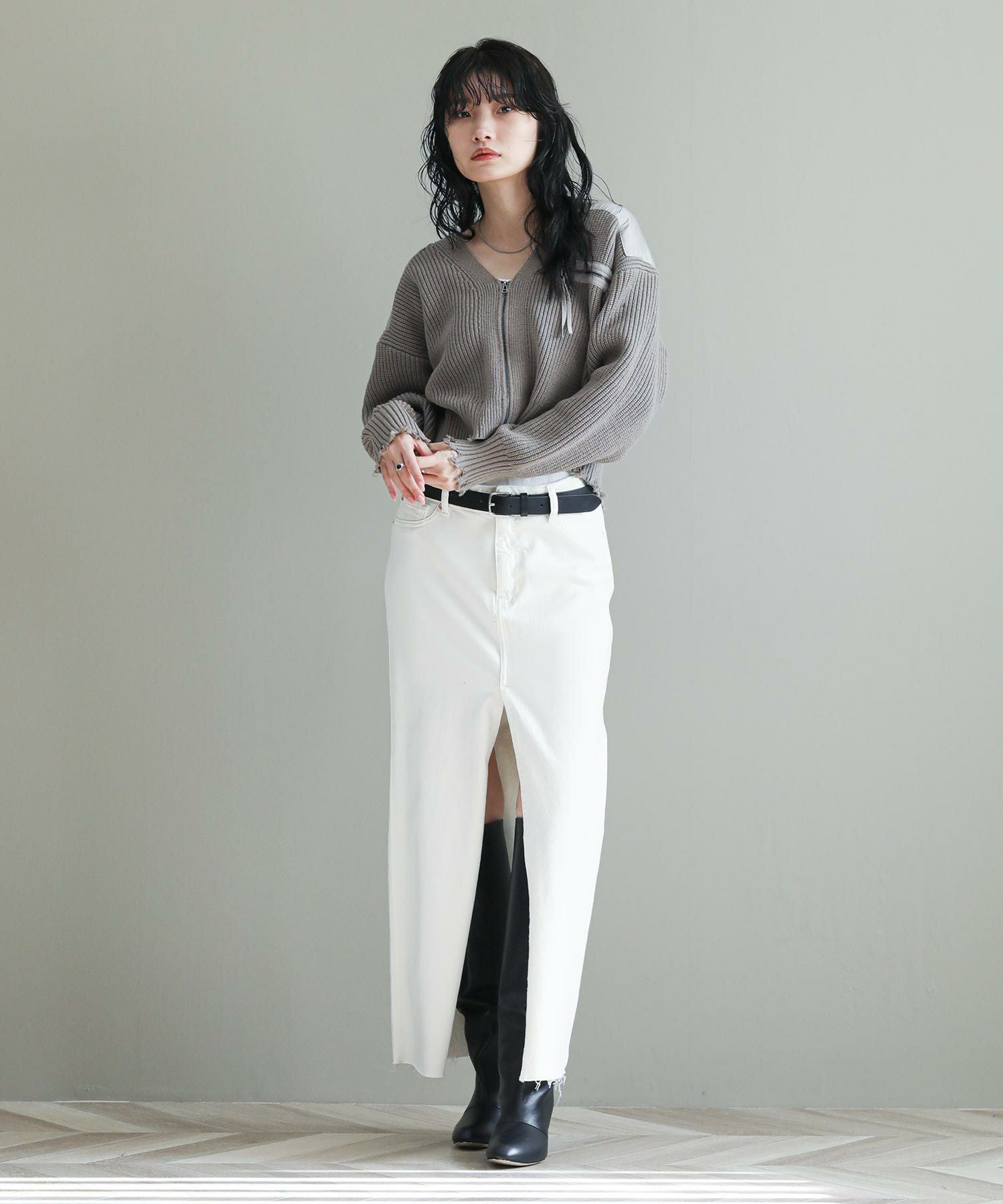 裾のダメージ風のフリンジもポイント。短めの着丈でボリュームのあるボトムとも好相性。ファスナーを閉めてプルオーバーとしてきるのもおすすめです。