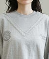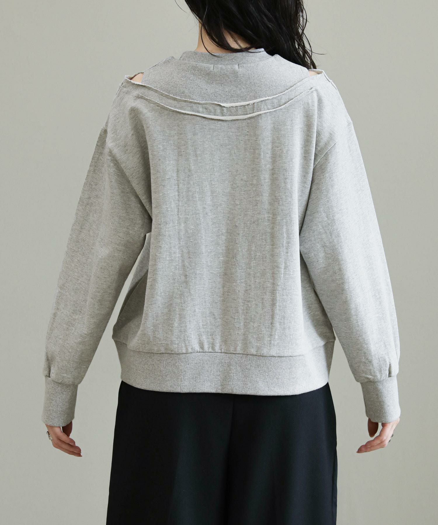 肩部分のさりげない肌見せがポイント。刺繍のエンブレムとロゴがカジュアルすぎず大人ぽい雰囲気に。ベーシックなボトムと合わせてもスタイルが決まるデザイントップスです。