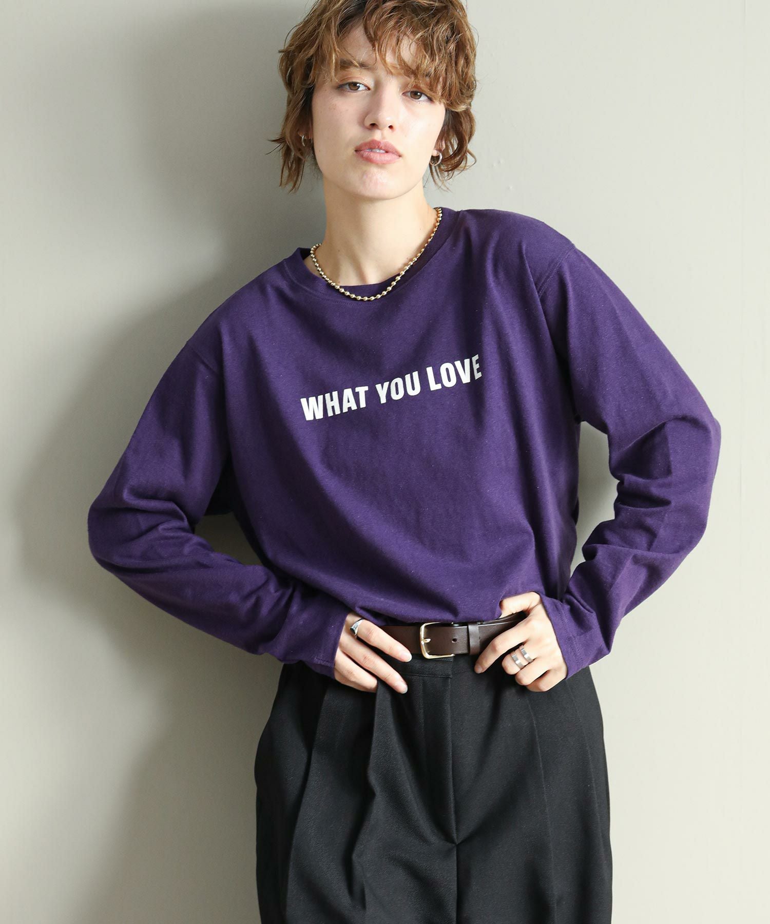 ヴィンテージライクな柔らかい生地を使用しています。裾をラウンドにしているのでニットやスウェットとレイヤードして裾から覗かせても◎今シーズンのロゴテーマは80’Sニューヨーク。フロントのロゴの「あなたの好きなもの教えて」の問いに架空のニューヨーカーの女の子がバックプリントで答えています。