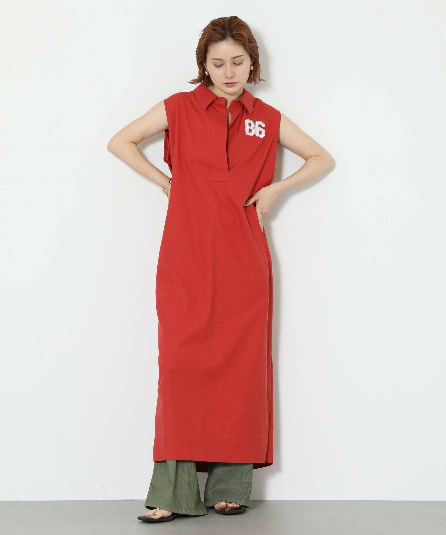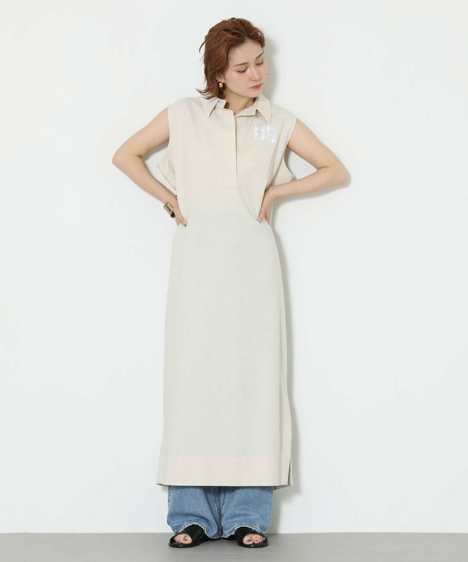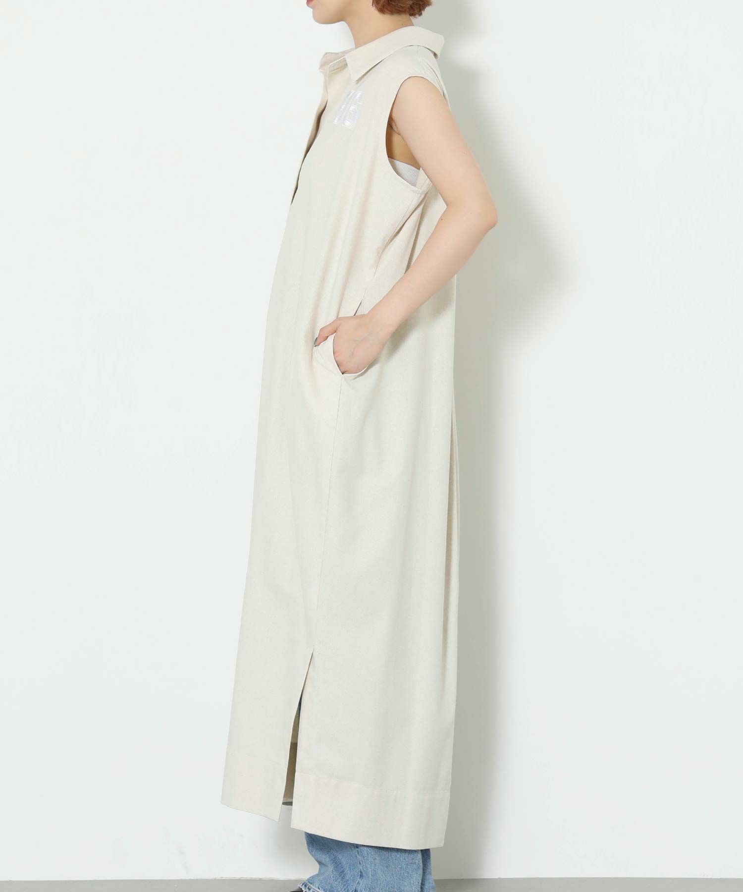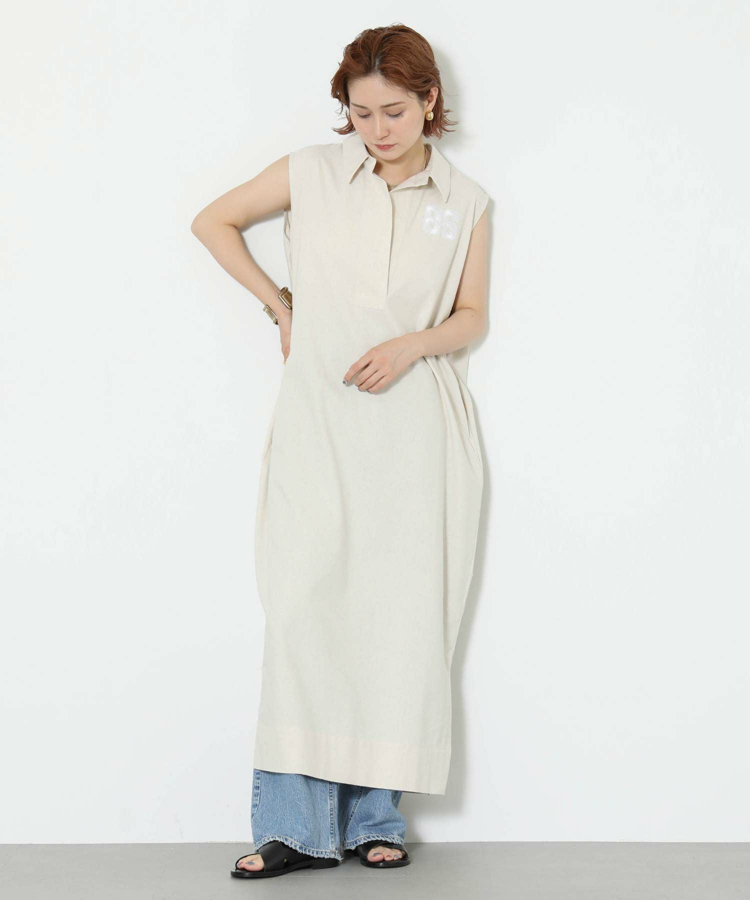 ワンポイントの刺繍とリネンの素材感で、カジュアルアップできる一着です。