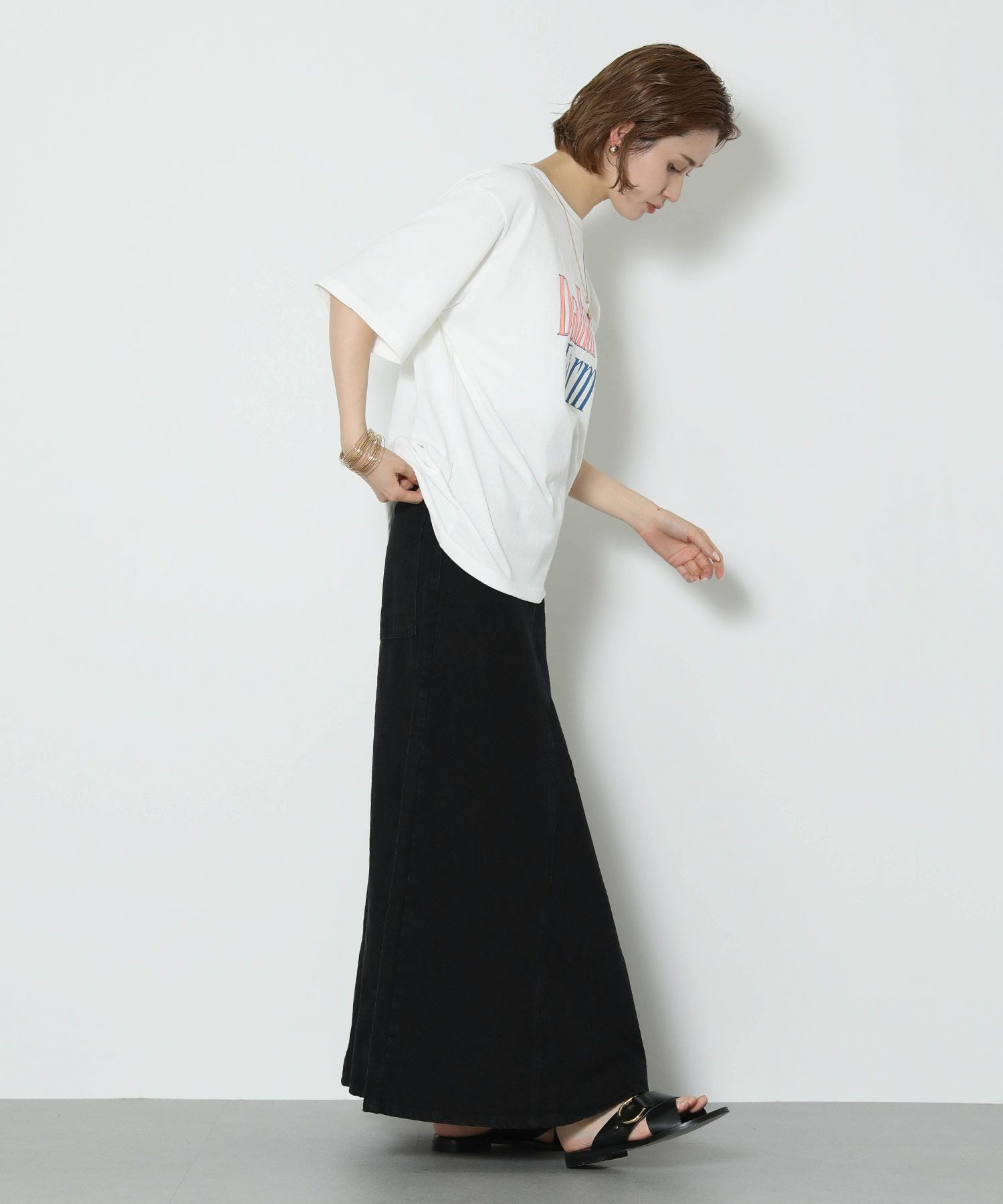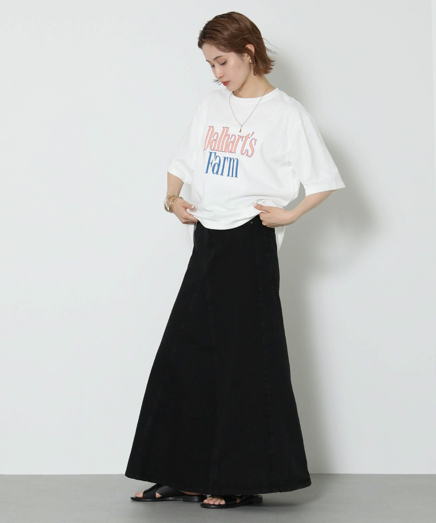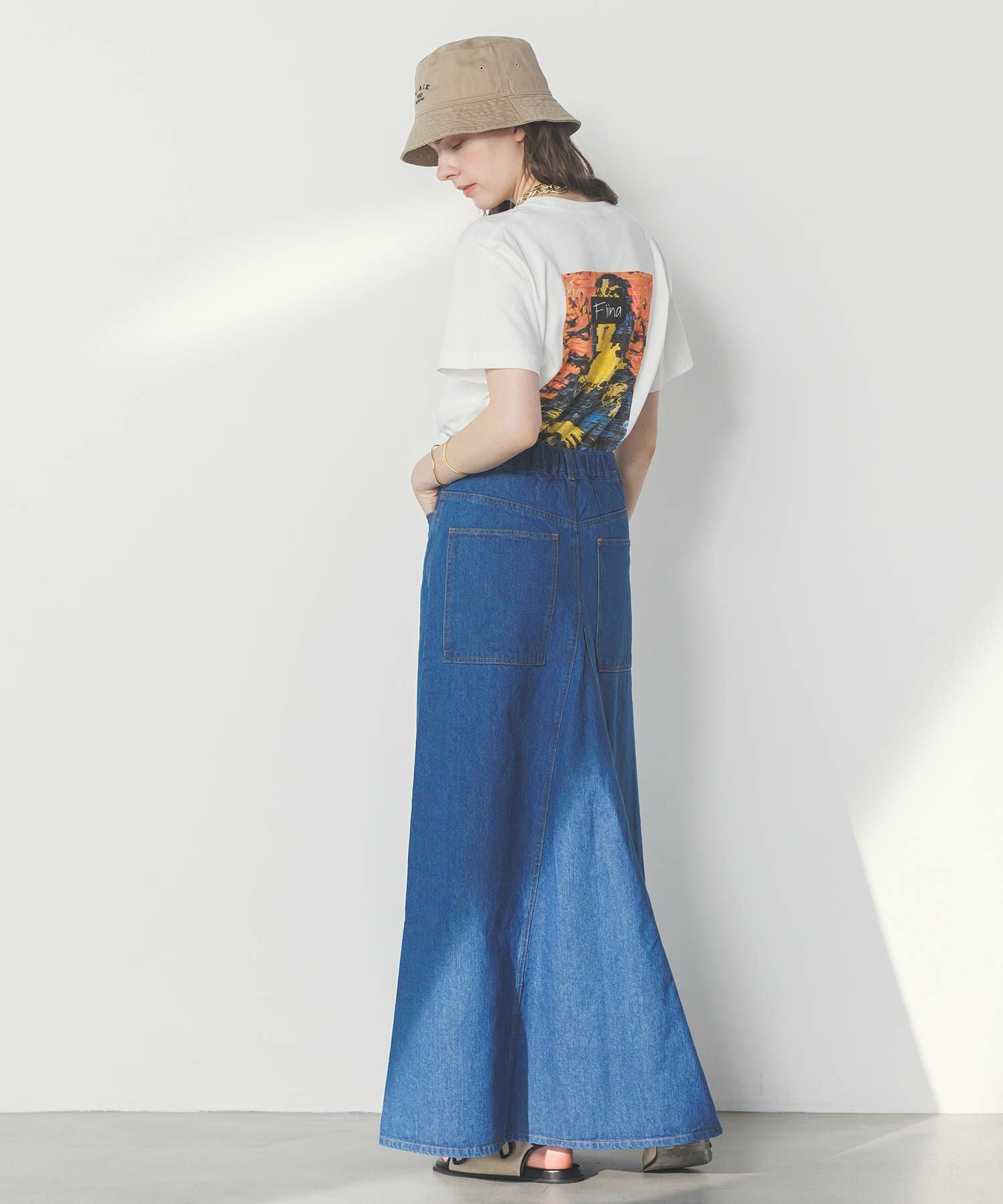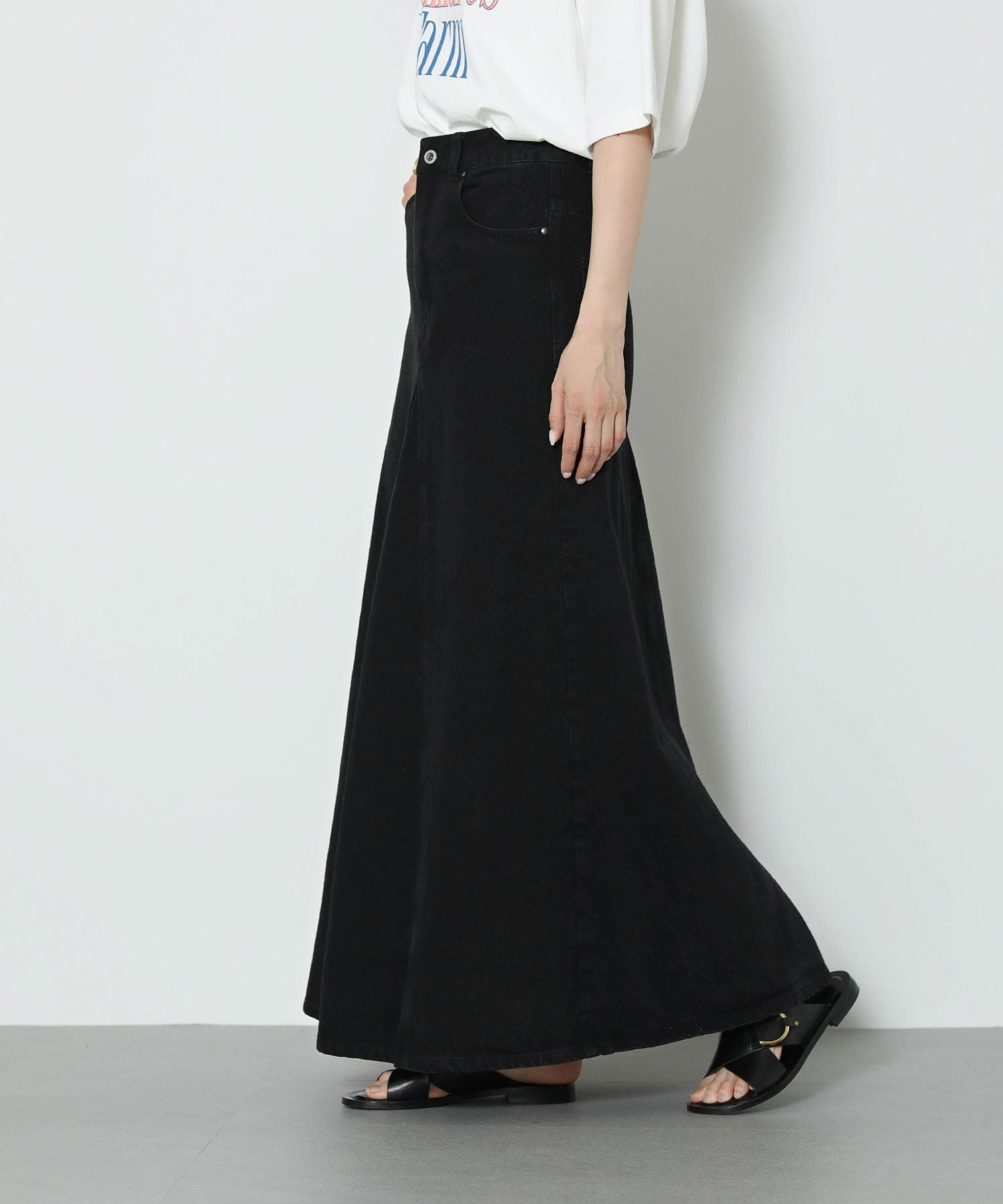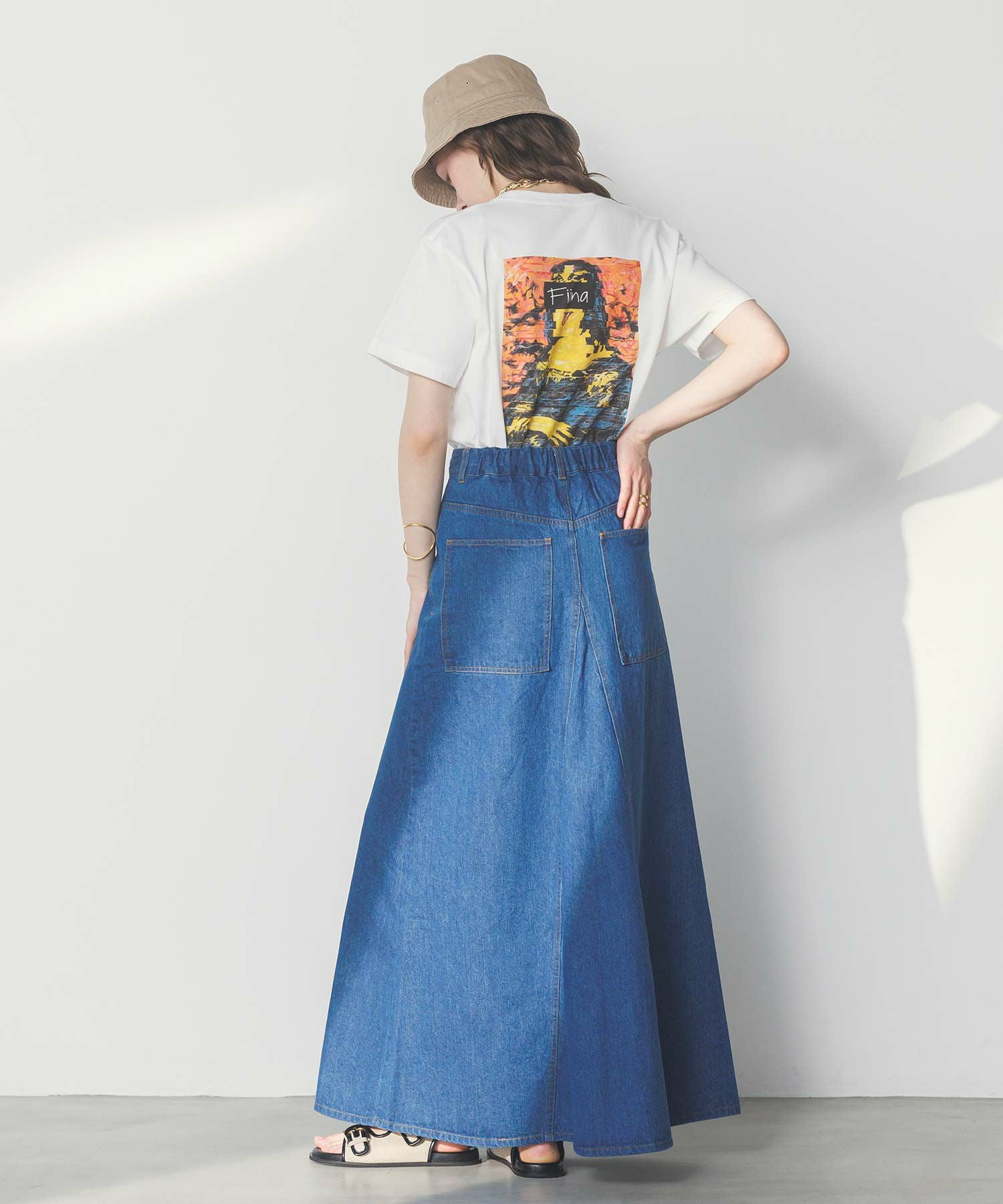 腰まわりをタイトに、裾に広がるAラインシルエットにすることでスタイルアップ効果のあるデニムスカートが登場。