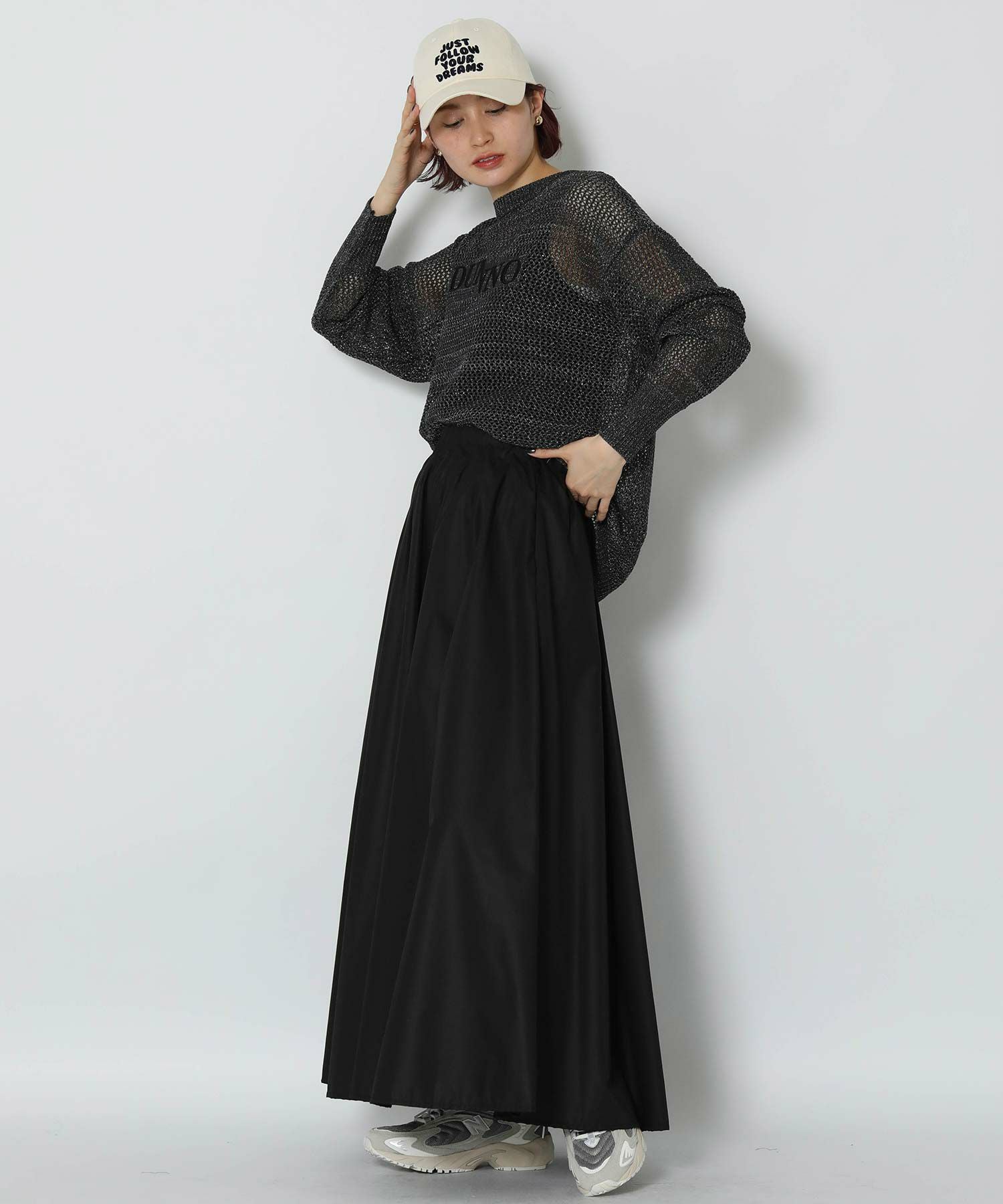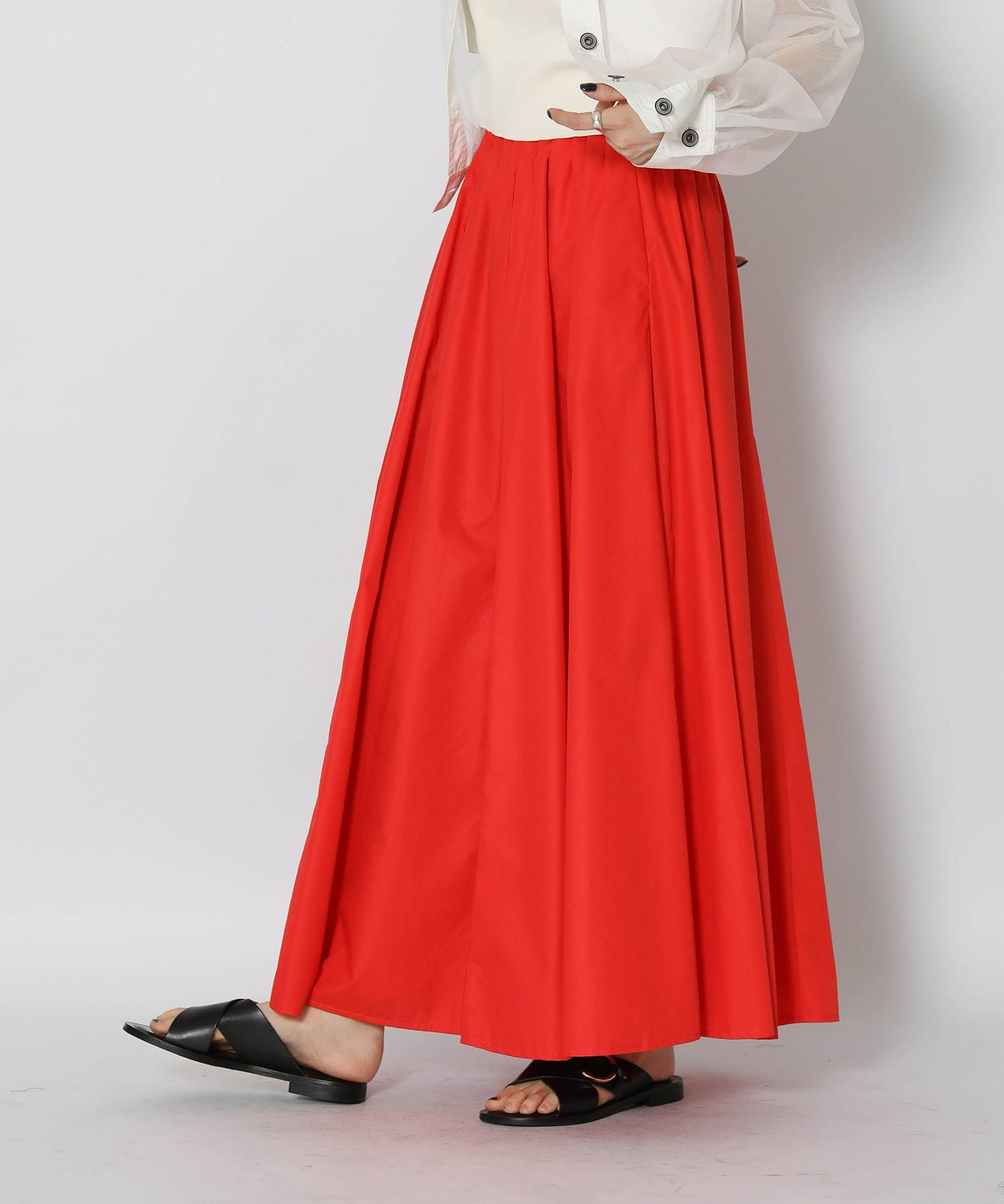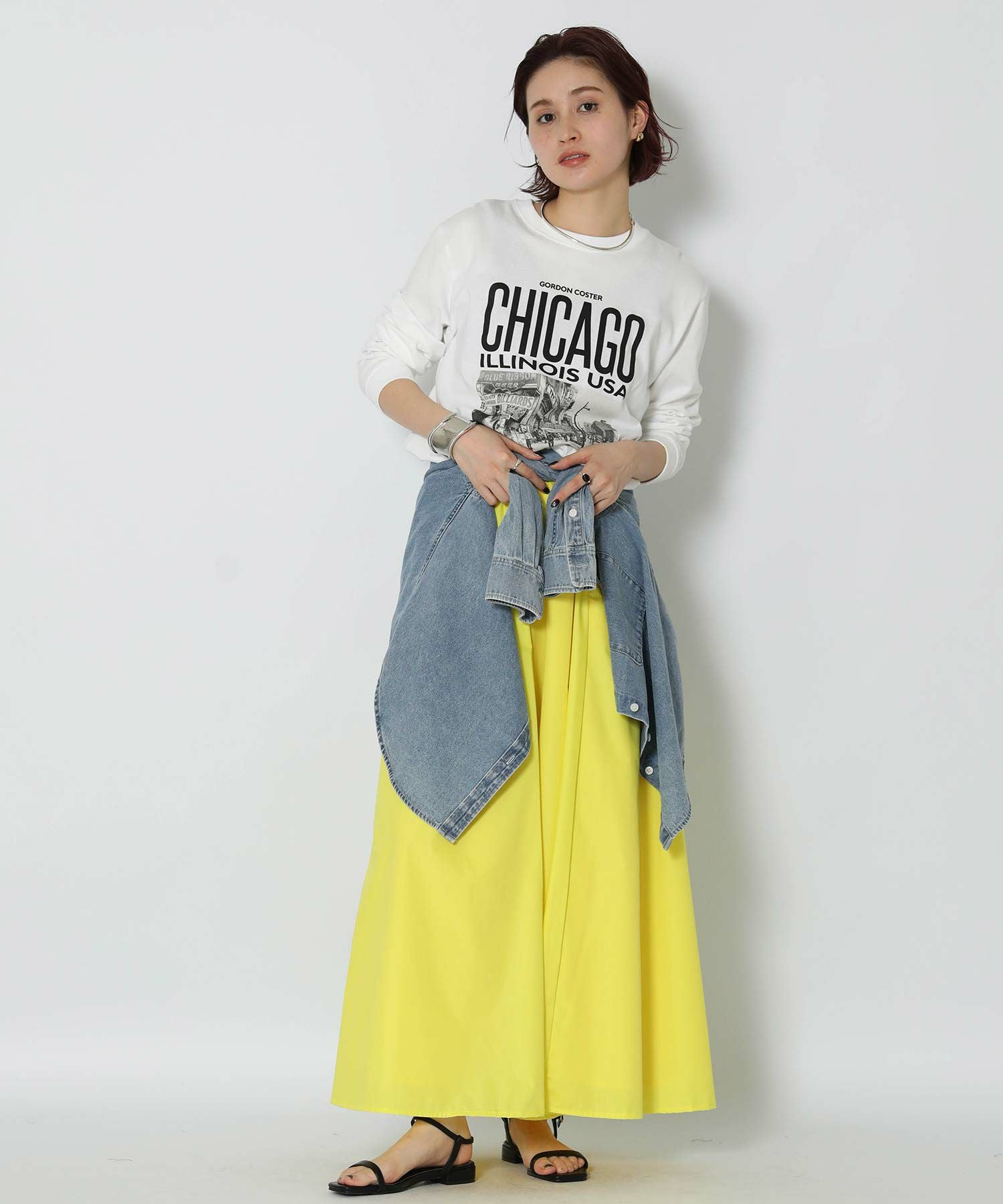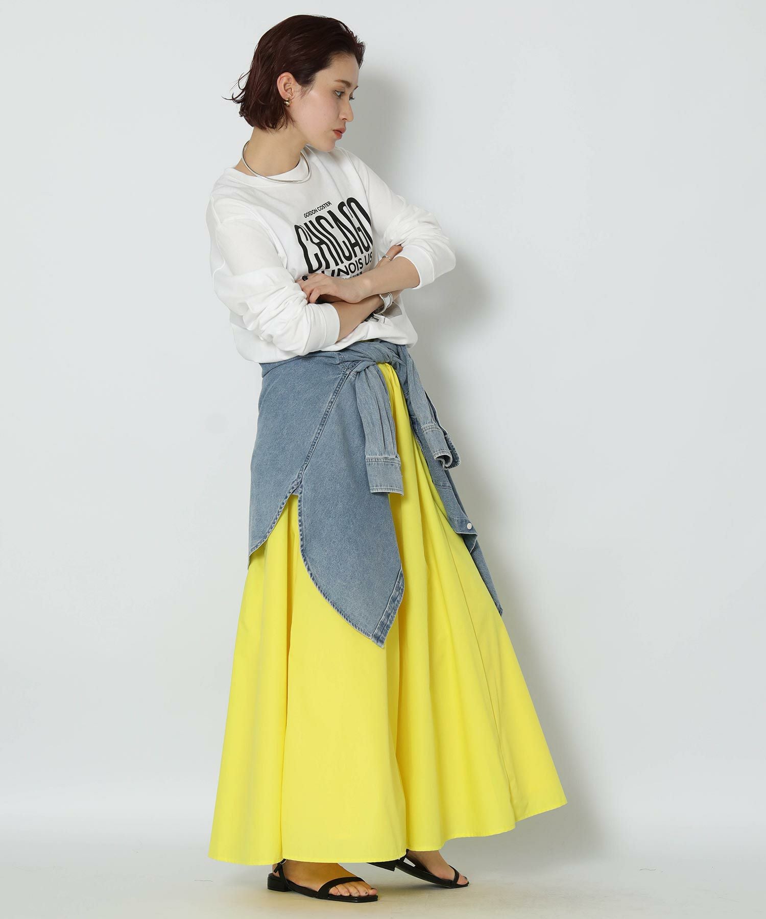 リラックス感溢れるシルエットと鮮やかなカラースカート。