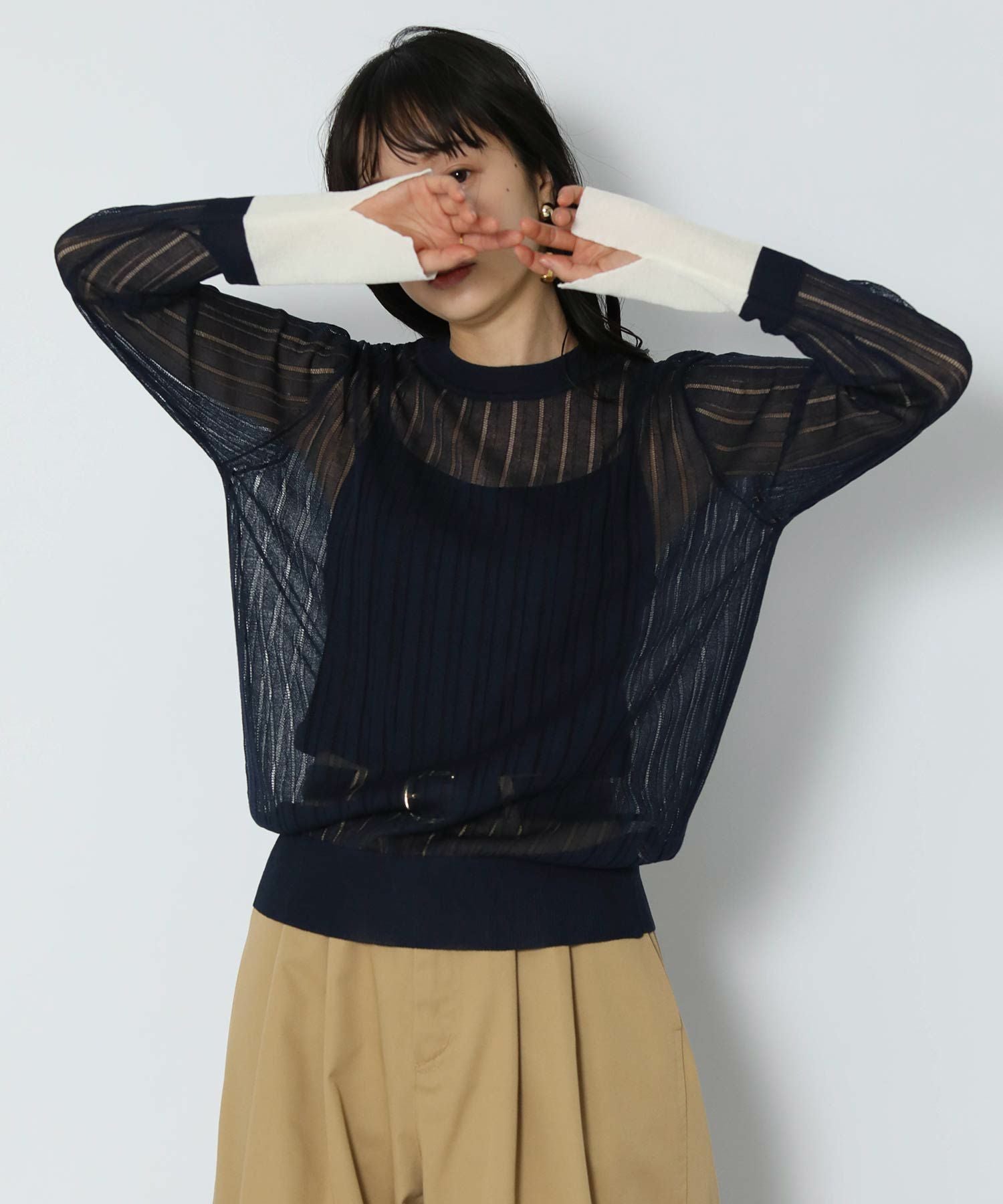 ロングシーズン活躍するシアー素材が特徴的なサマーニットが登場。