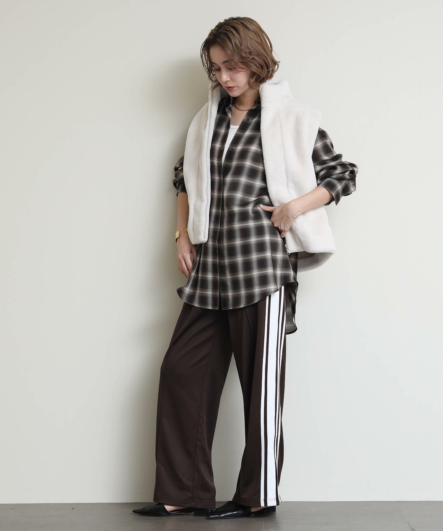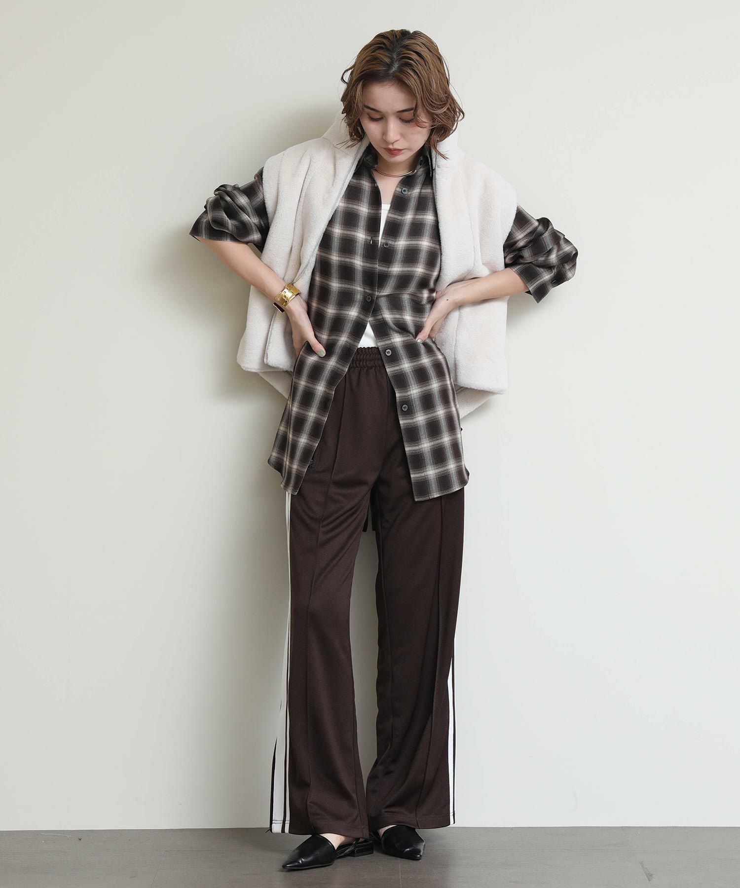 レトロな雰囲気とルーズなシルエットが魅力のアイテムとなっており、ルーズ過ぎず、よりシルエットにこだわった一着で、サイドラインをあえて大きく見せることでスタイルアップ効果も◎