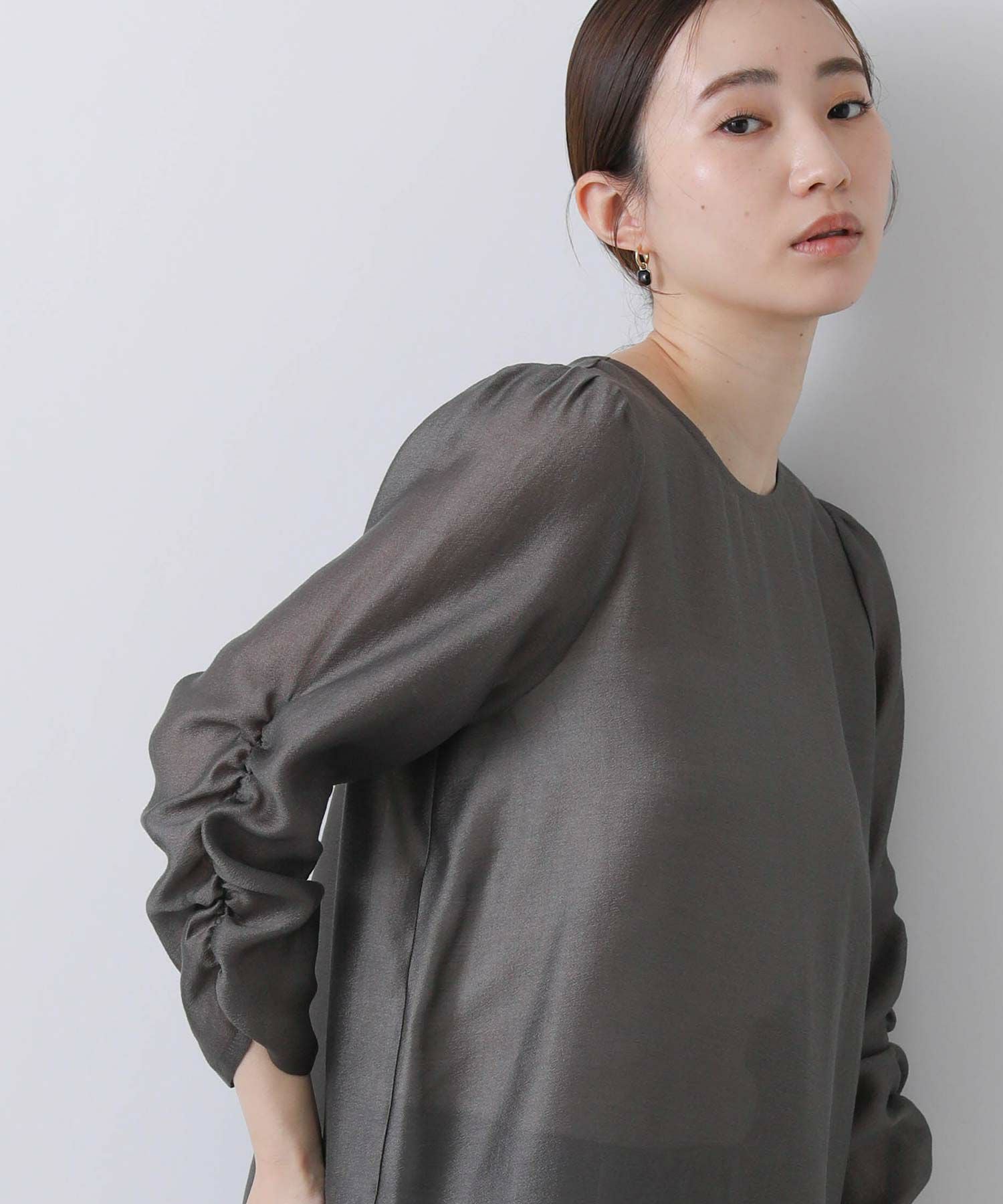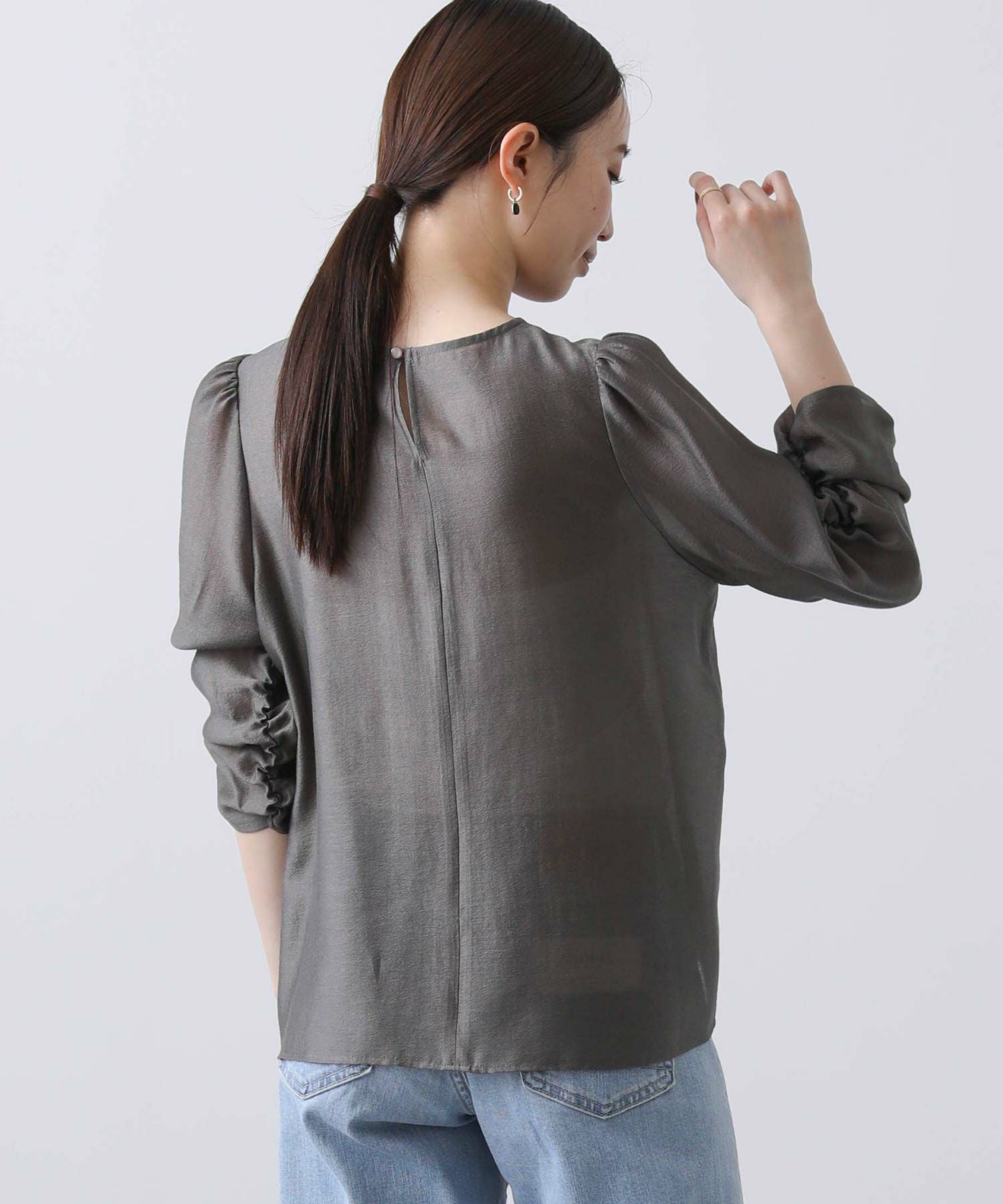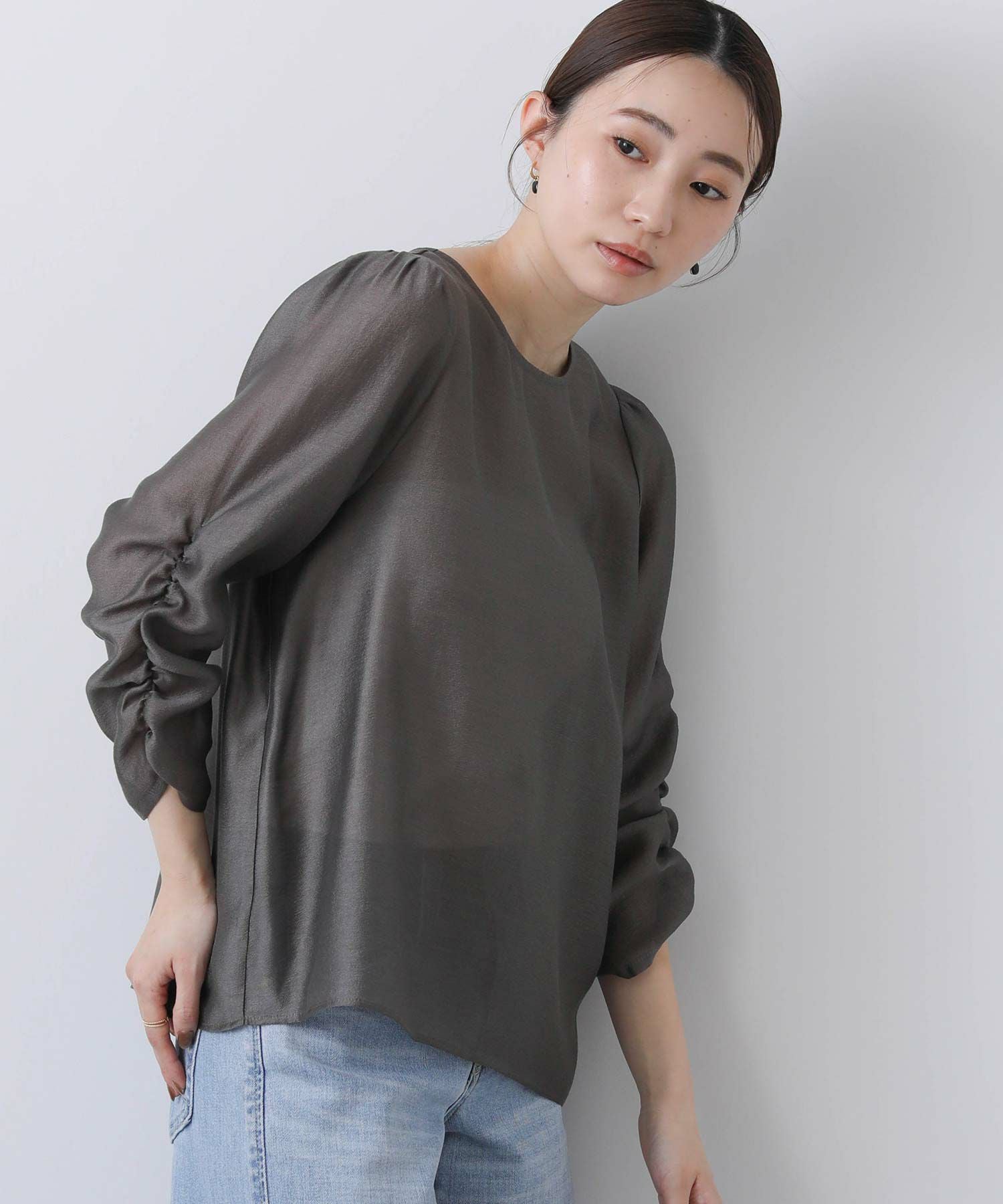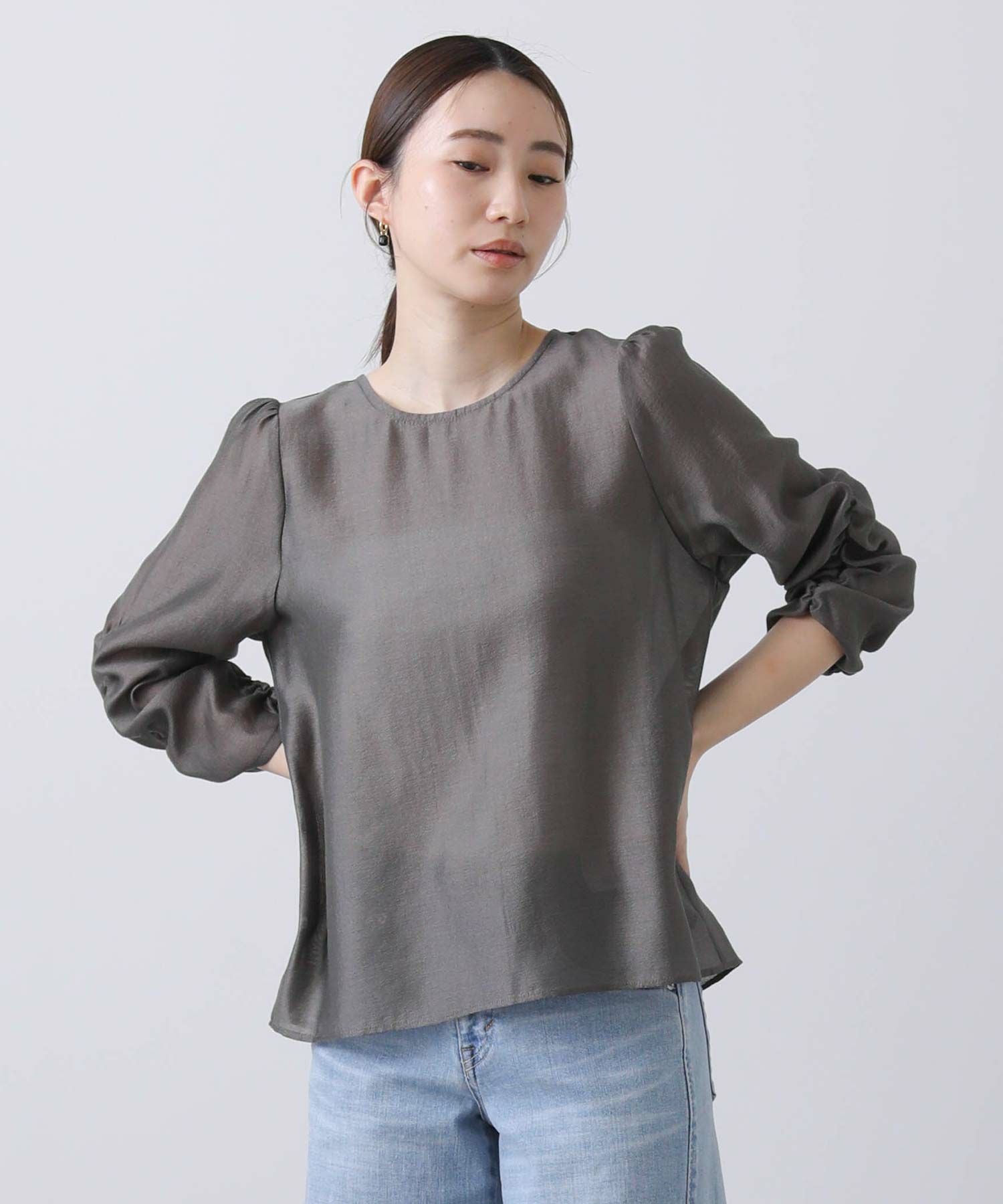 微光沢の素材を使ったデザインブラウス、1枚でトレンドの着こなしに仕上がります。