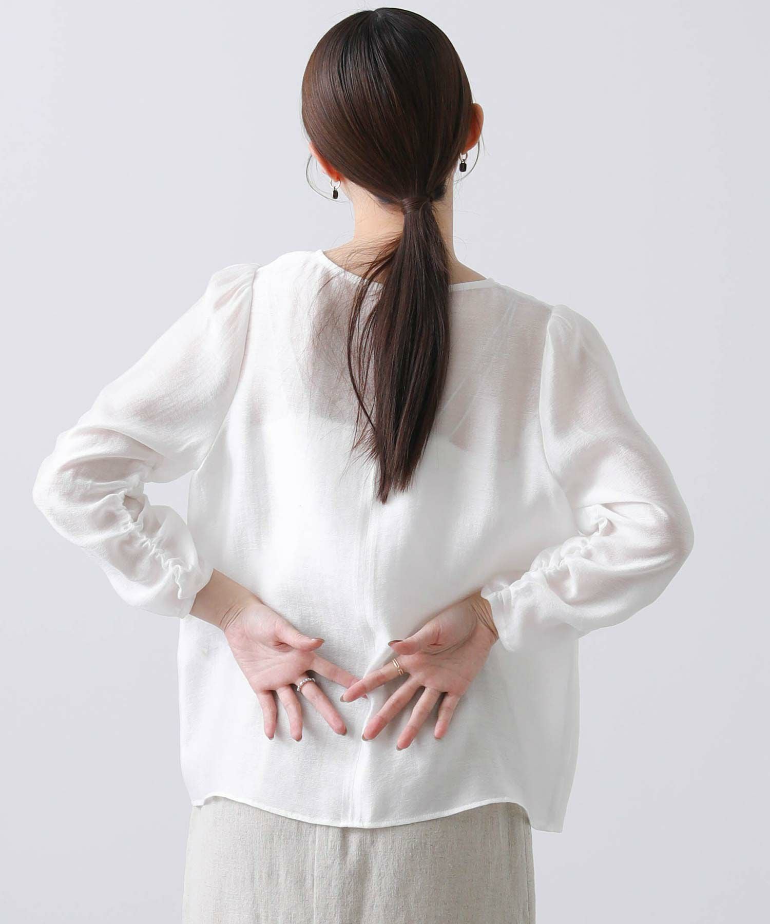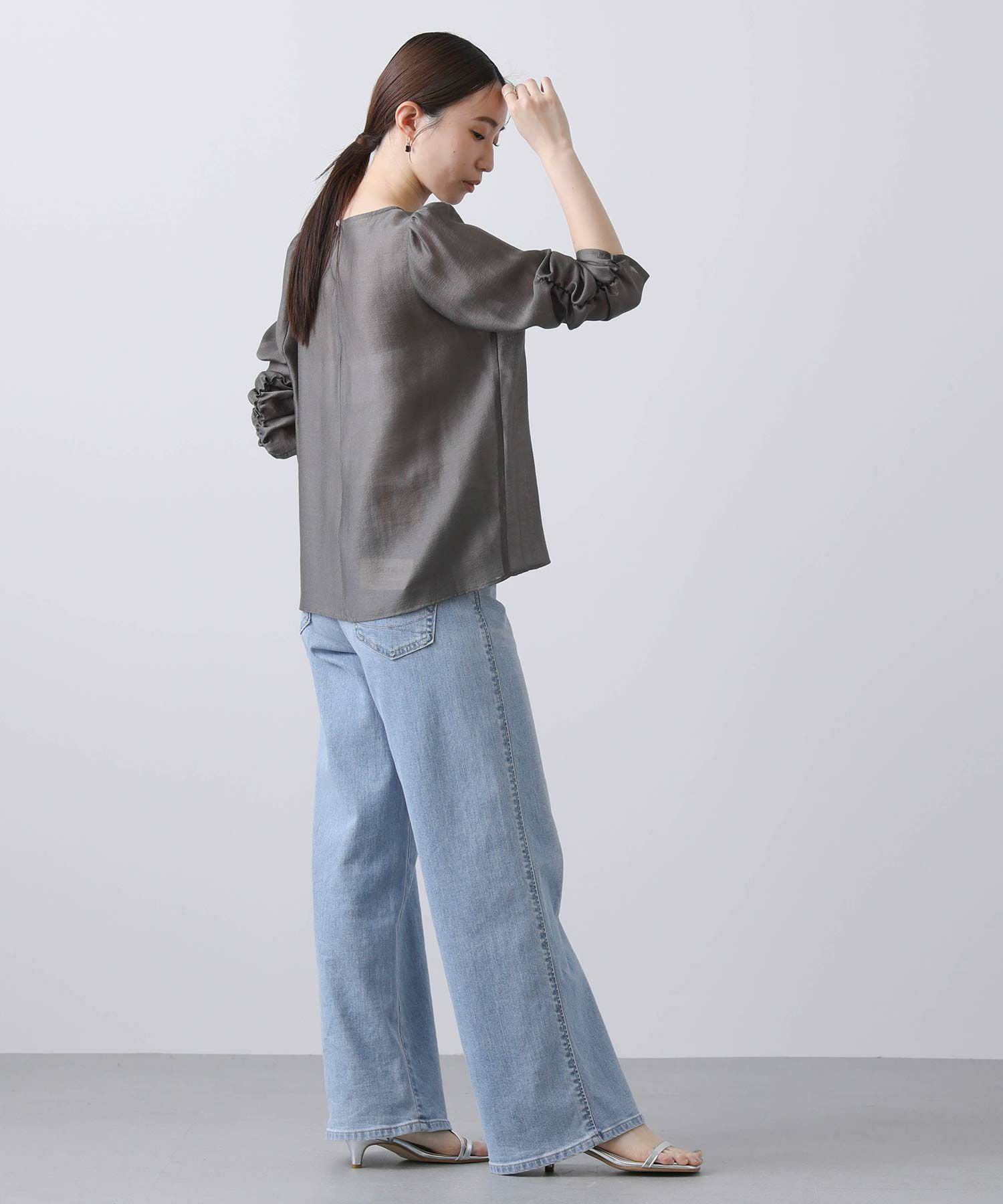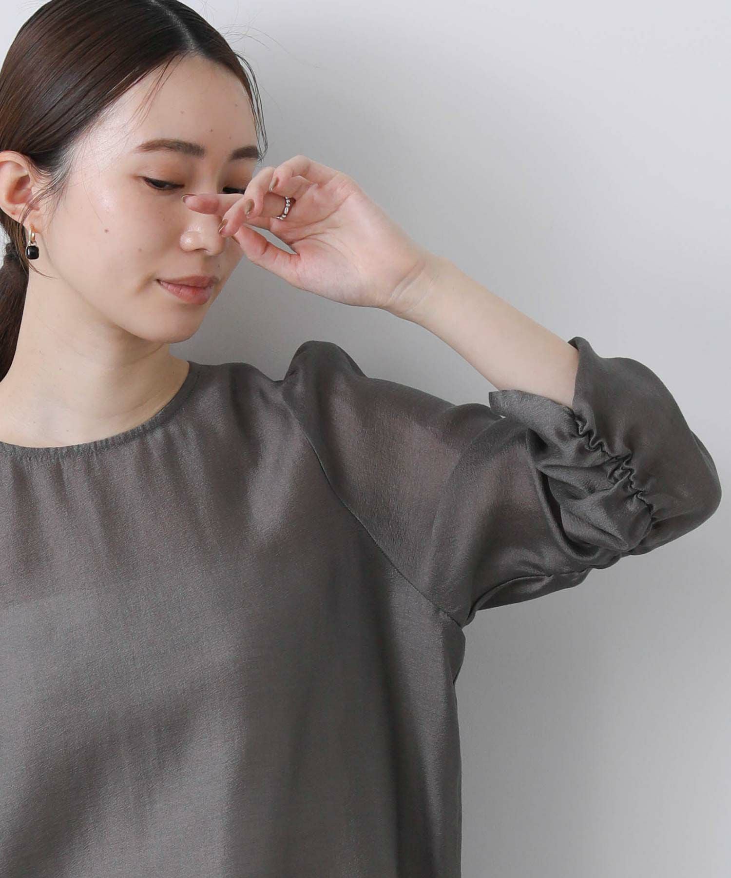 微光沢の素材を使ったデザインブラウス、1枚でトレンドの着こなしに仕上がります。