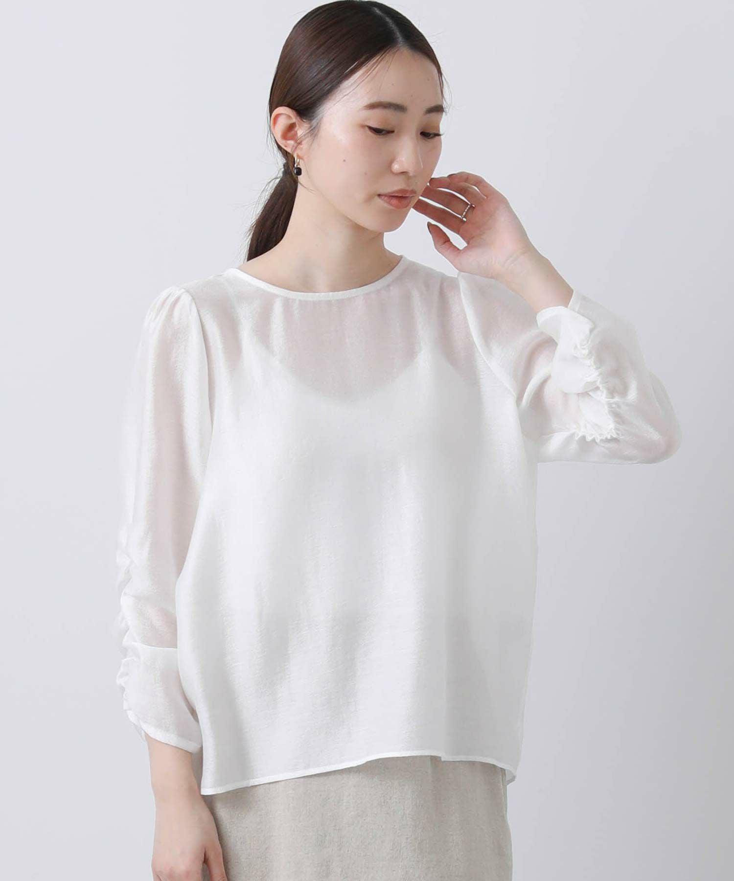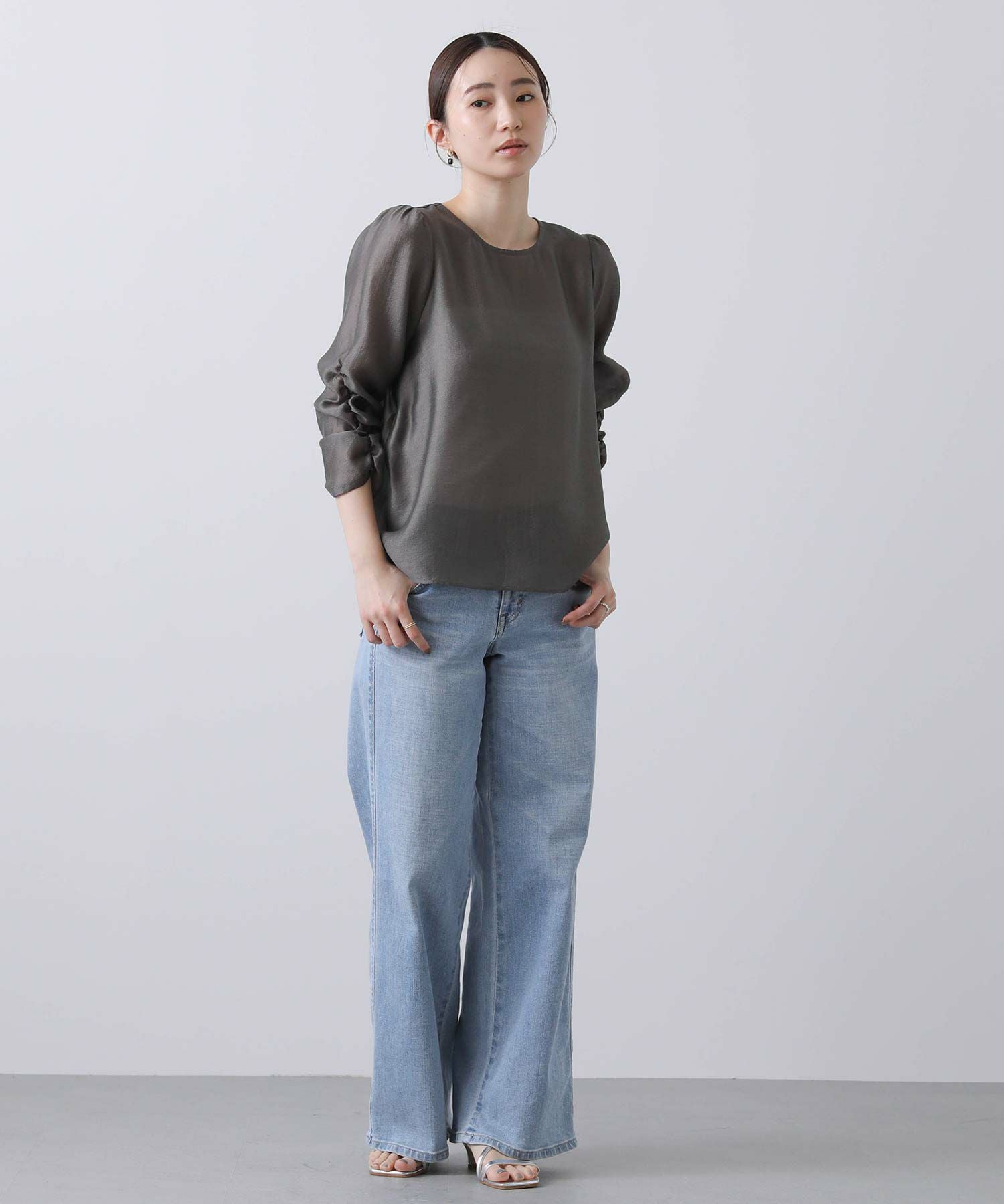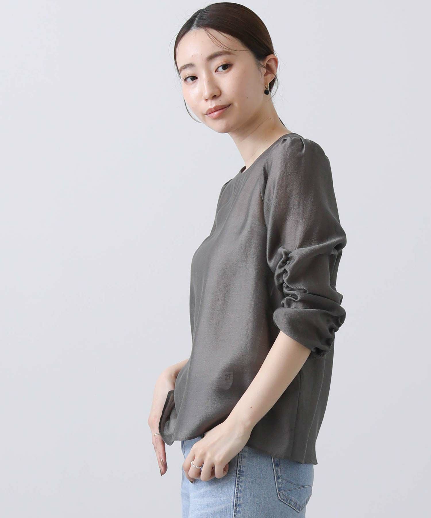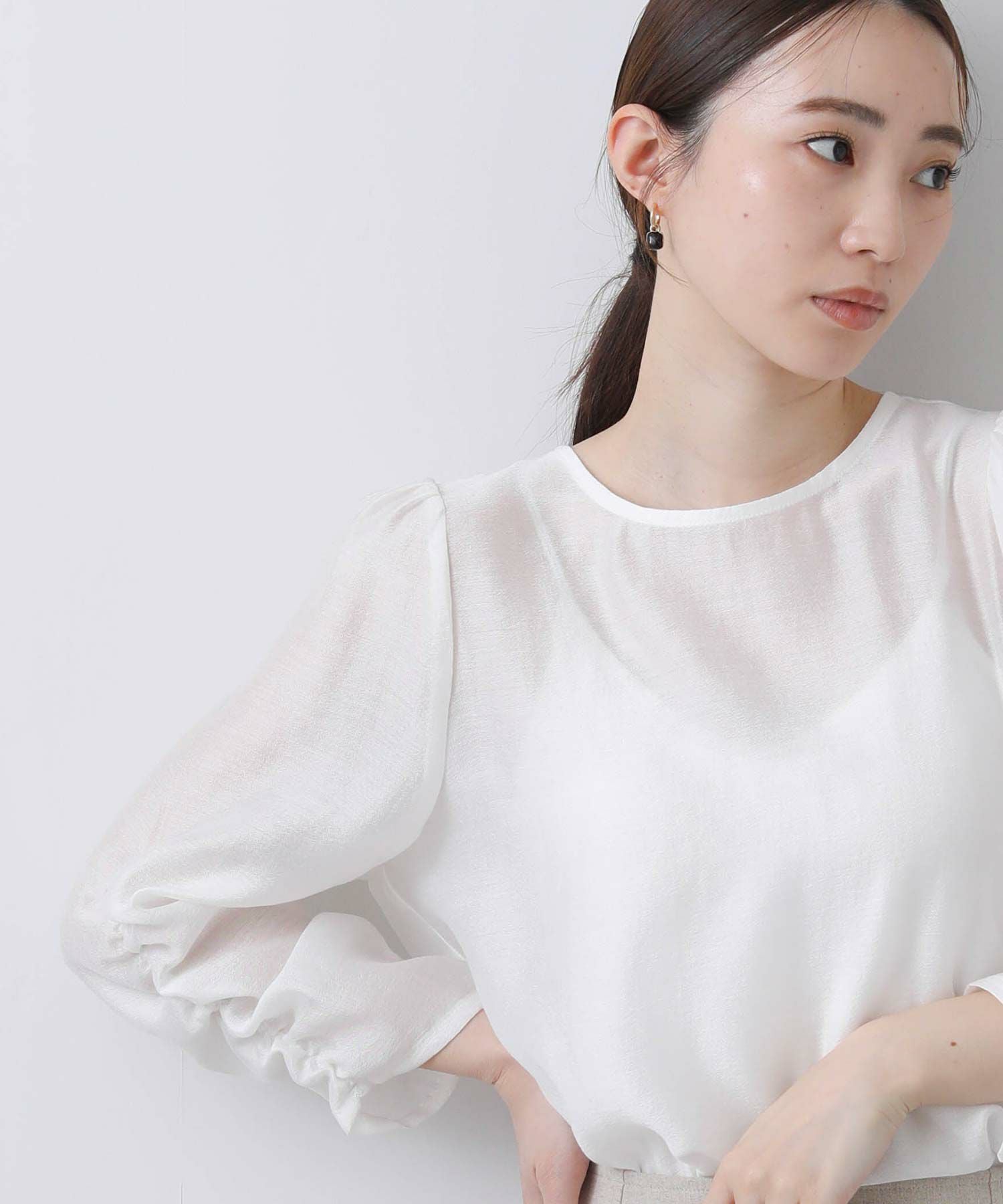 微光沢の素材を使ったデザインブラウス、1枚でトレンドの着こなしに仕上がります。