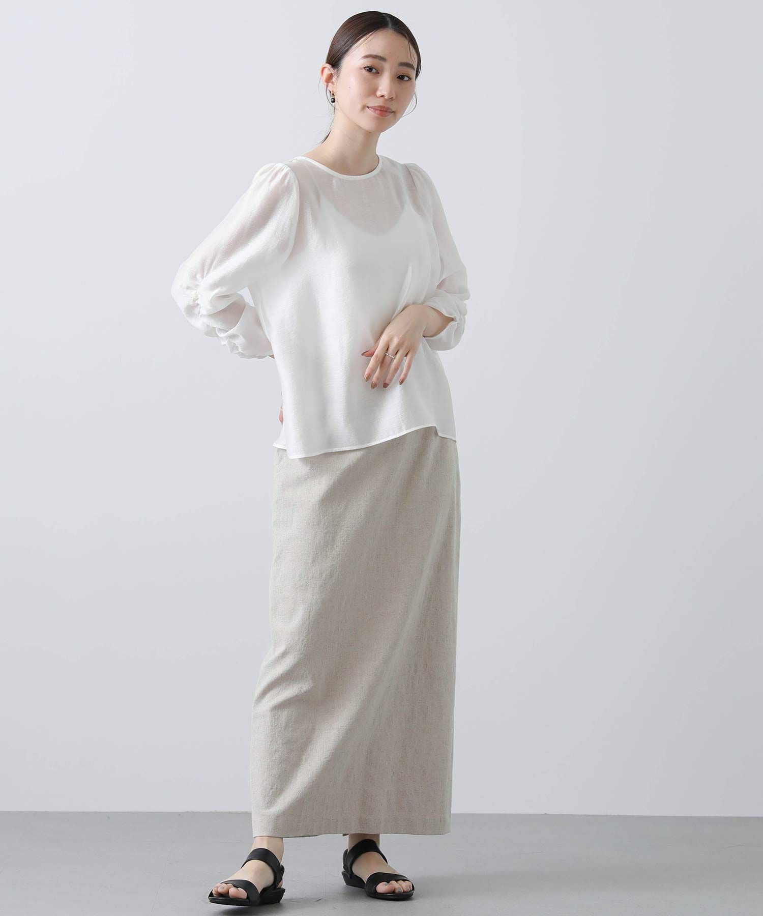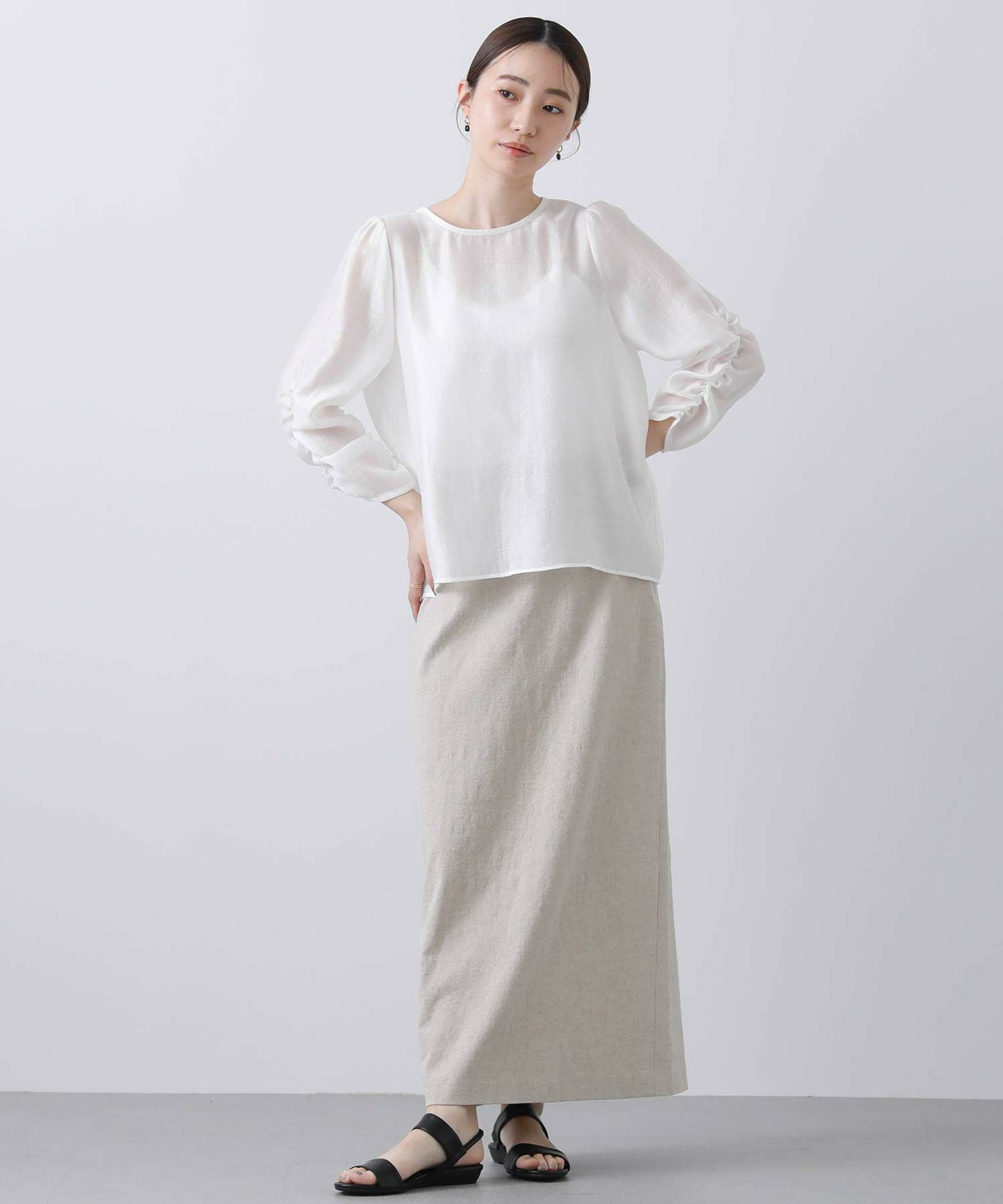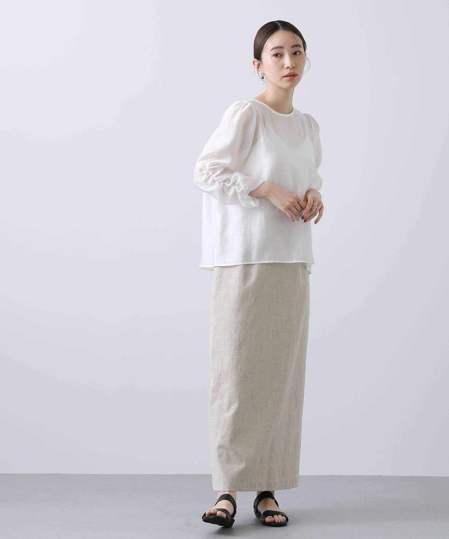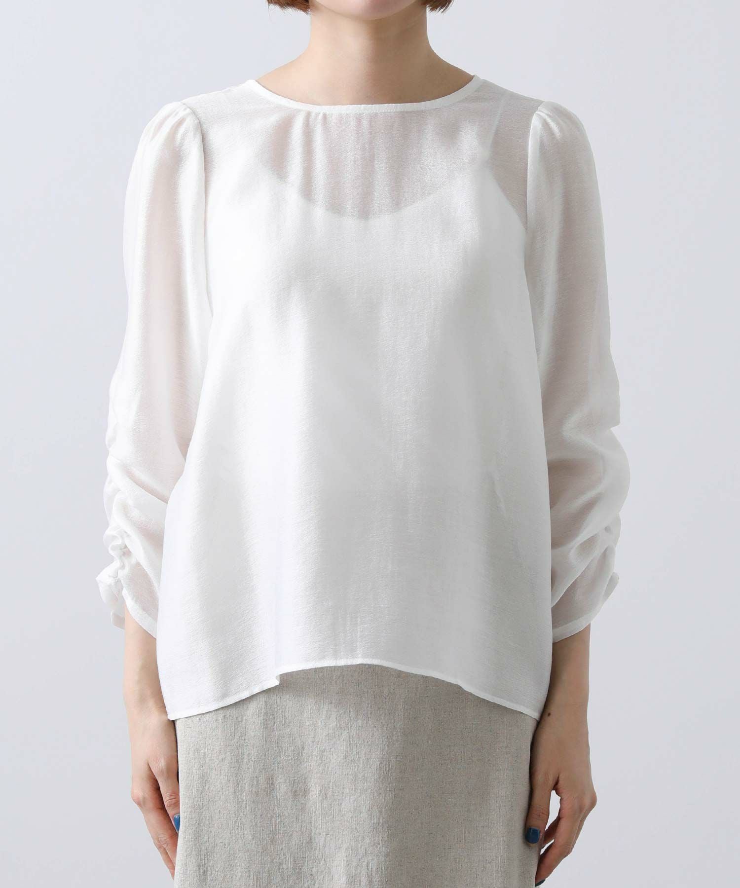 袖ギャザーは大げさ過ぎず、さり気ない可愛らしさをプラスし、1枚でもキャミワンピやサロペットのインナーにもおすすめ◎