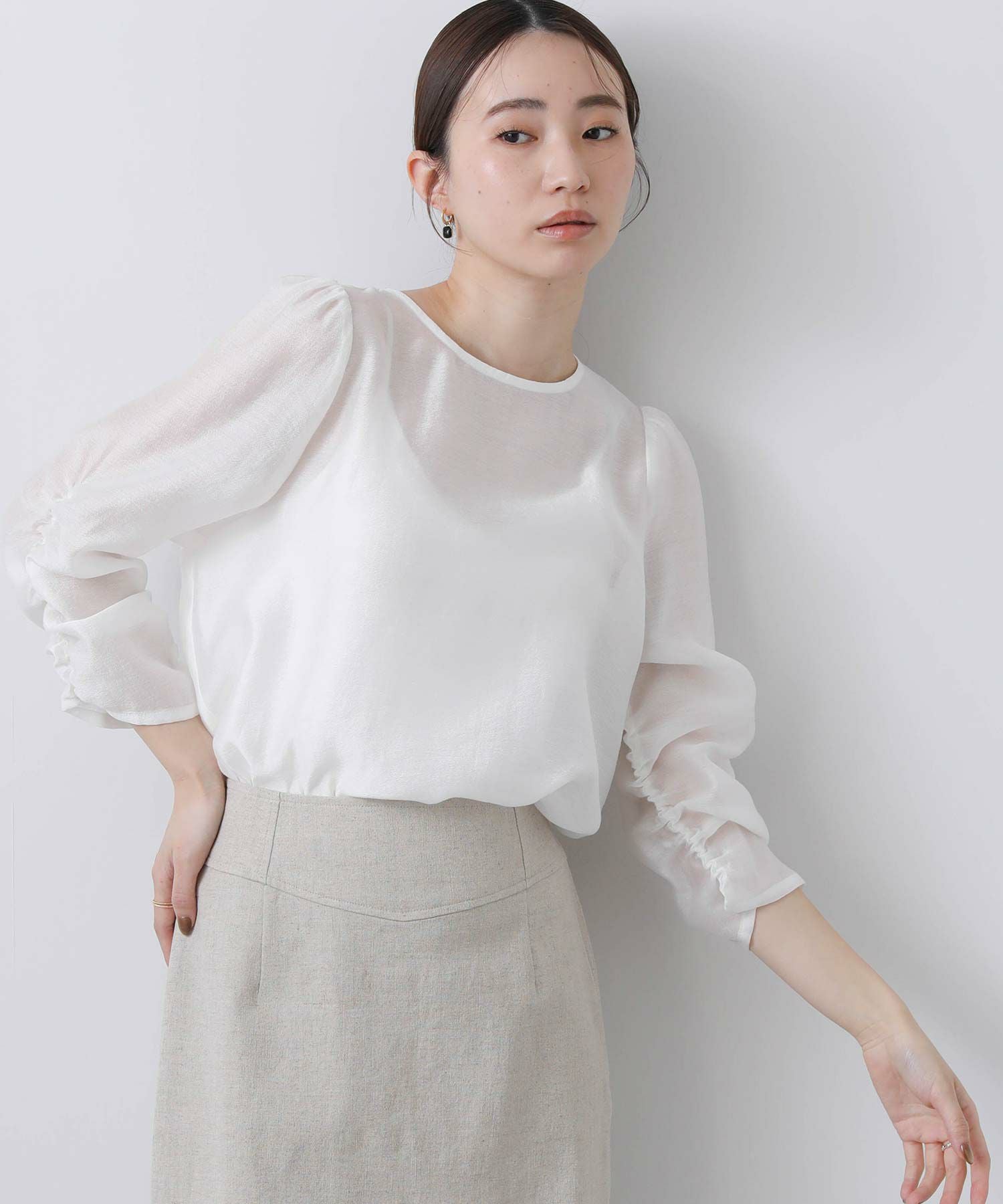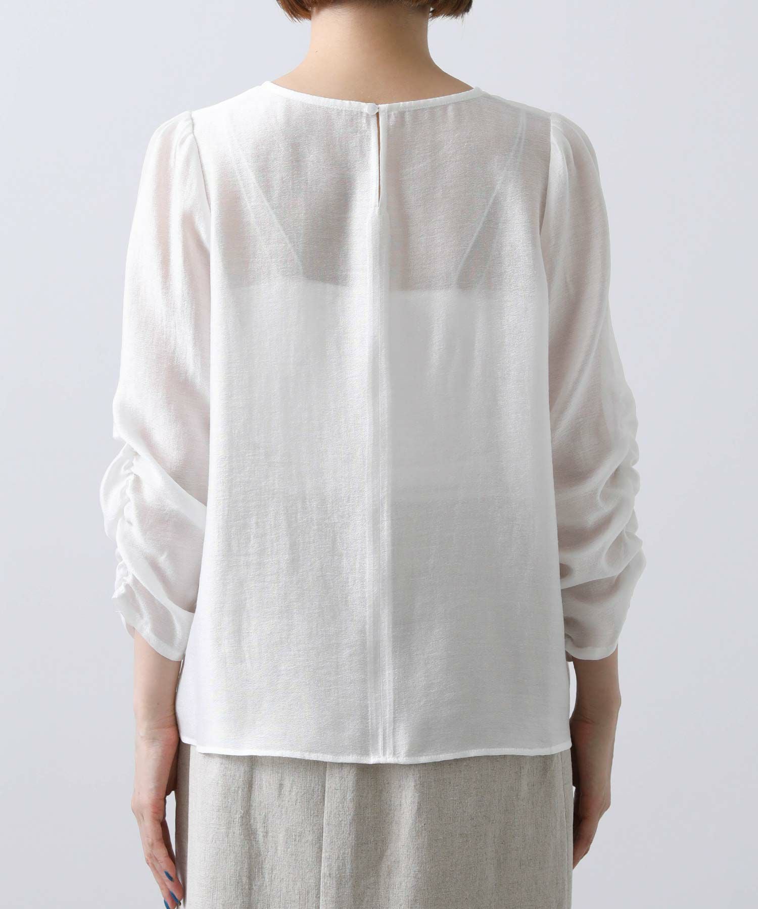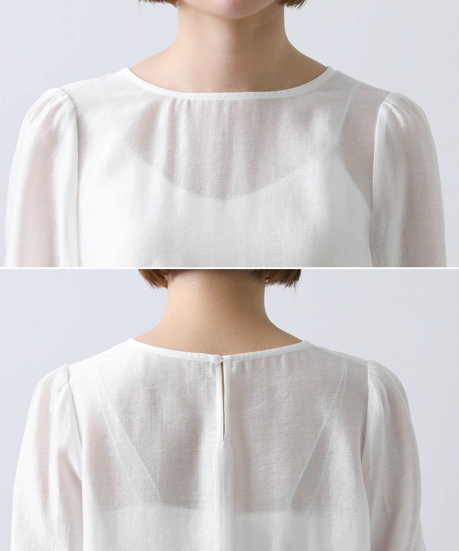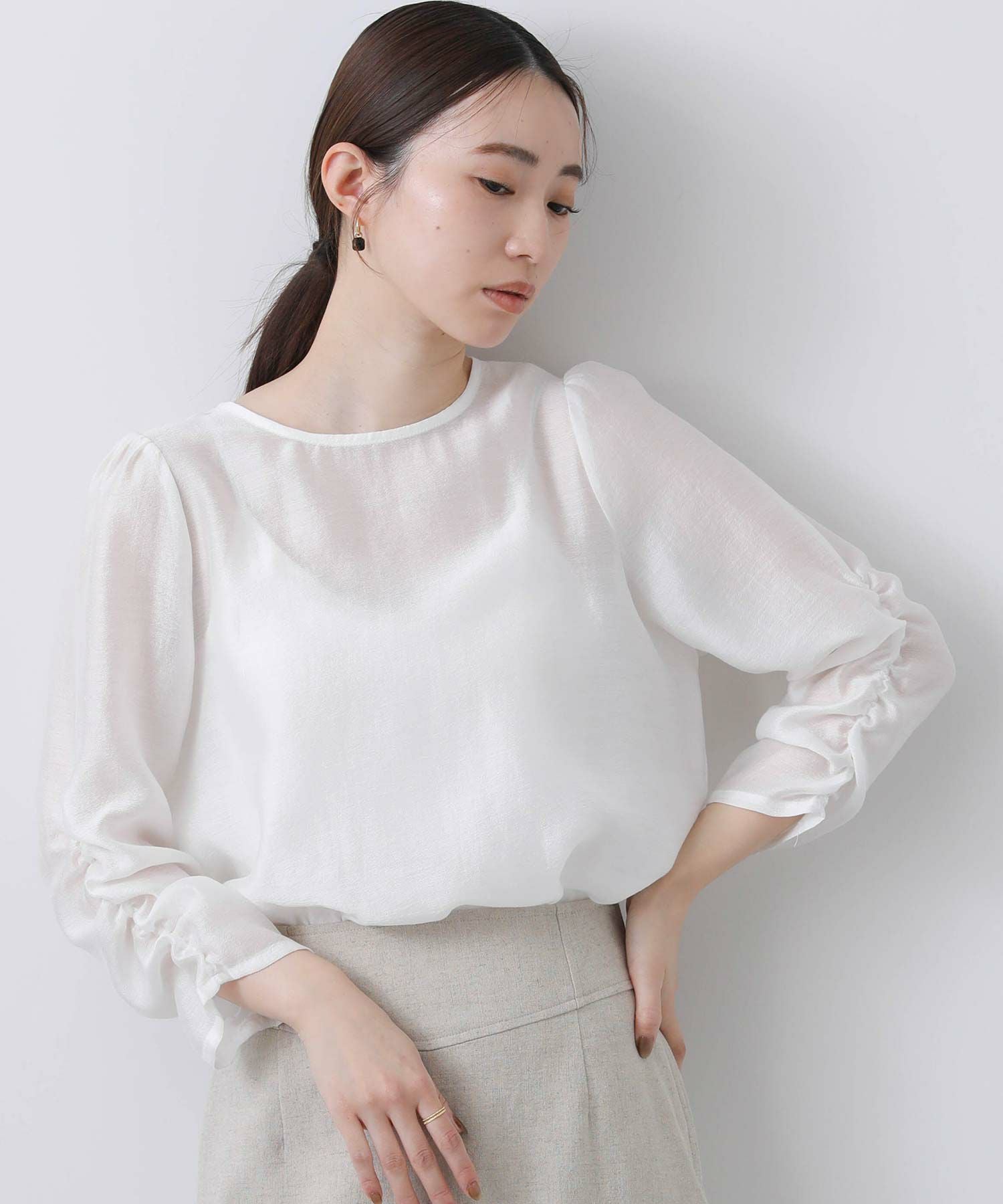 袖ギャザーは大げさ過ぎず、さり気ない可愛らしさをプラスし、1枚でもキャミワンピやサロペットのインナーにもおすすめ◎
