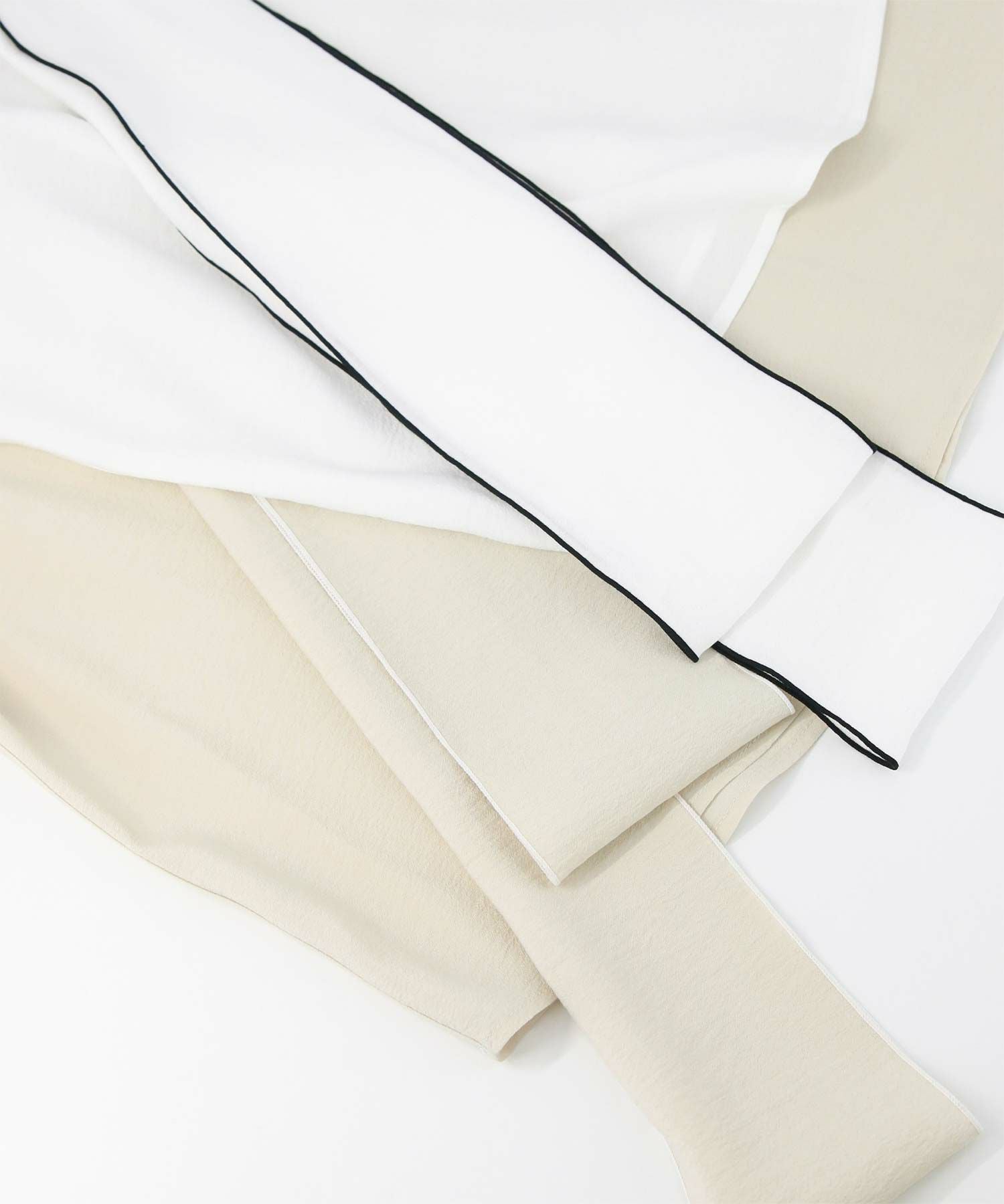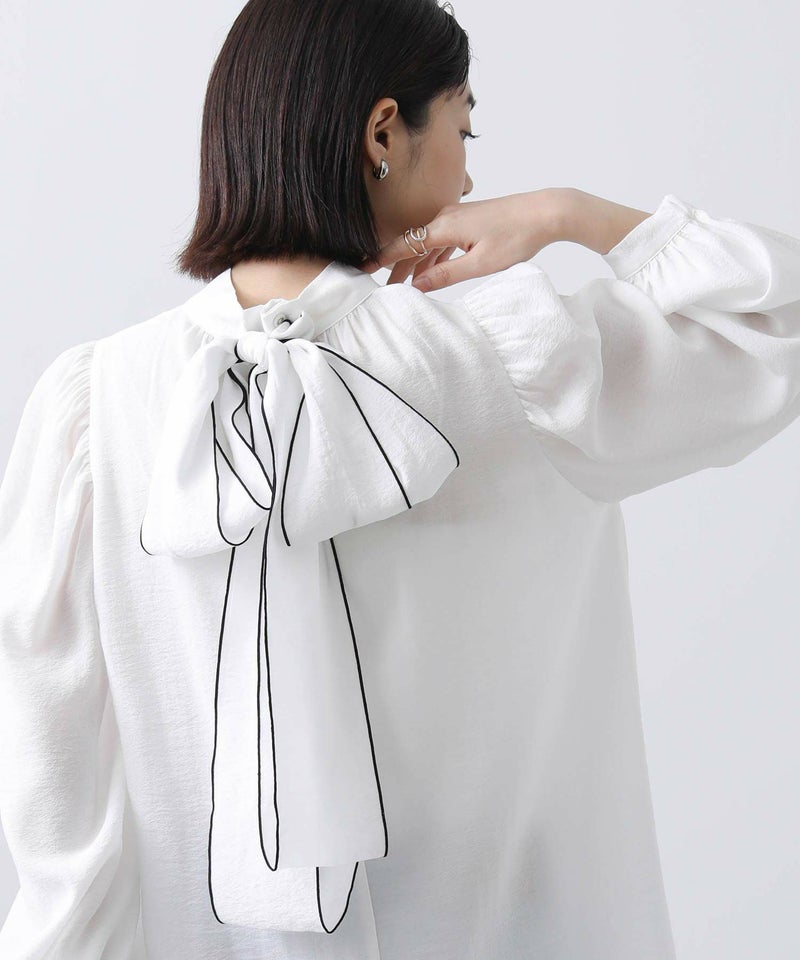 春らしいシアーの風合いが軽やかなリボンブラウス。