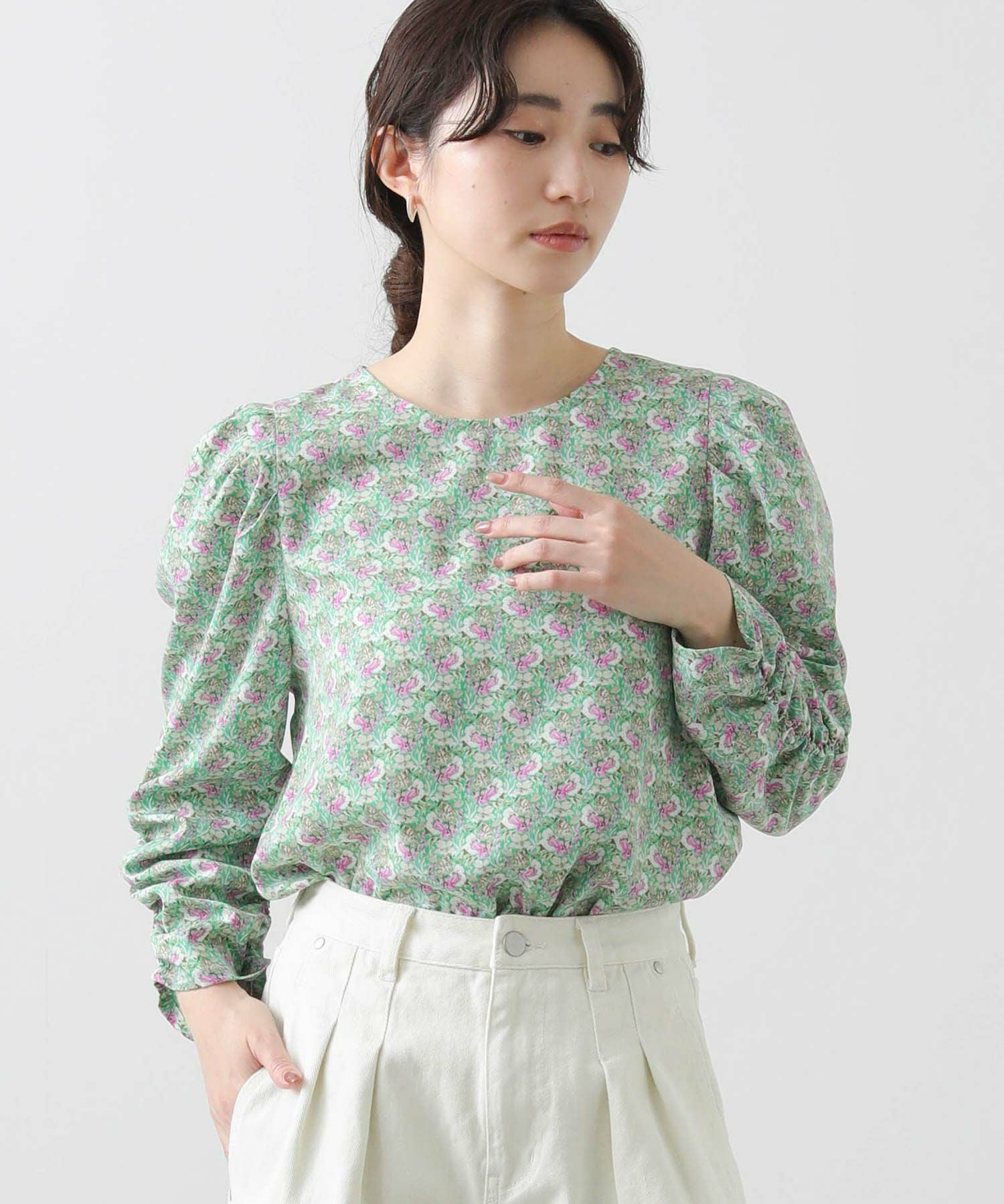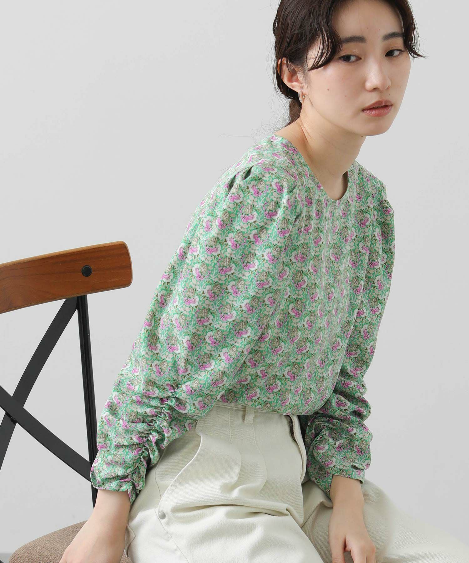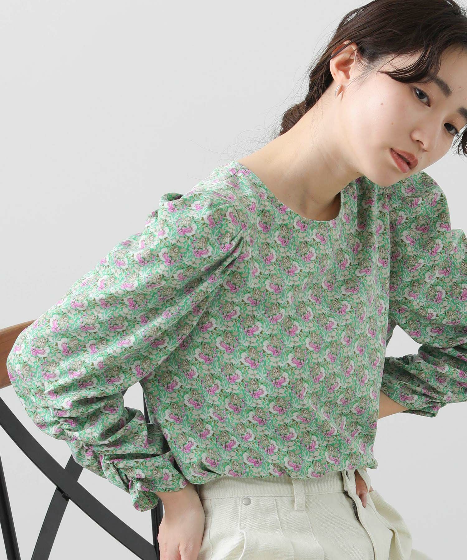 軽やかな春気分高まるフラワープリントブラウス。