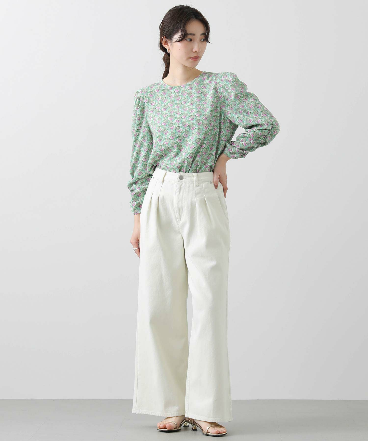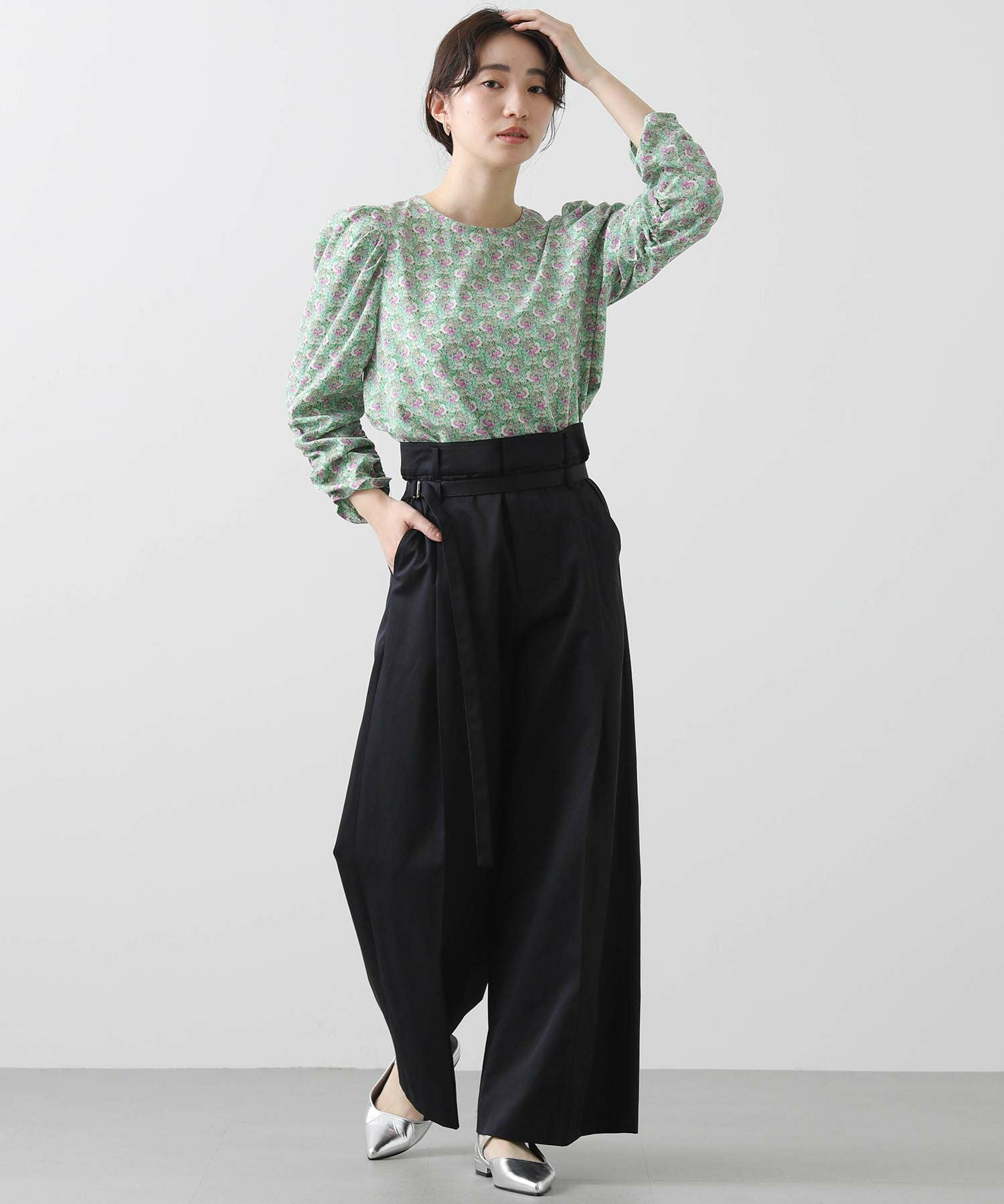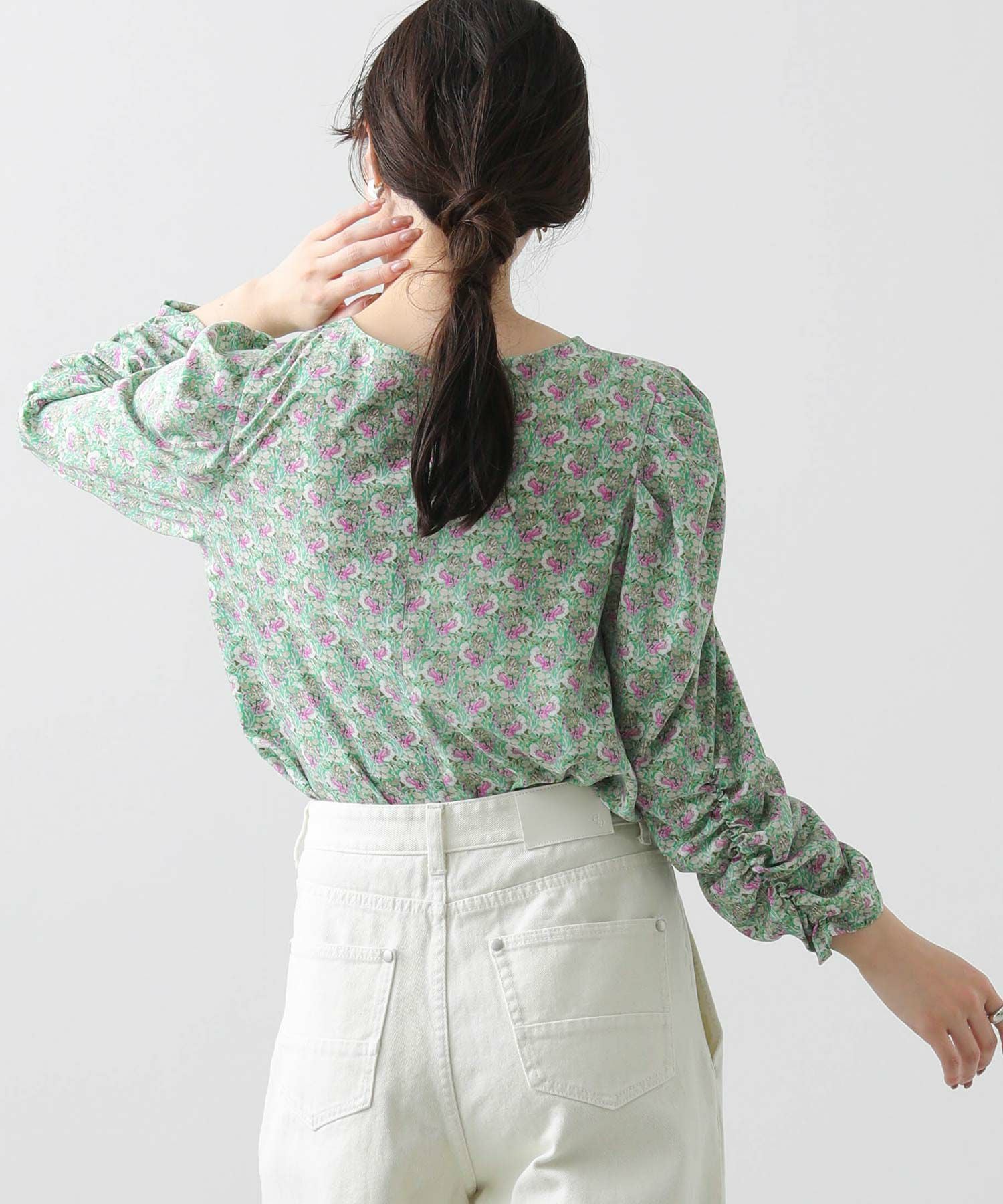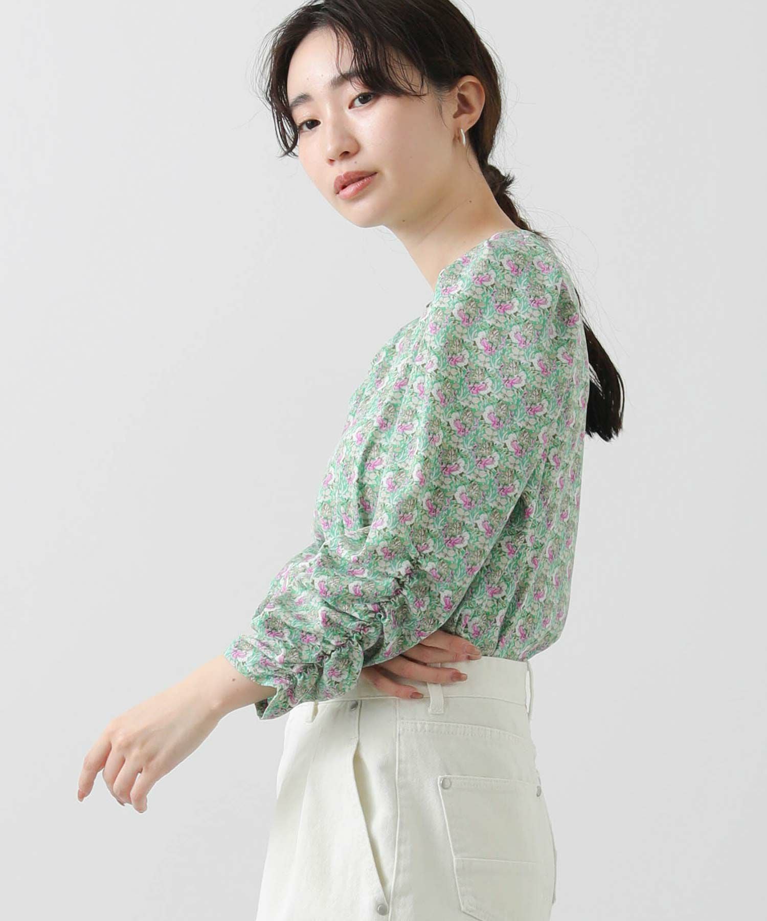 軽やかな春気分高まるフラワープリントブラウス。