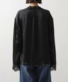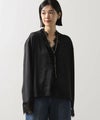 シルクのようななめらかな手ざわりと、自然な落ち感が大人っぽいレース使いブラウス。