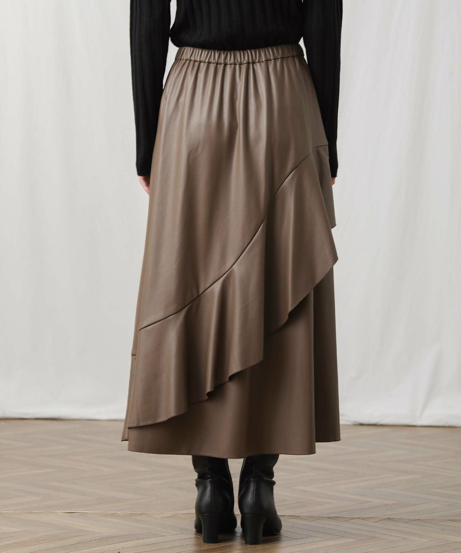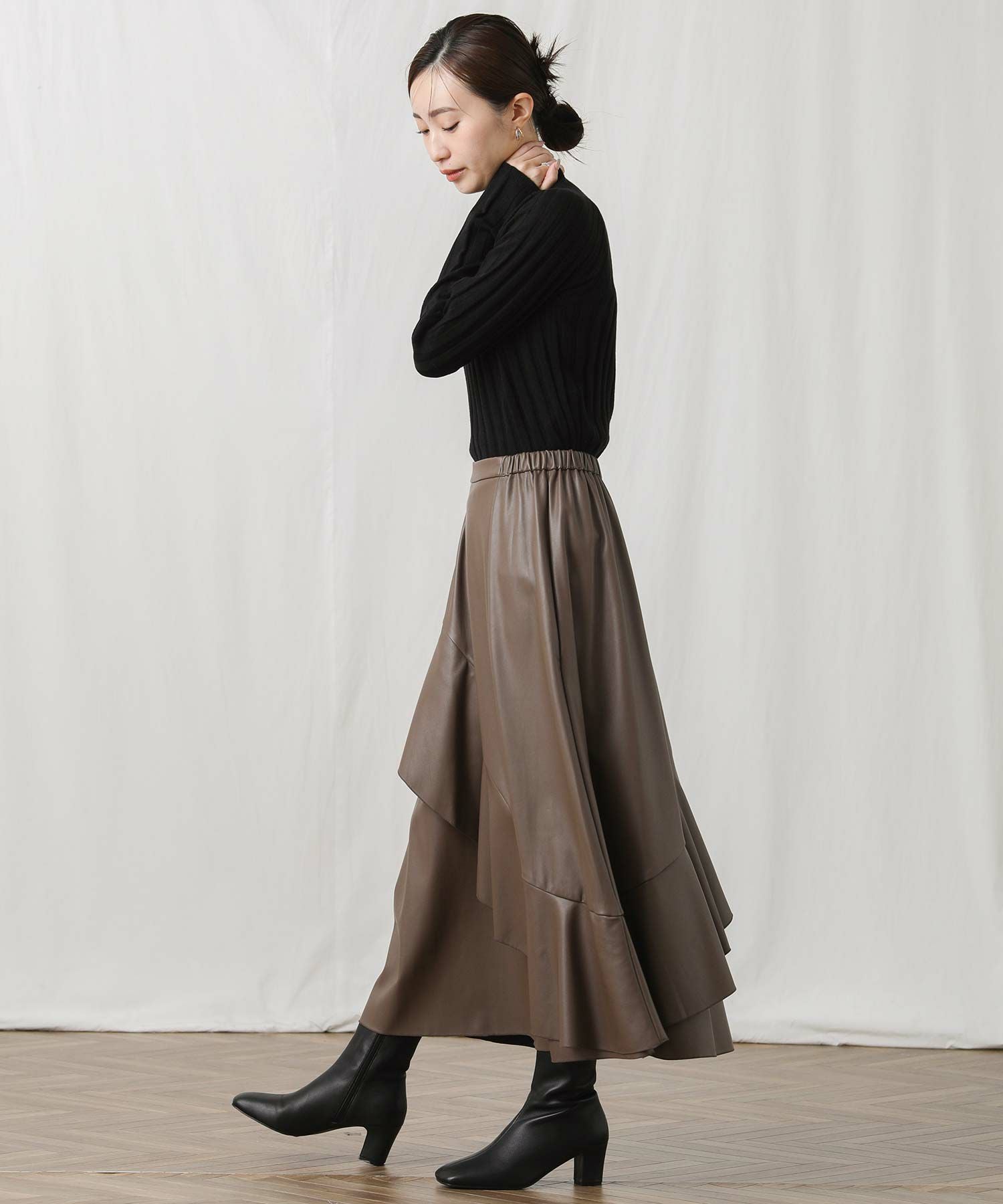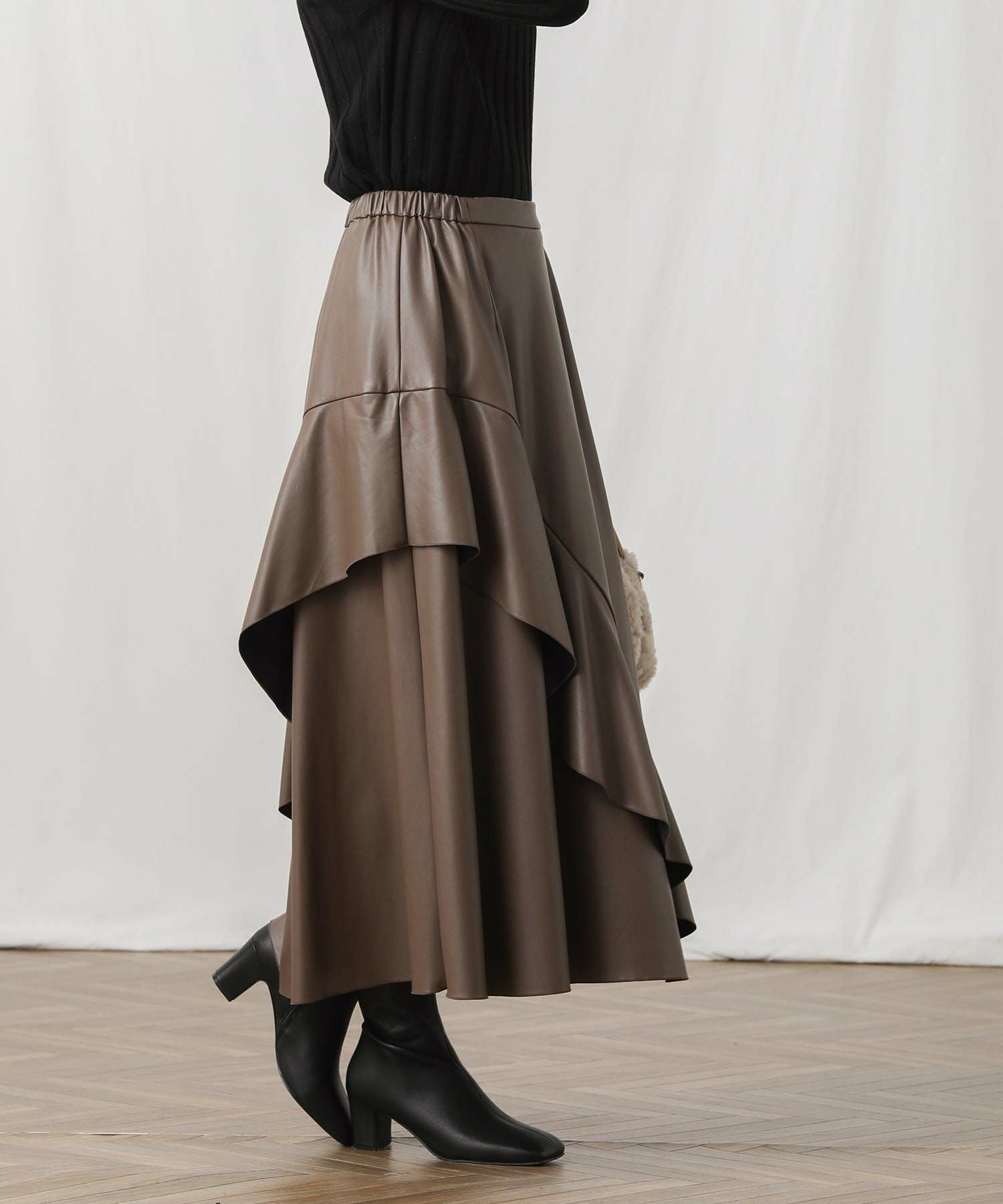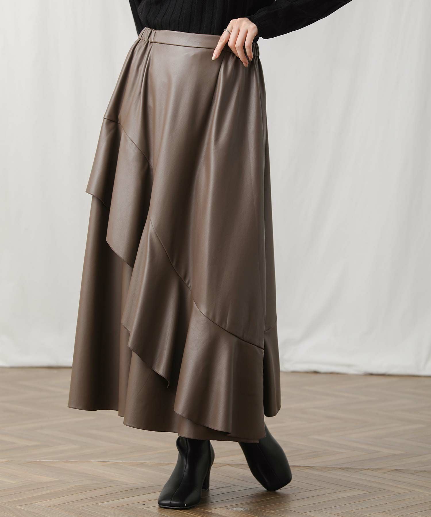アシメのフレアがエレガンスな着こなしを演出します。