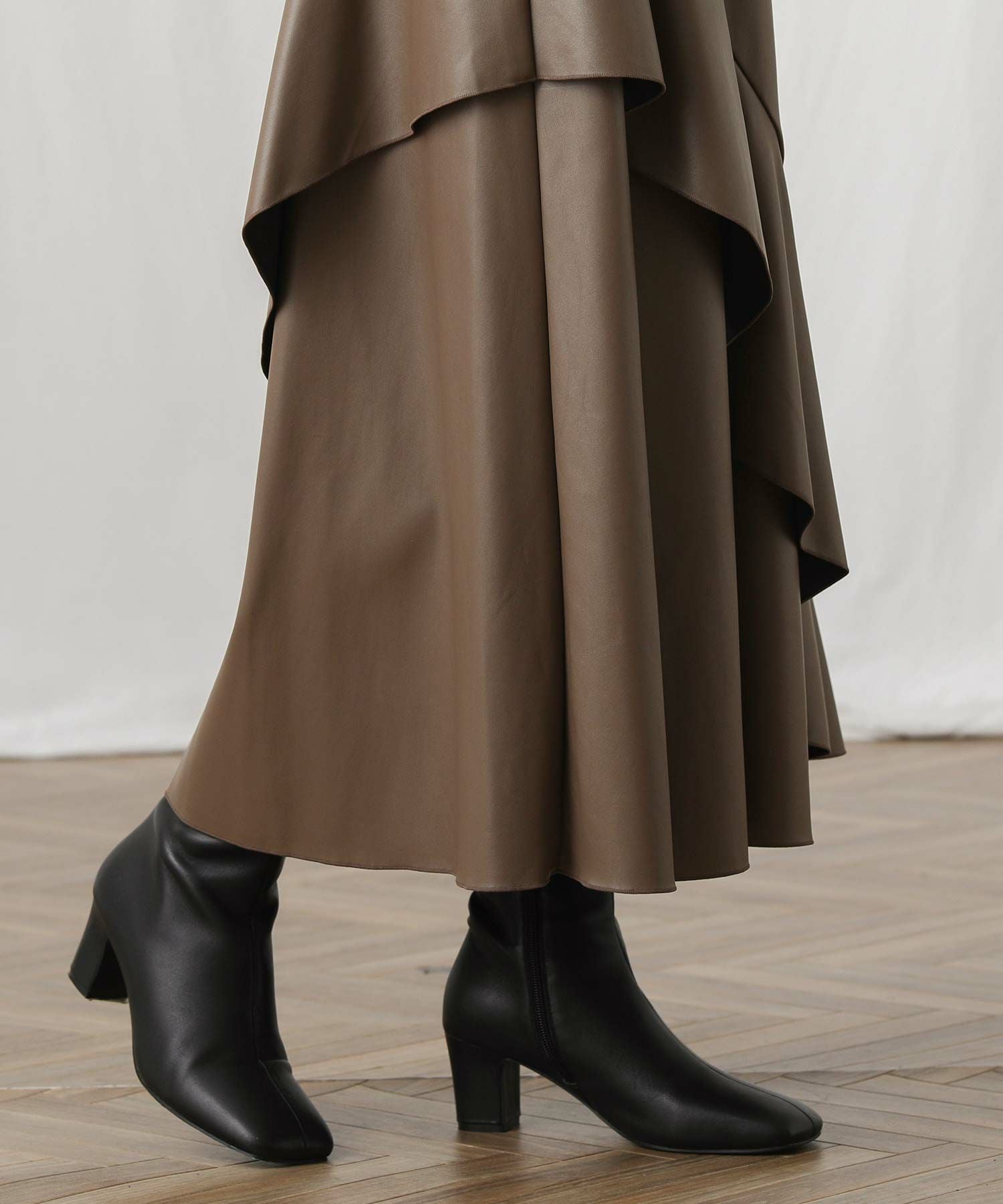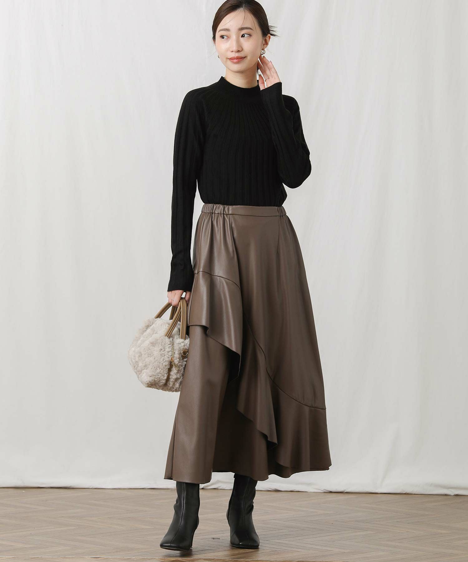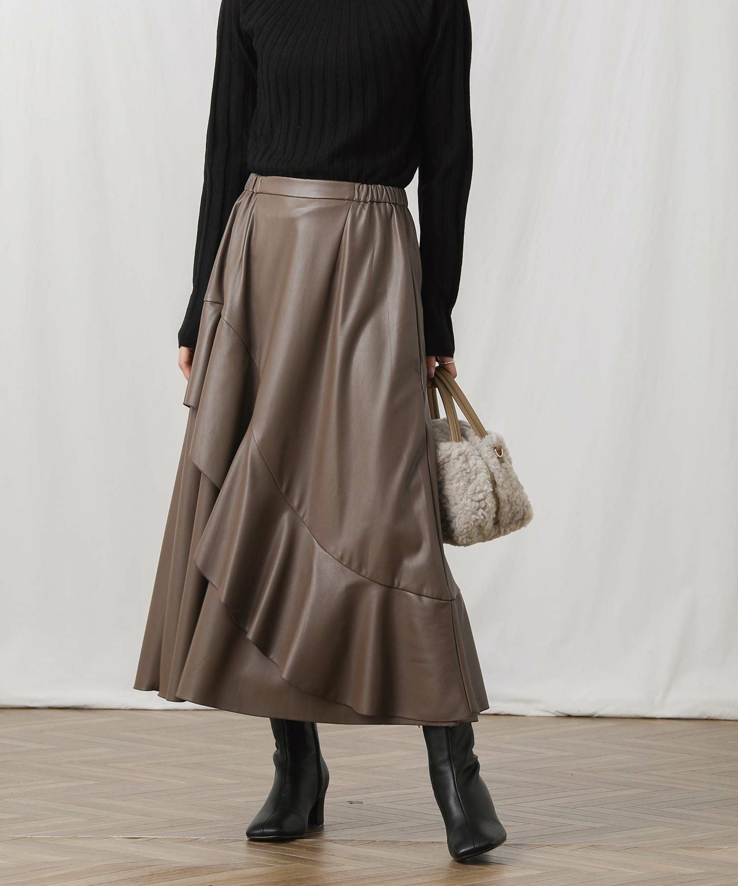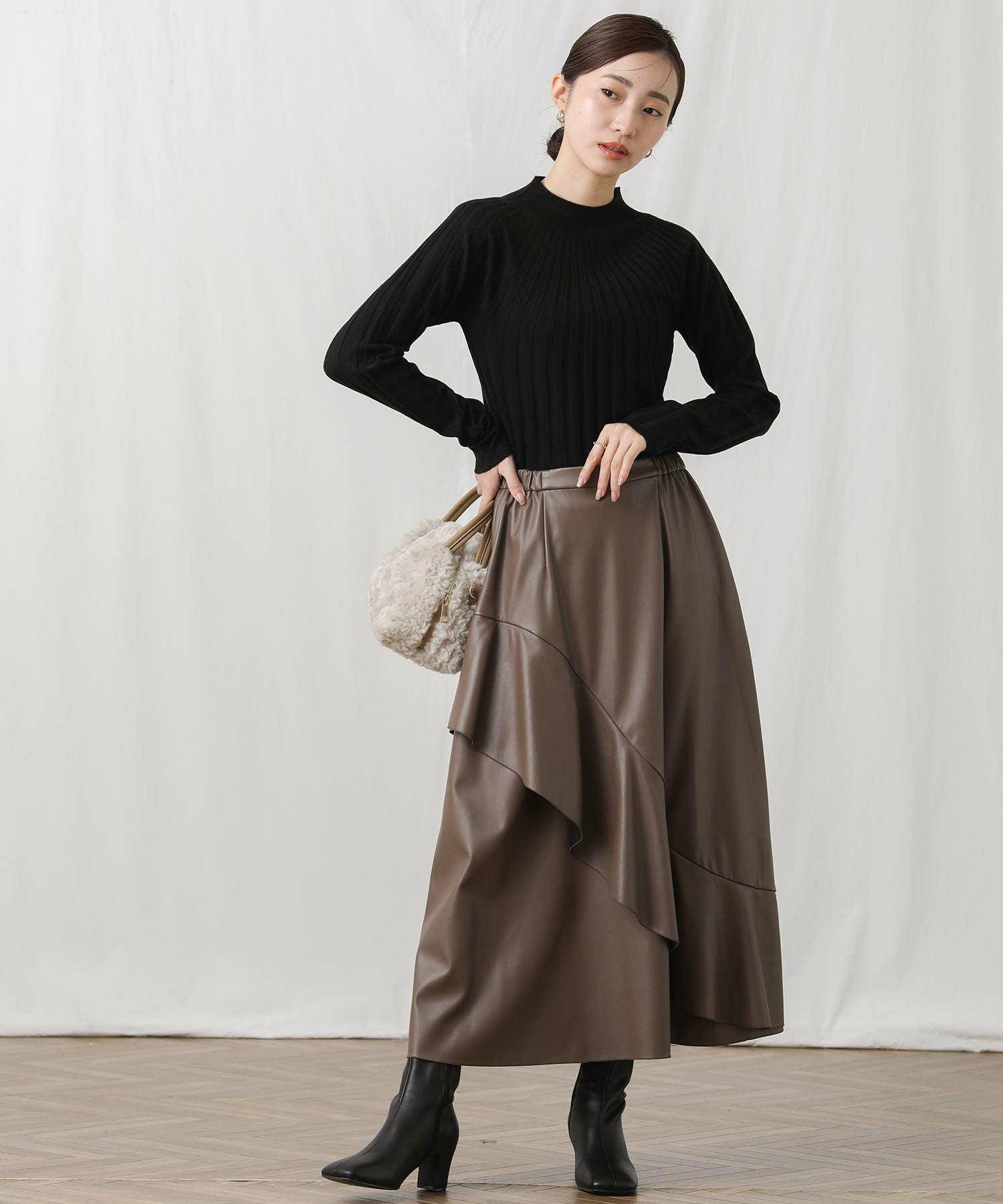アシメのフレアがエレガンスな着こなしを演出します。