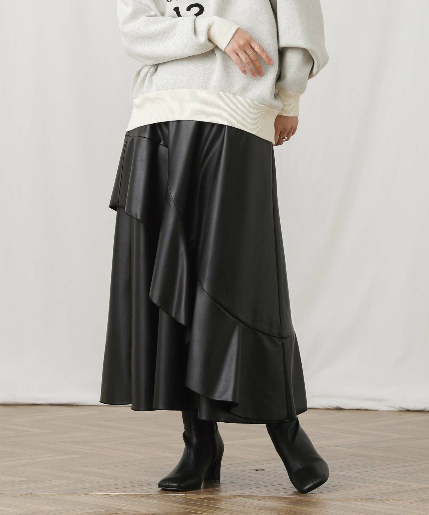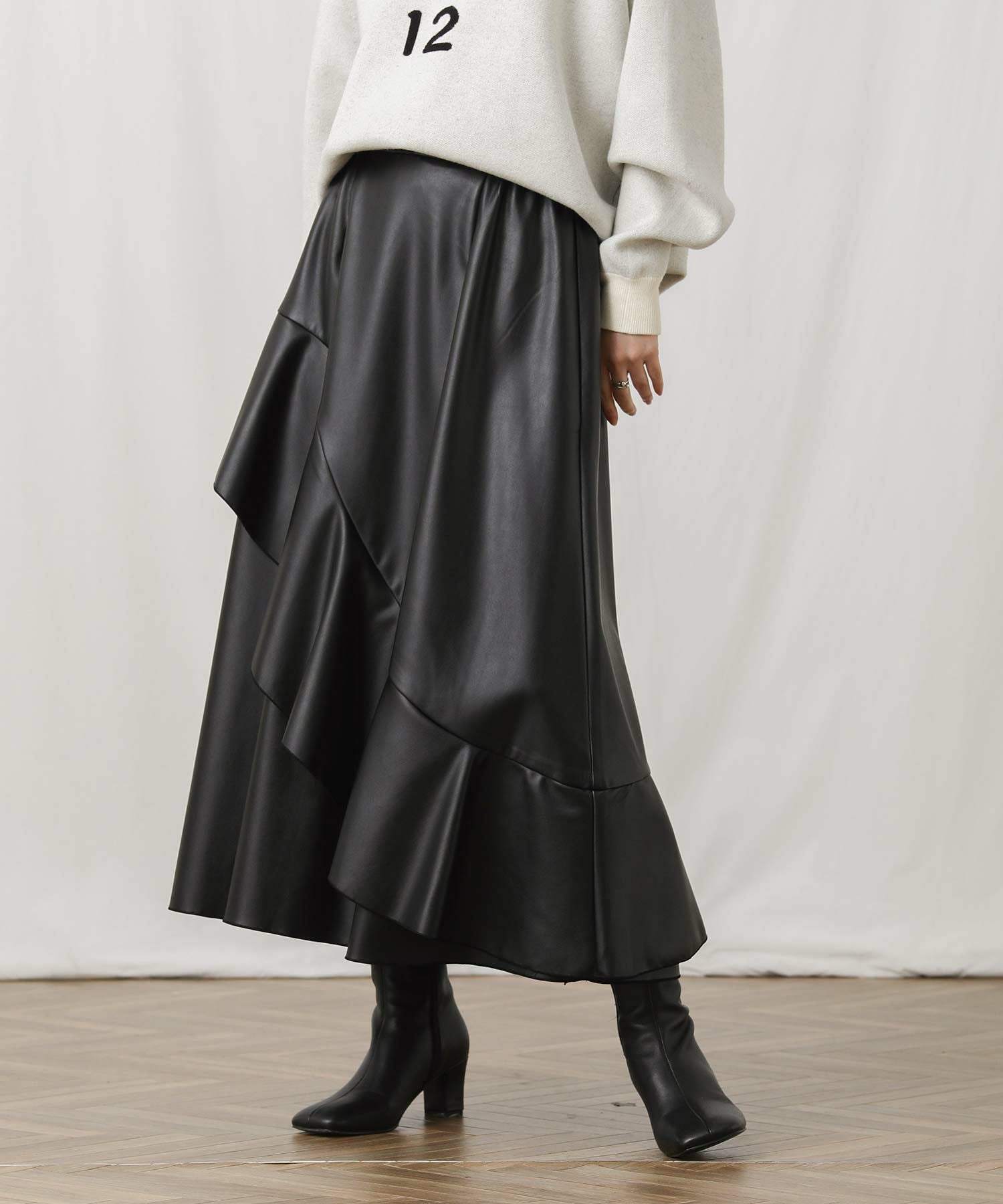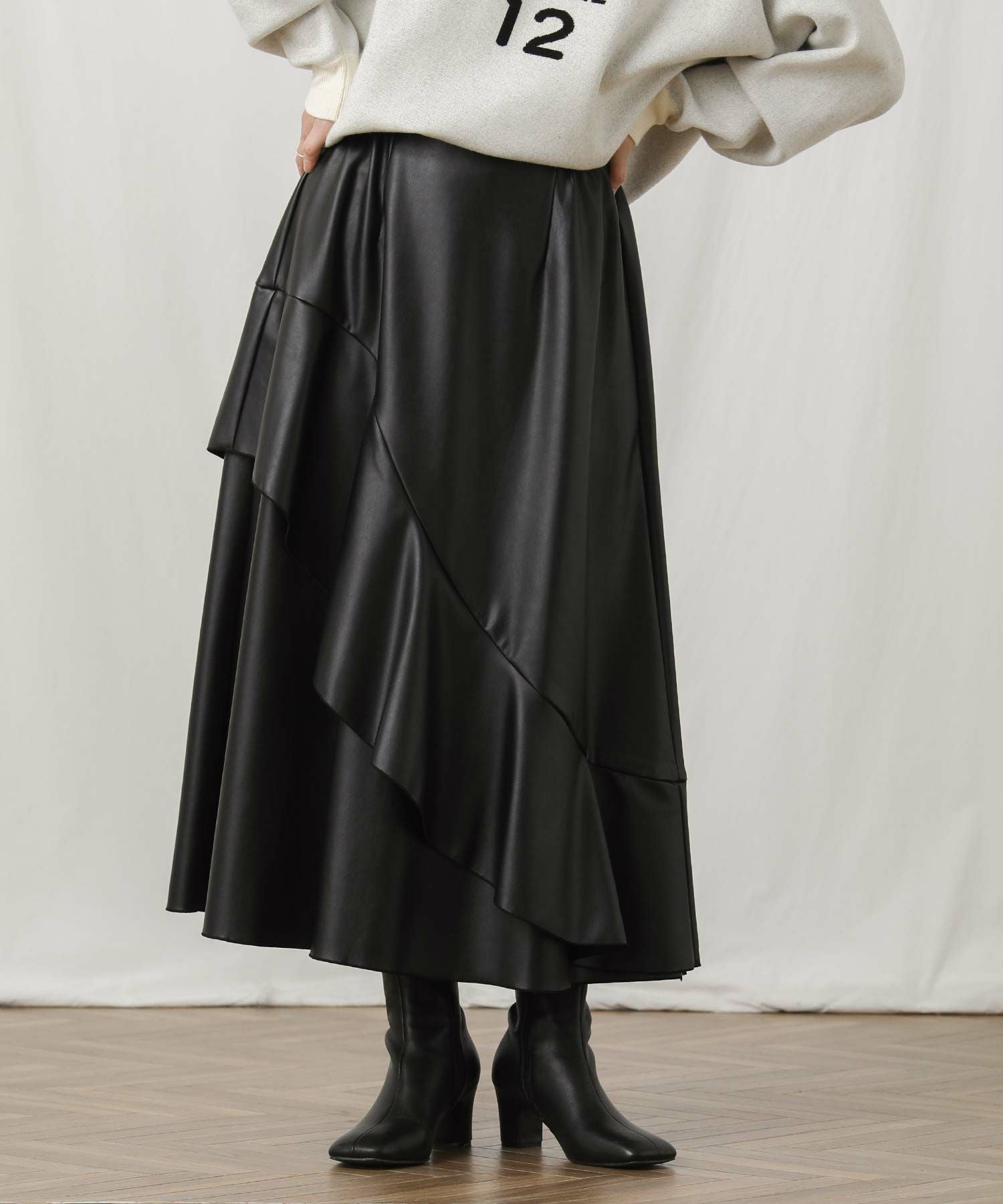 アシメのデザインが目を引く主役級のスカート。