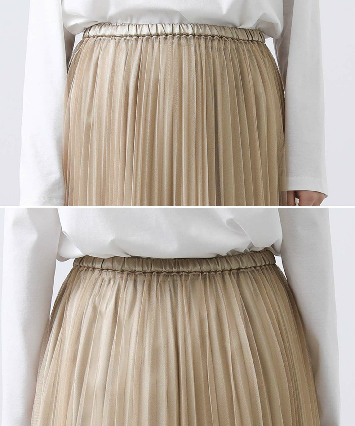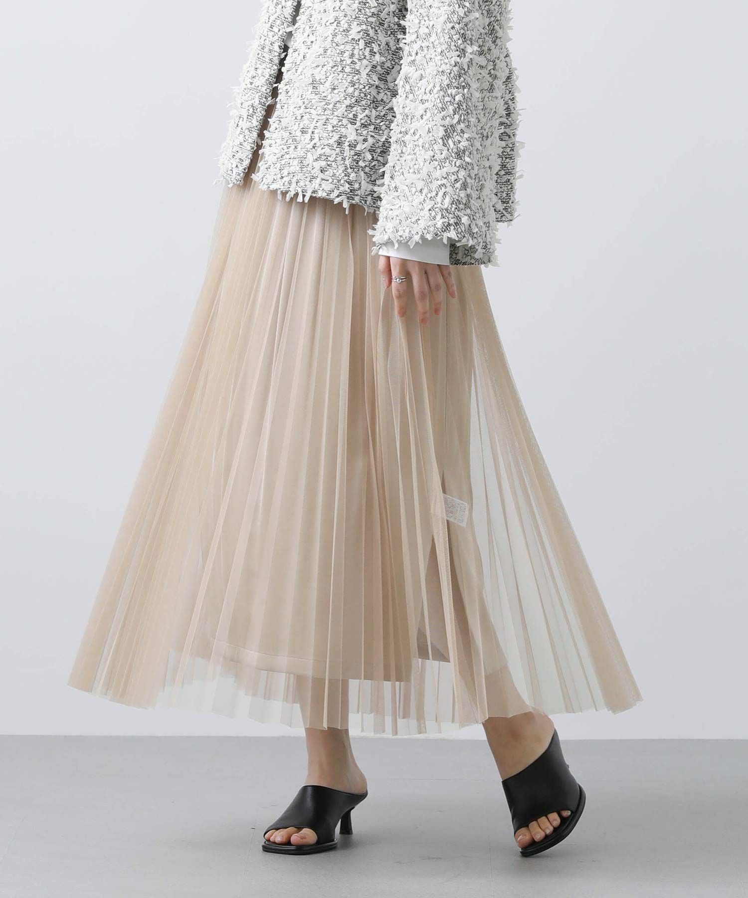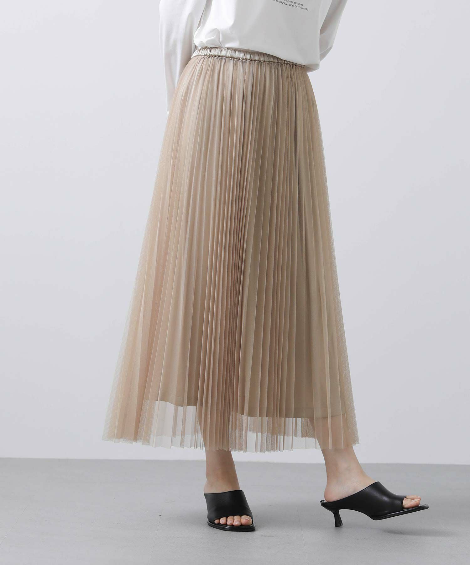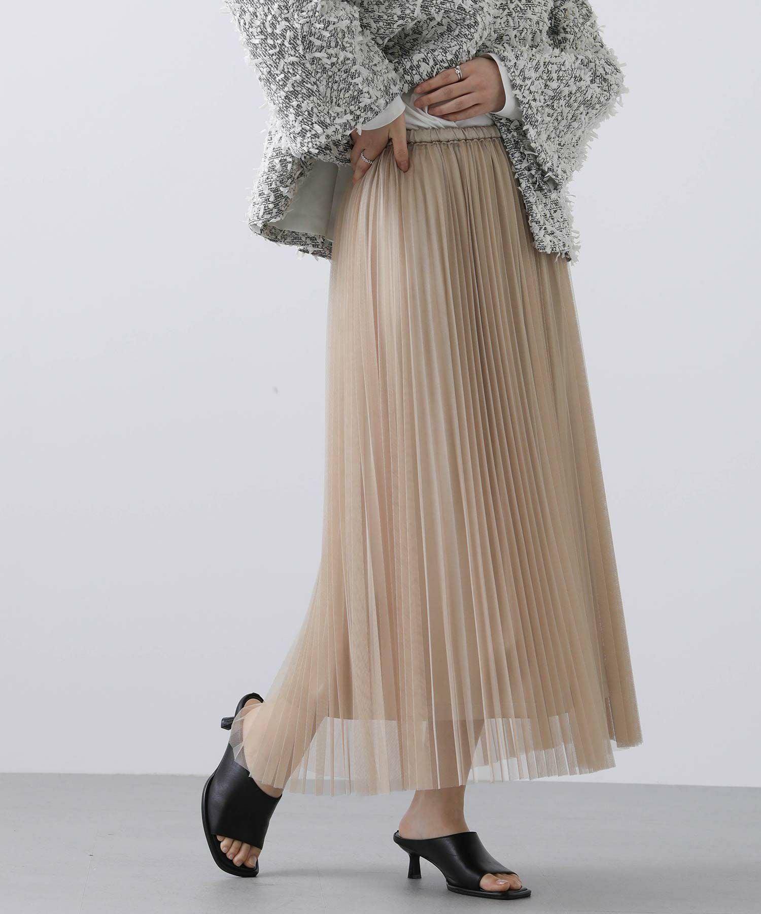 エアリーに透けるチュールが可愛いプリーツスカート。