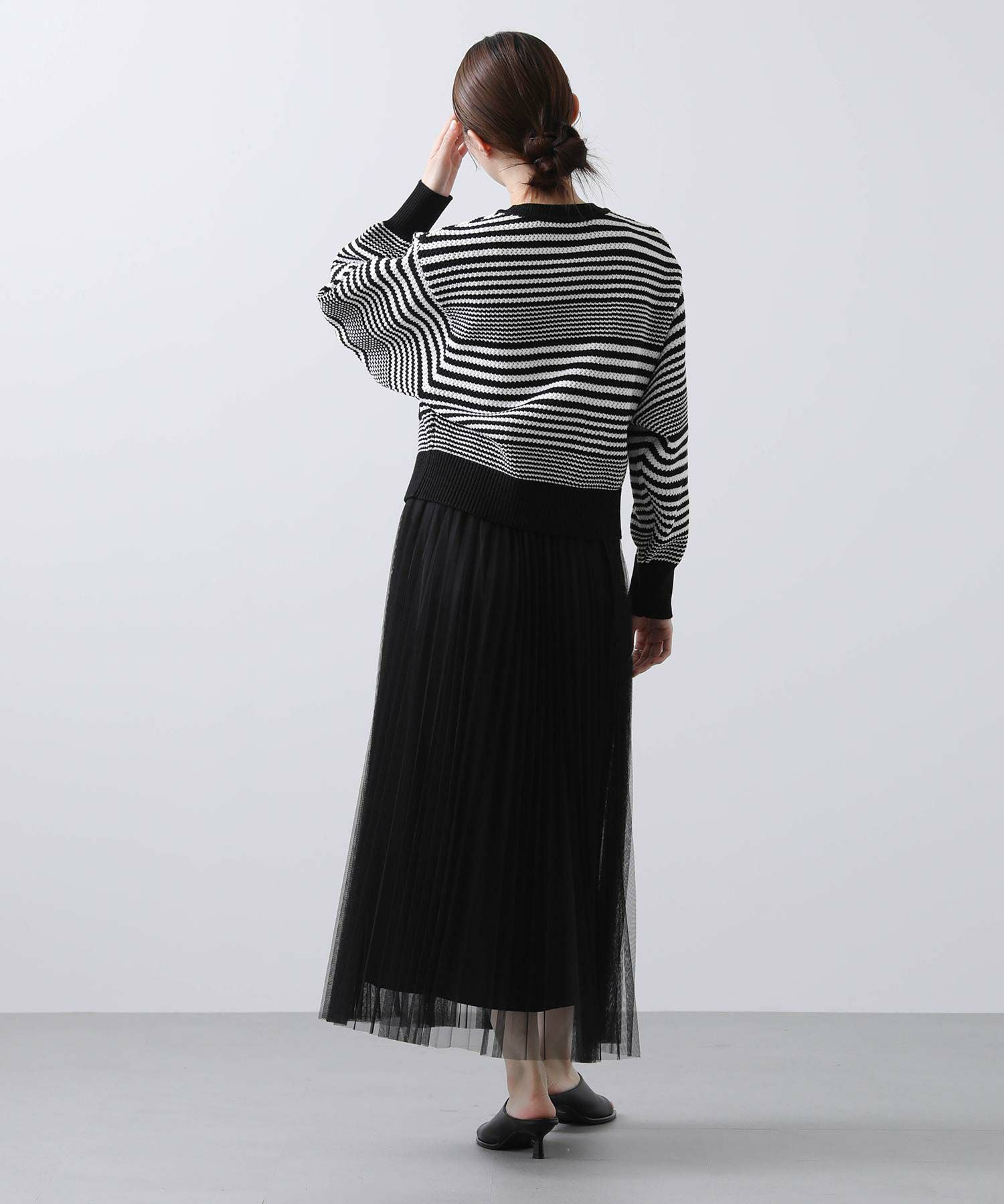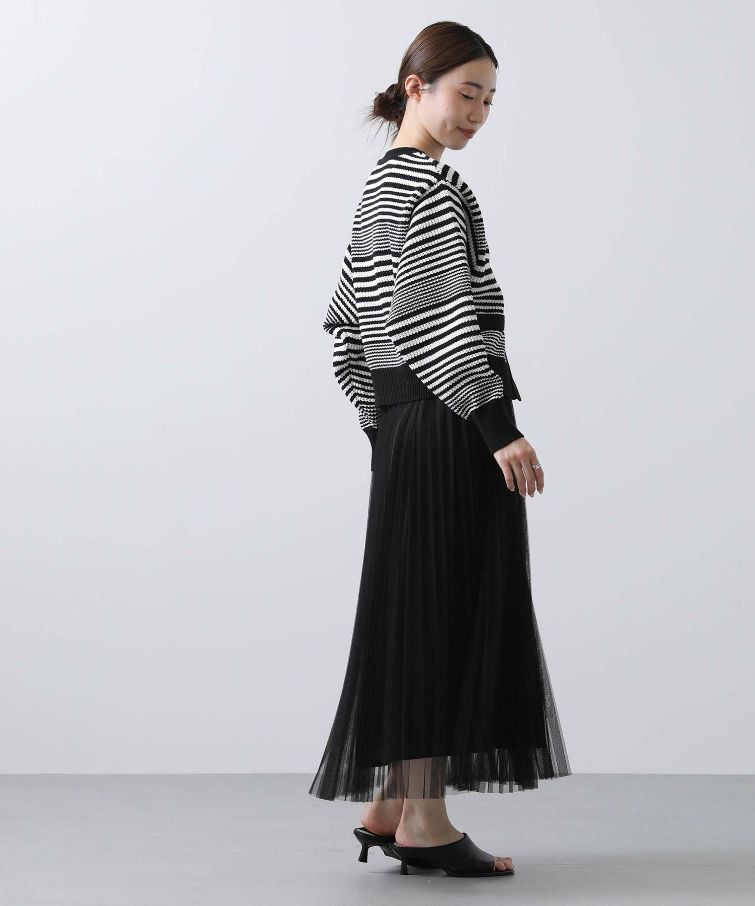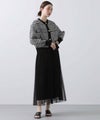 チュールプリーツとサテンタイトスカートをセットにしているので、スカートとしてはもちろん、チュールだけでデニムパンツとレイヤードで着て頂くのが今年らしいオススメのスタイルです。