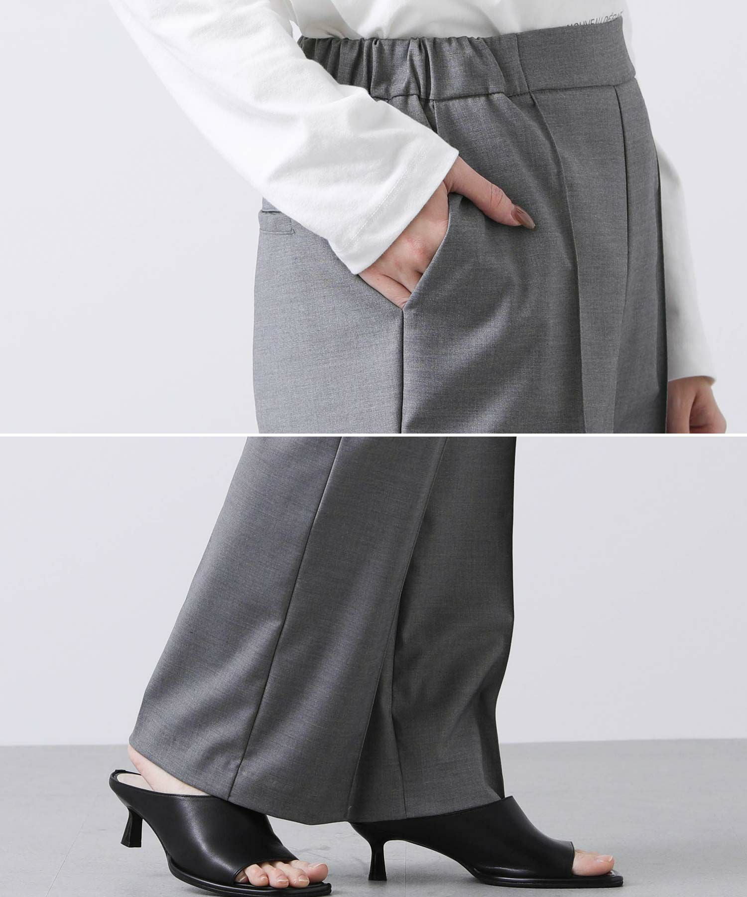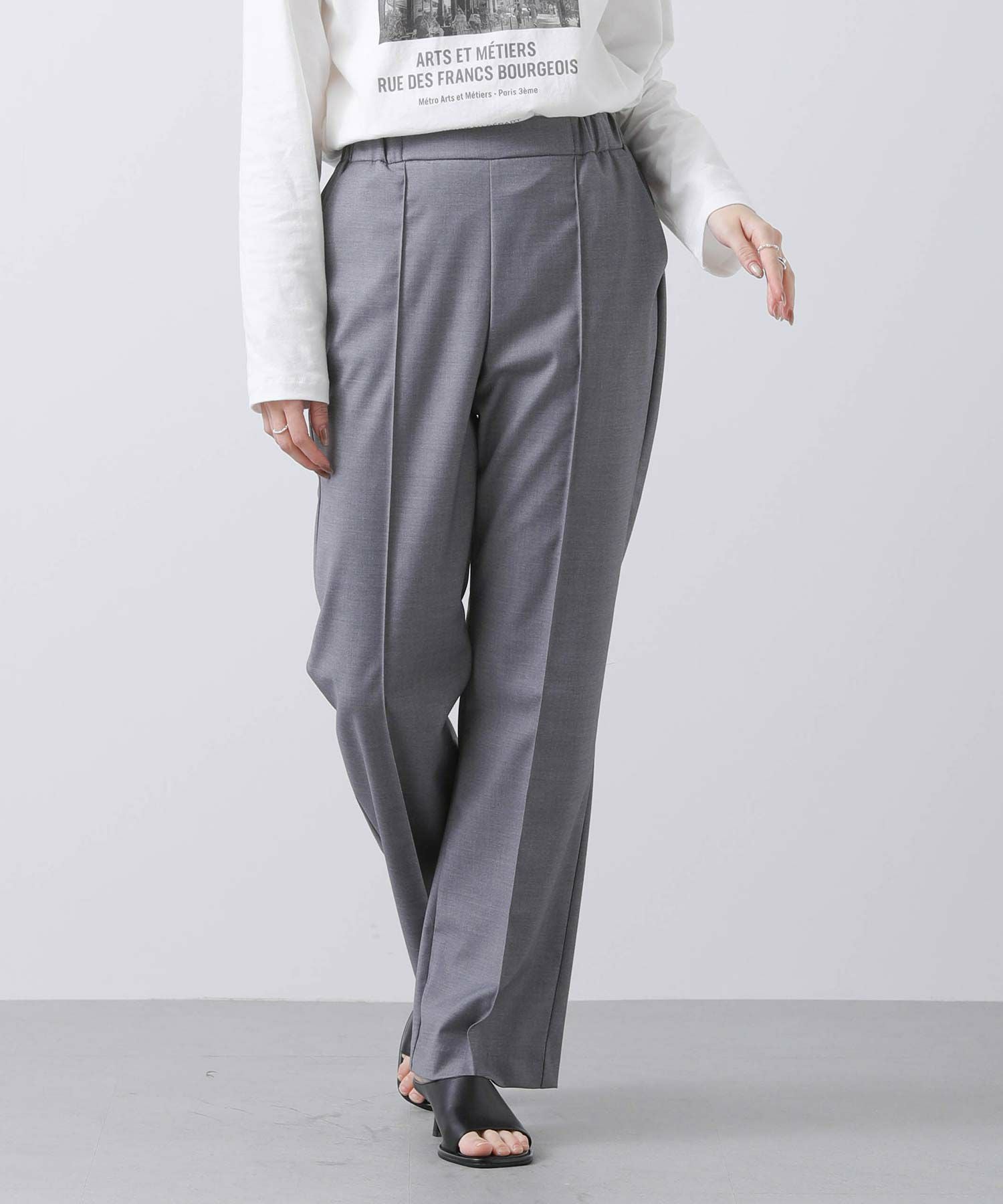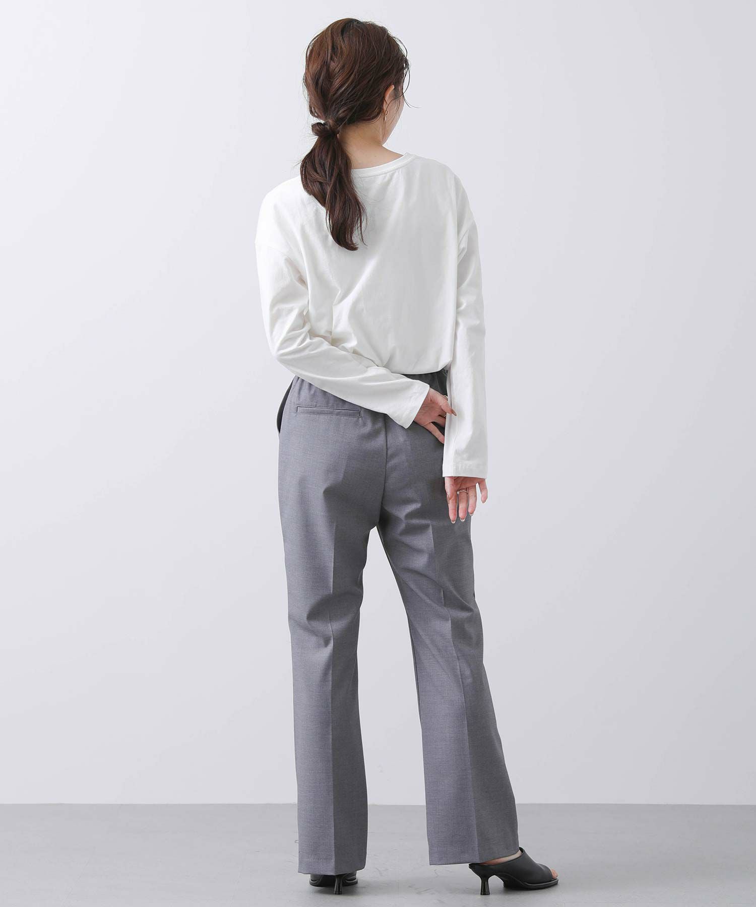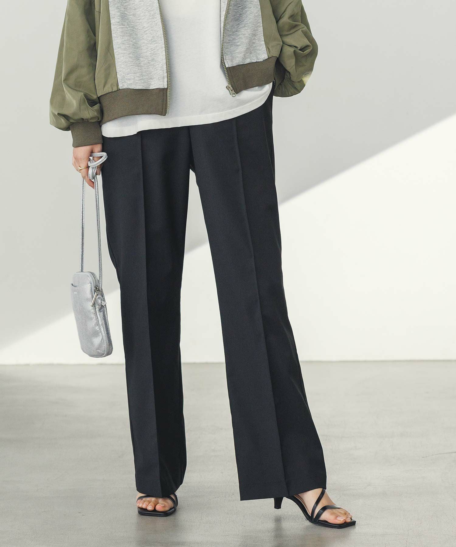 足元はスニーカーからパンプスまで様々なスタイリングとマッチし楽しめる一着。