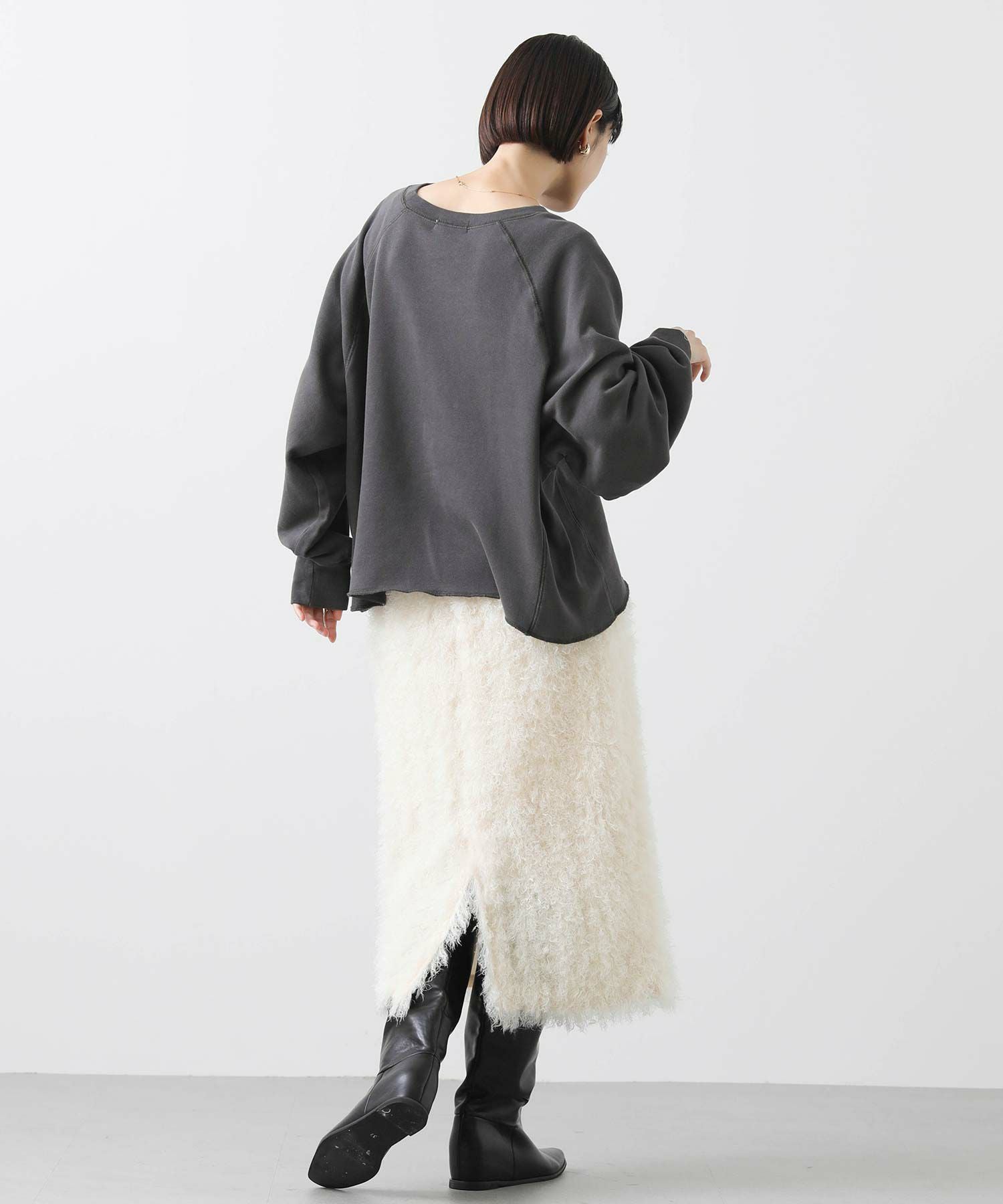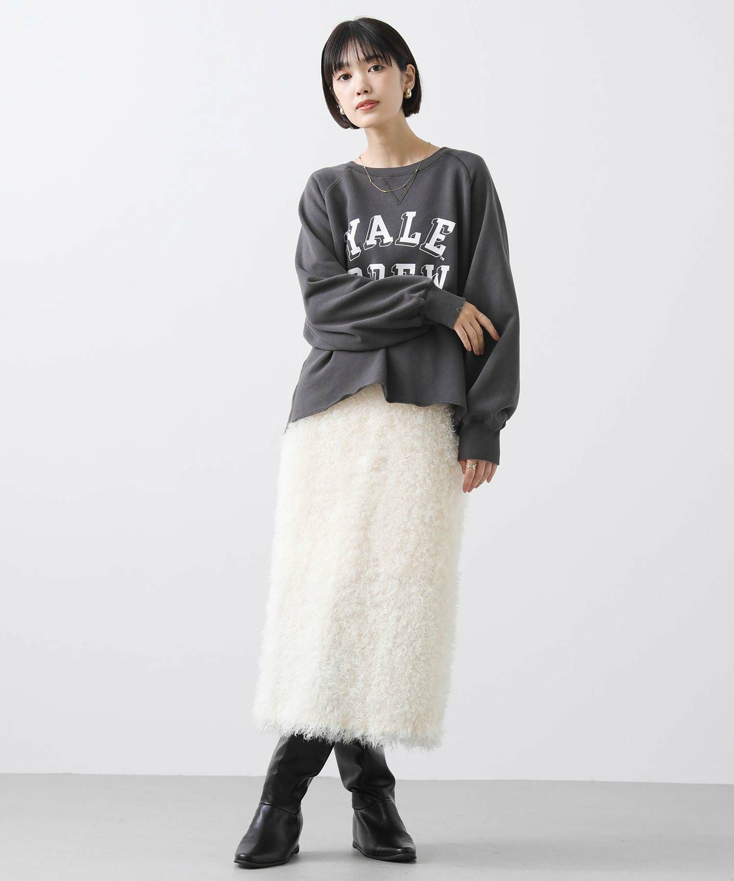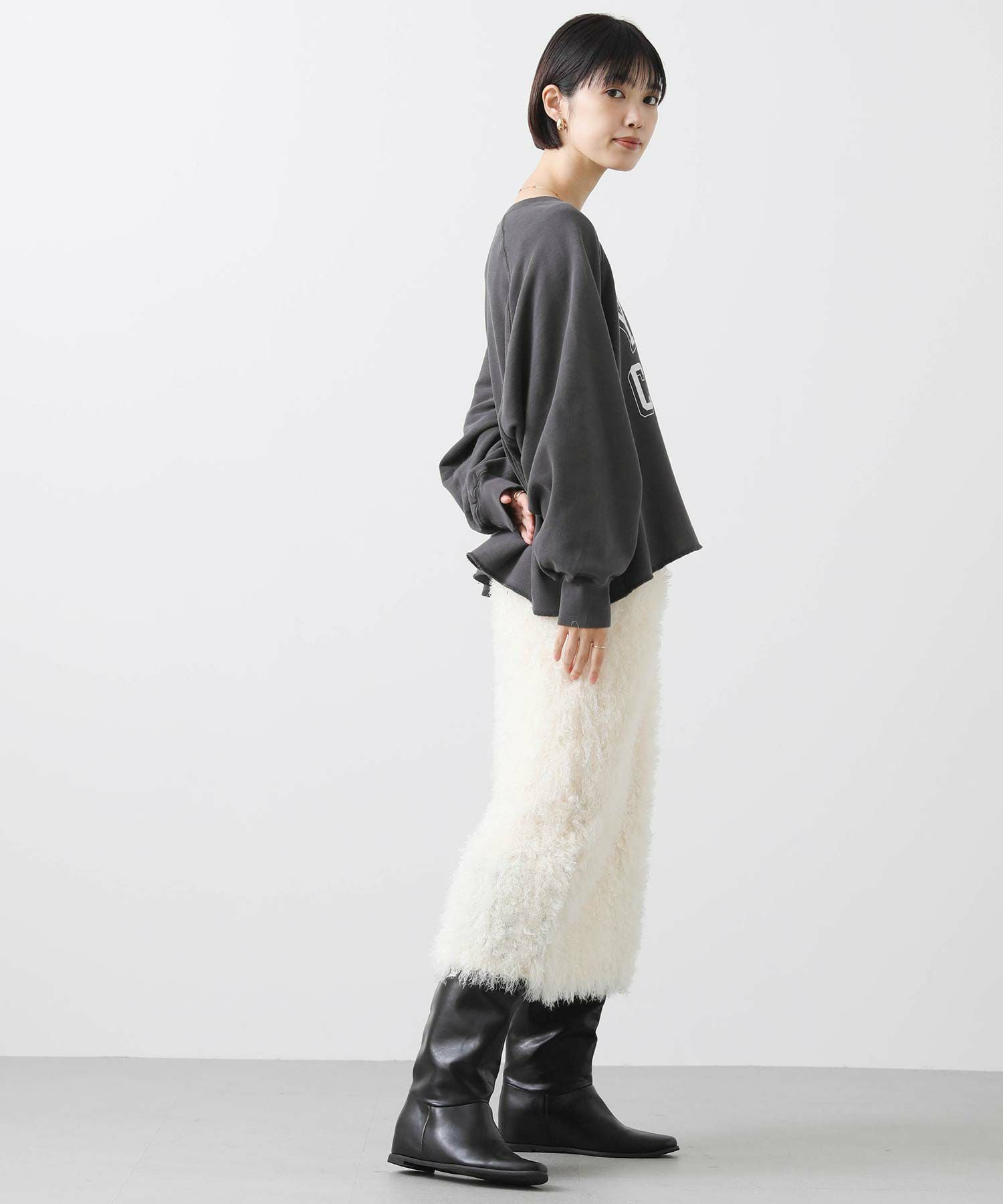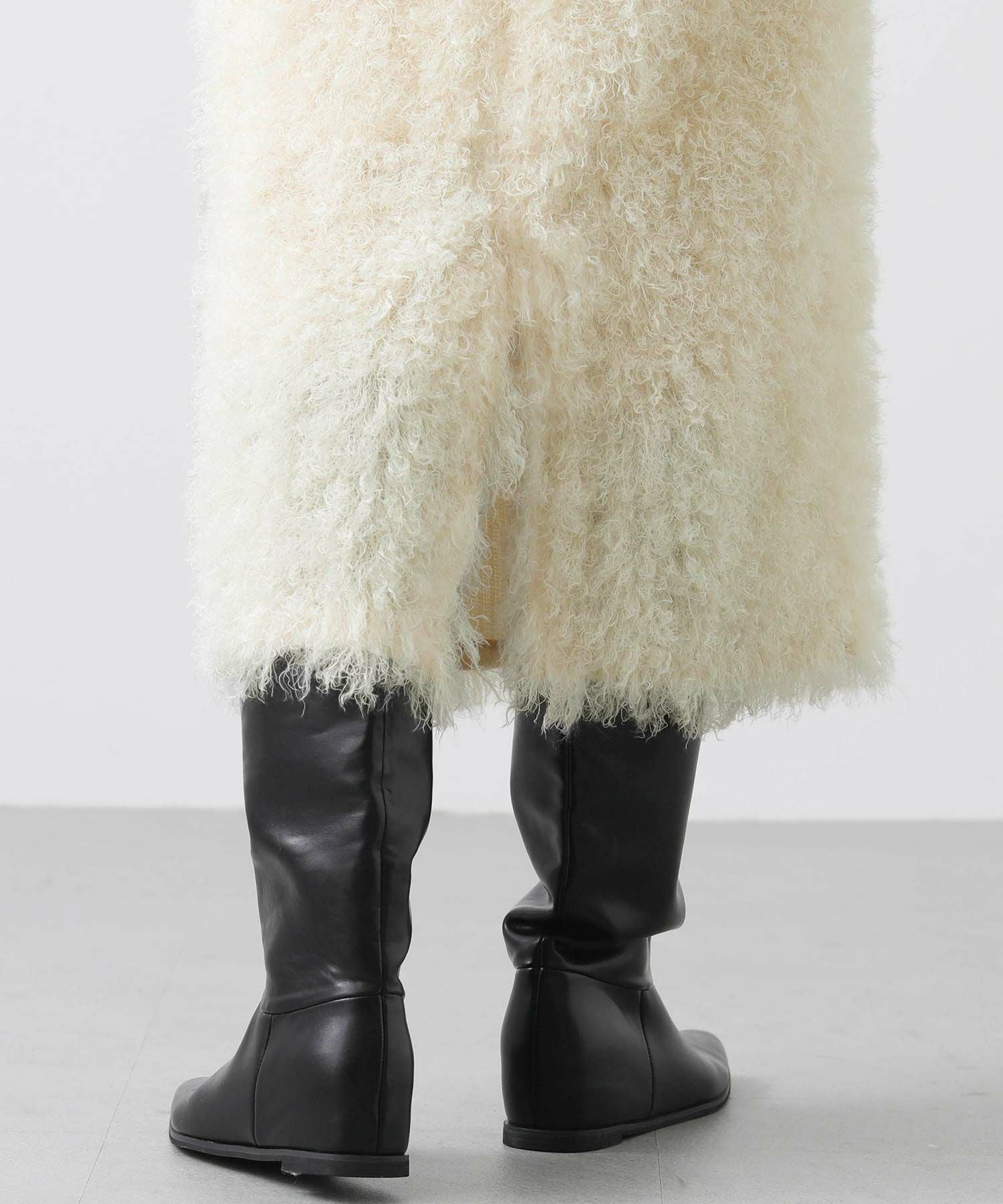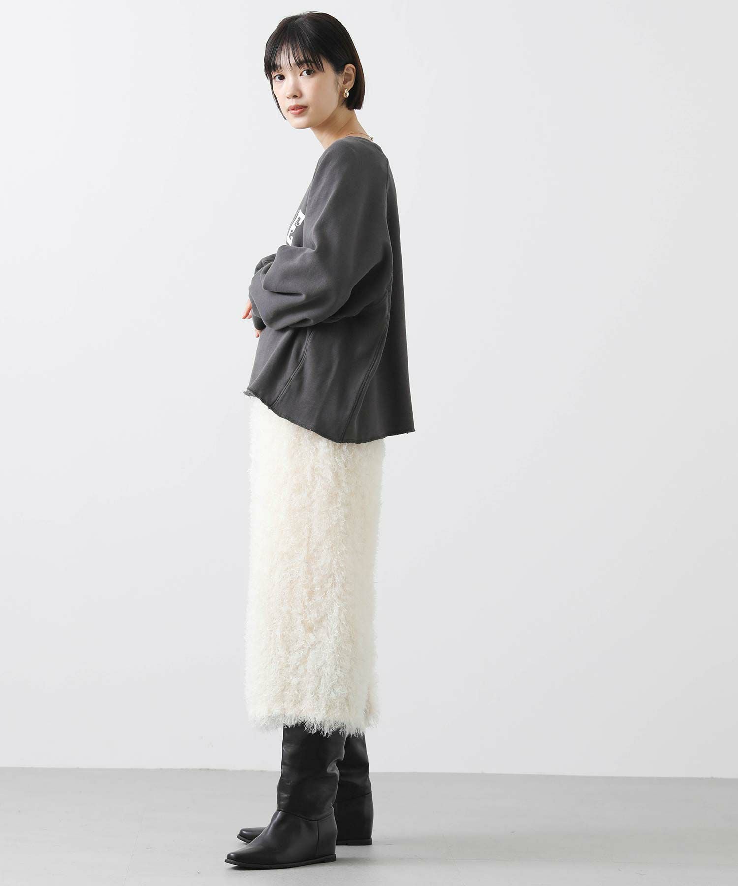 ファー素材が華やかなIラインスカート。カールした毛で表面感のある素材なので、着用するだけで目を惹くアイテムです。