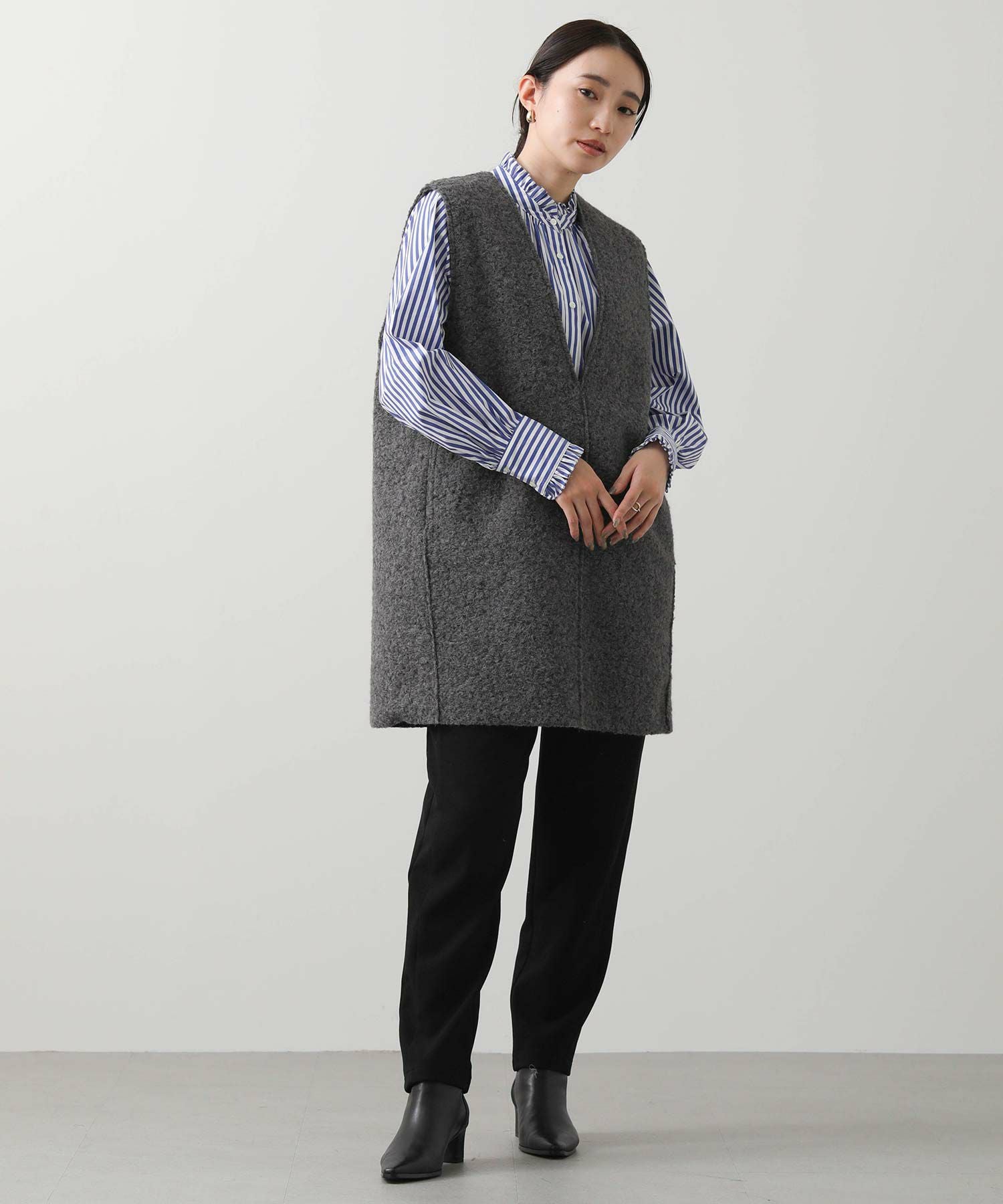 ※着用画像は撮影状況、光の当たり具合で色みが違って見える場合がございます。実際の色みについては、画像一覧の最後に掲載している詳細画像をご参照ください。