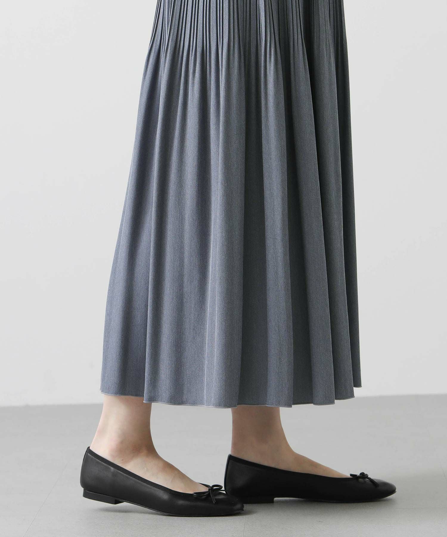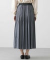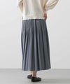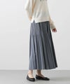 シャンブレーの合繊素材を使用し、インディゴカラーが春らしく、合わせ方次第でキレイからカジュアルまで幅広く活躍してくれます。腰回りに細かいプリーツを当てて、裾に向かって消しのデザインです。広がりすぎずにすっきりしたバランスで着用いただけます。