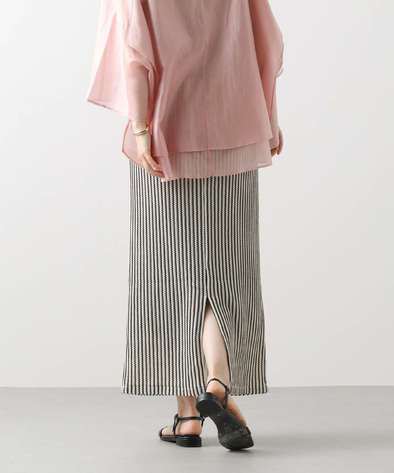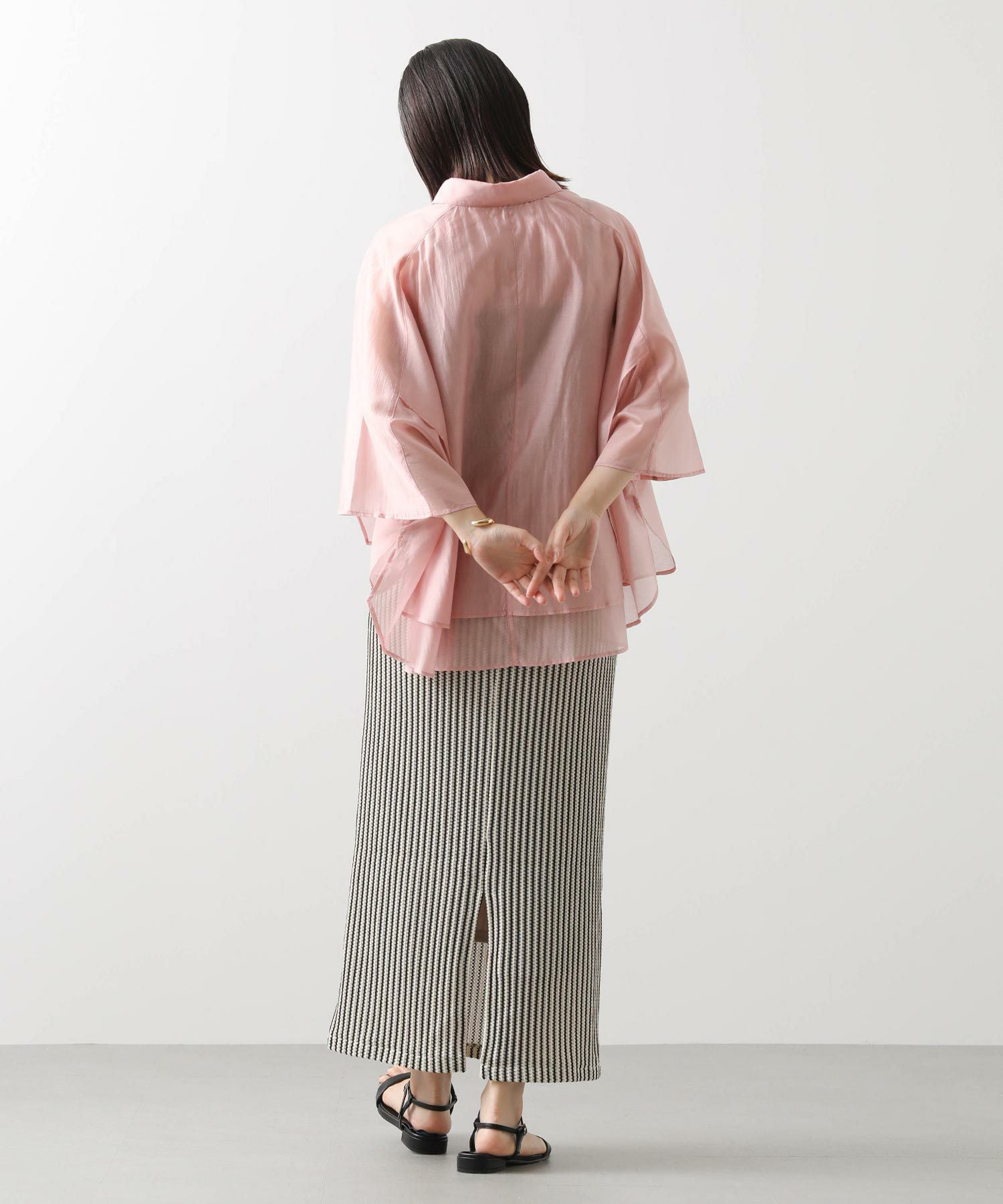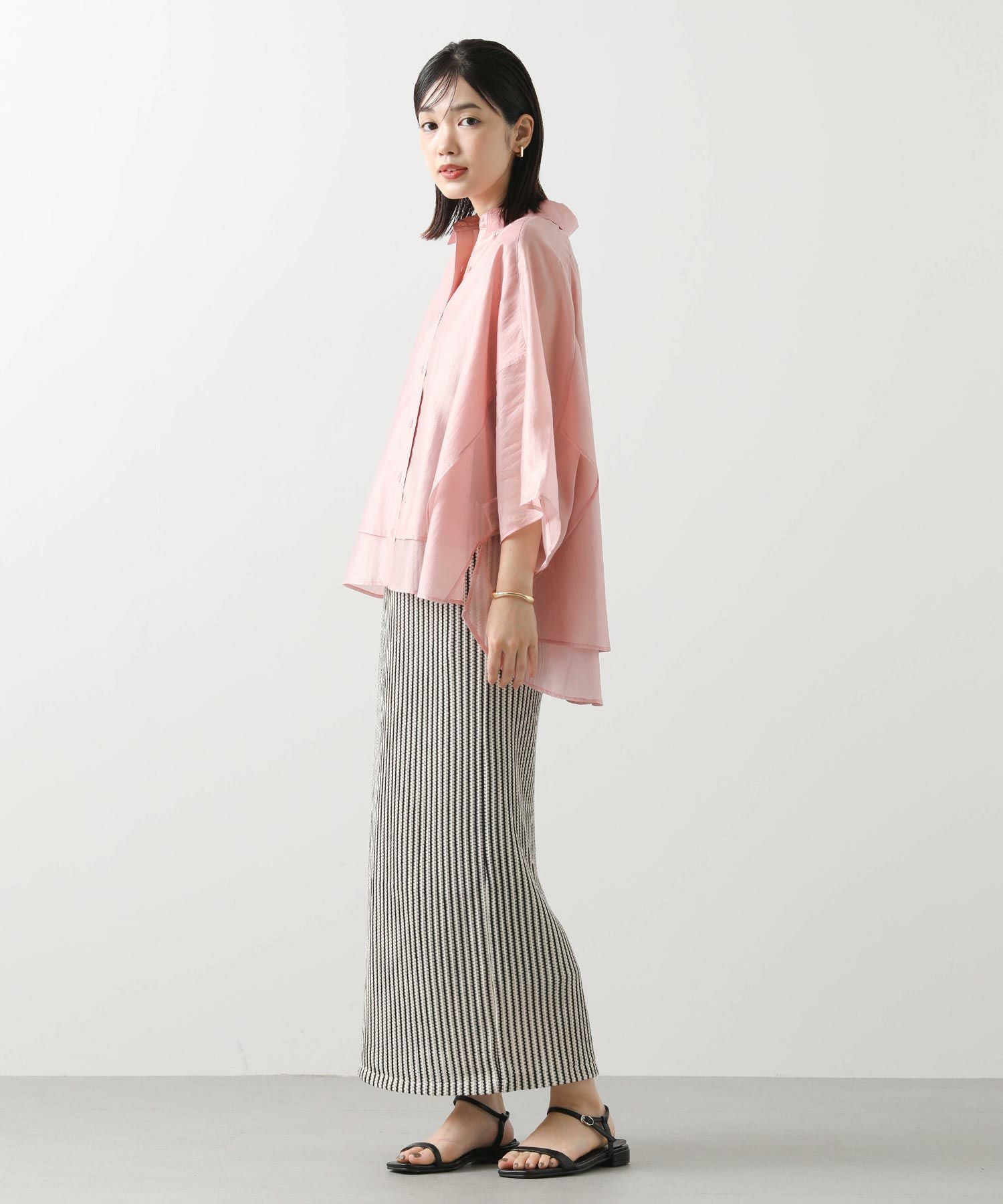 程よい透け感で涼し気なルックスが夏らしく、落ち感のある生地が女性らしいシルエット。