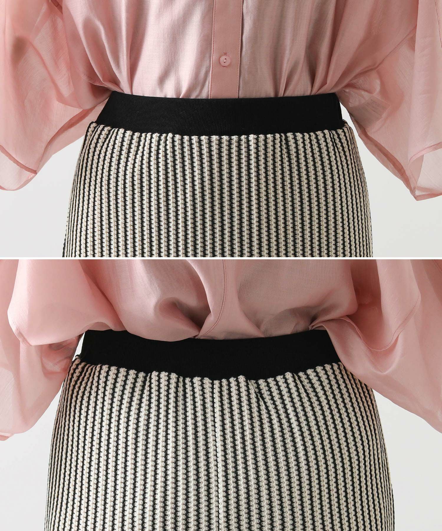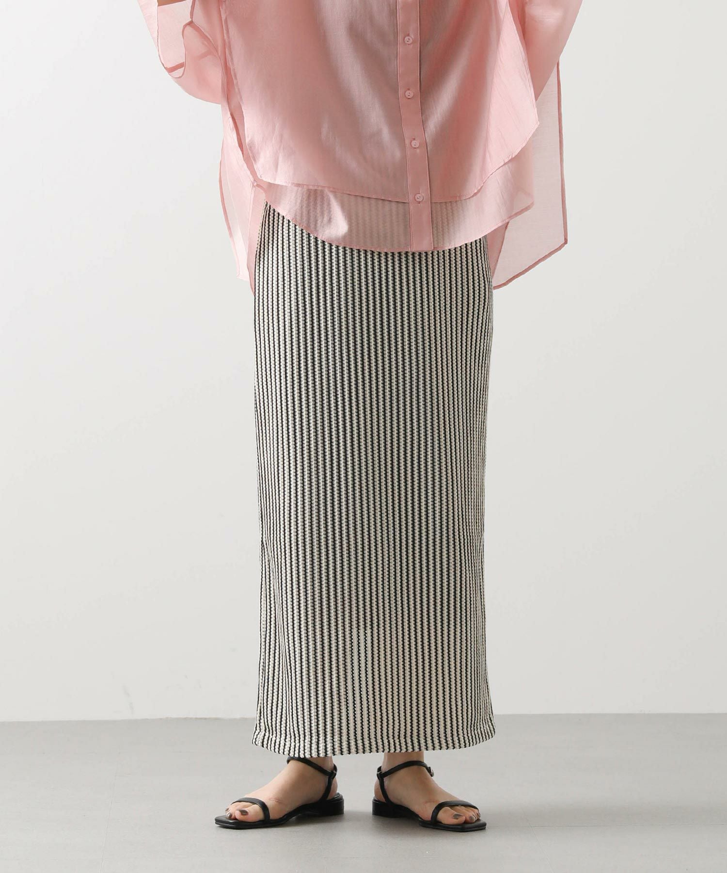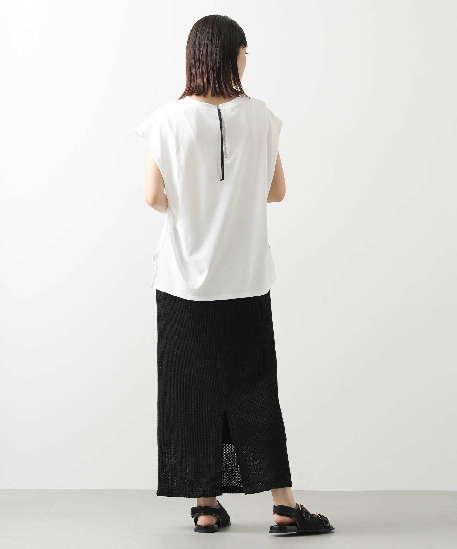 程よい透け感で涼し気なルックスが夏らしく、落ち感のある生地が女性らしいシルエット。
